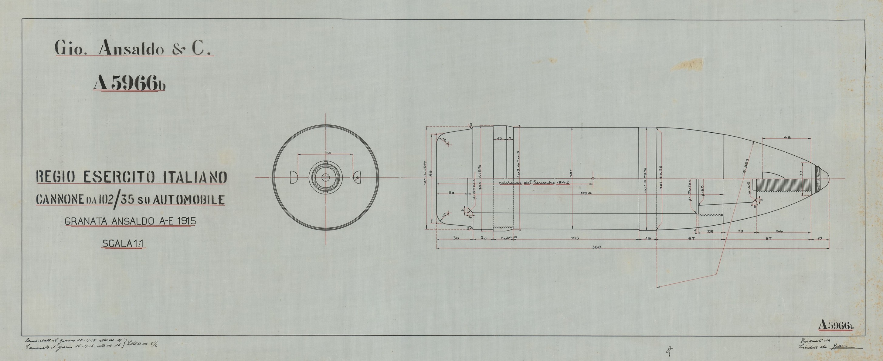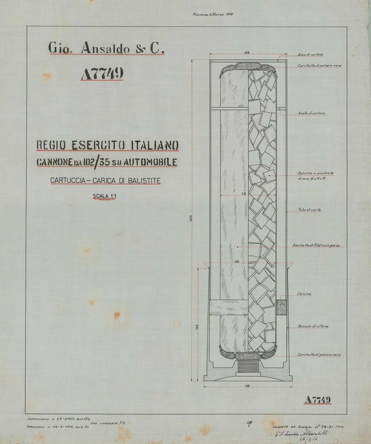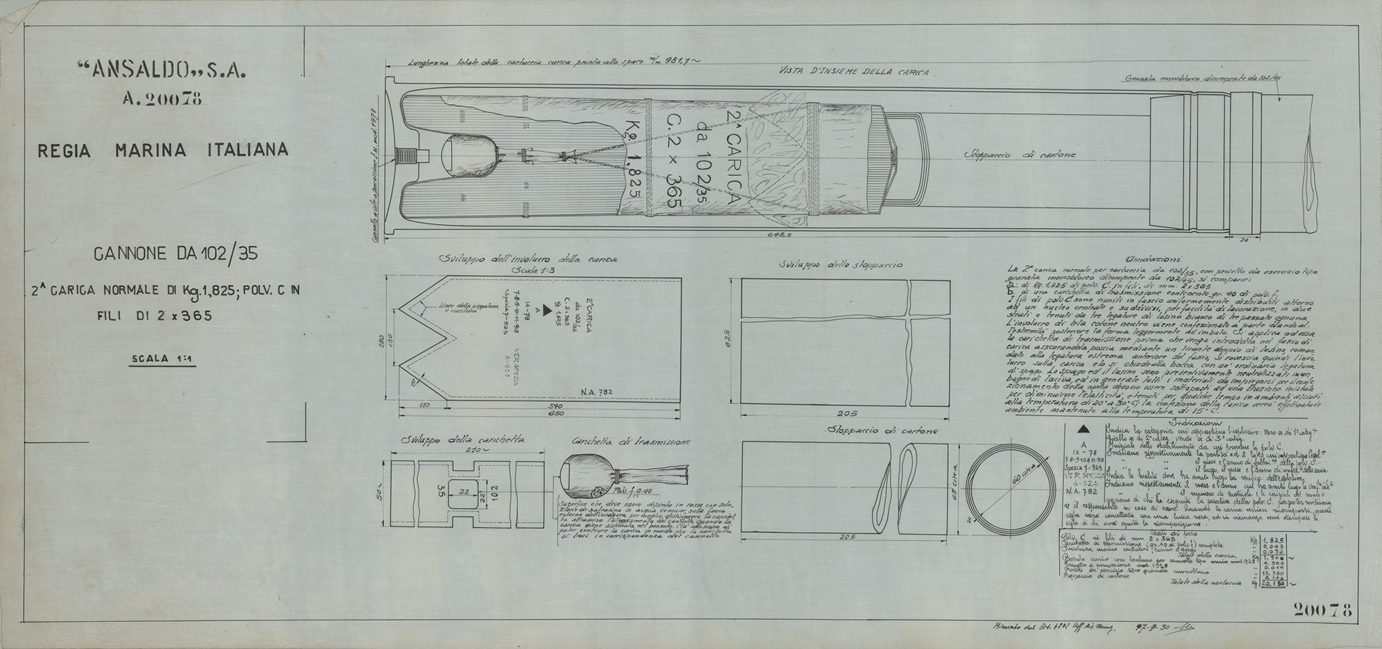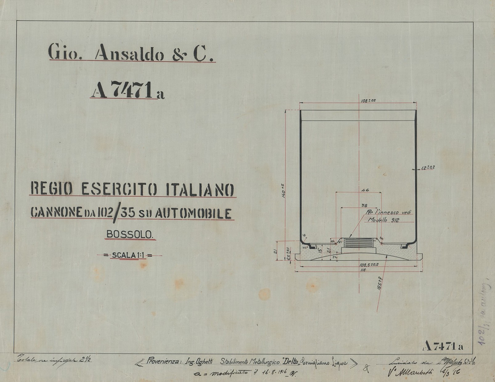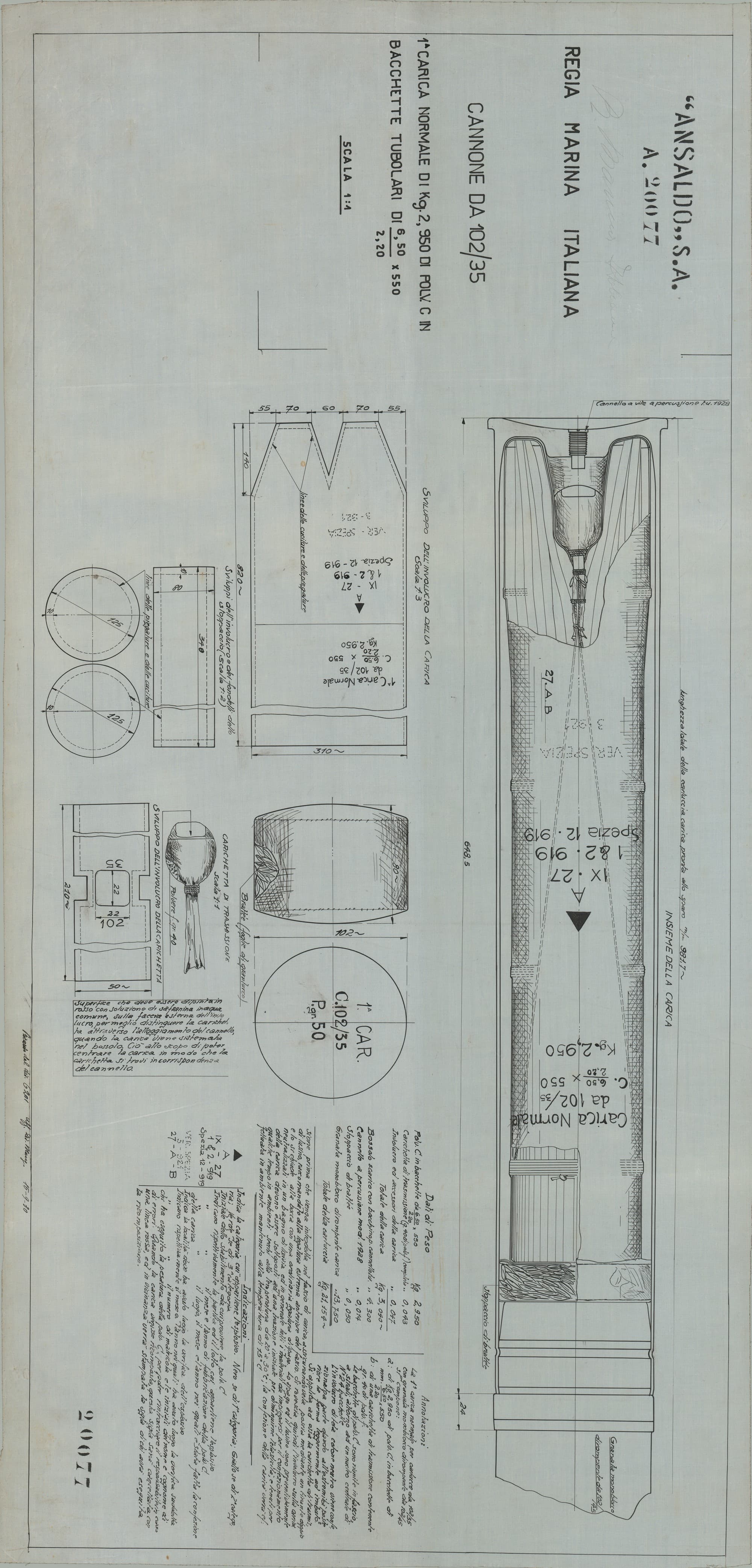 Cannone da 102/35 S.A.V. 1915 - sezioni diverse