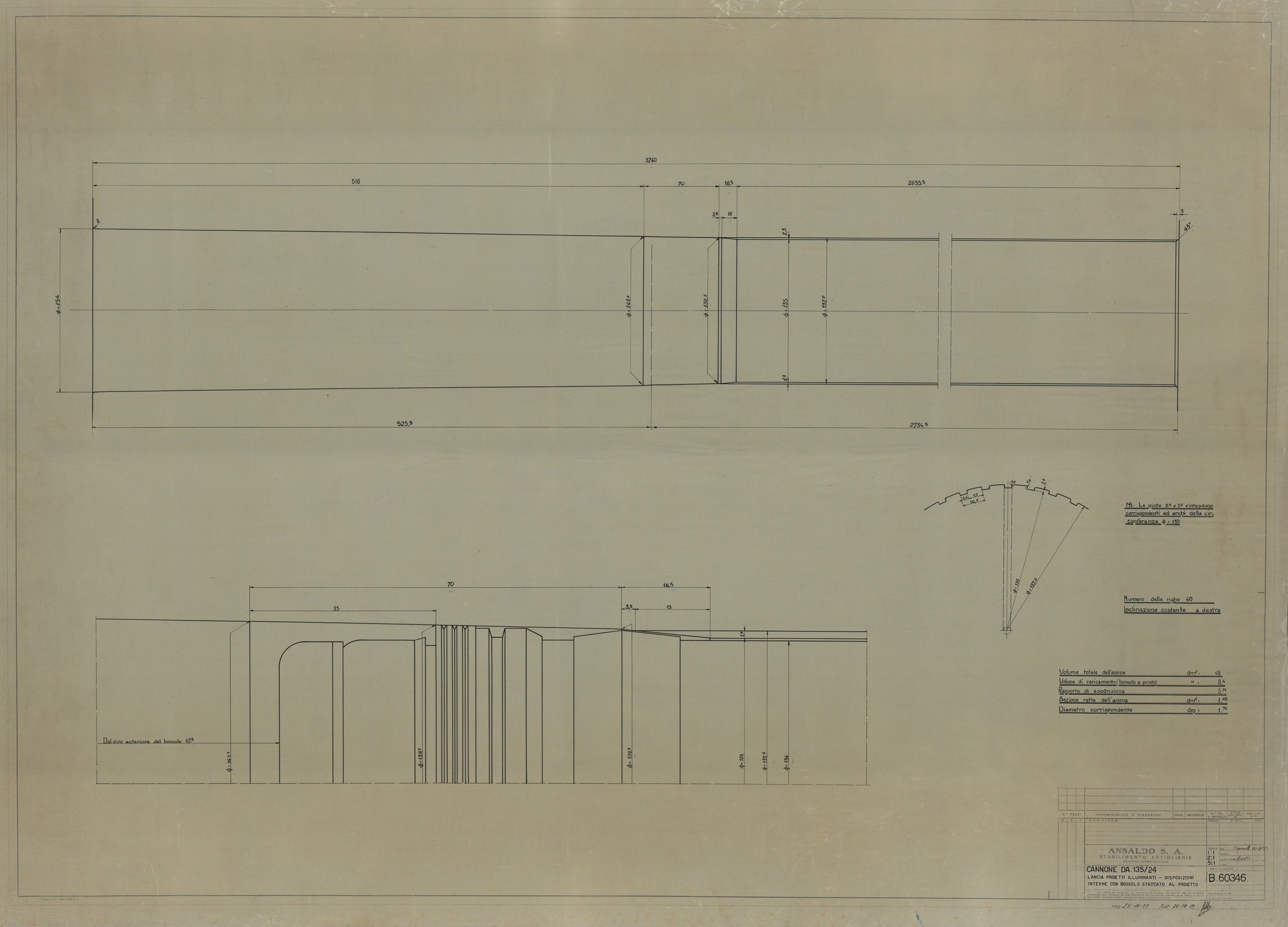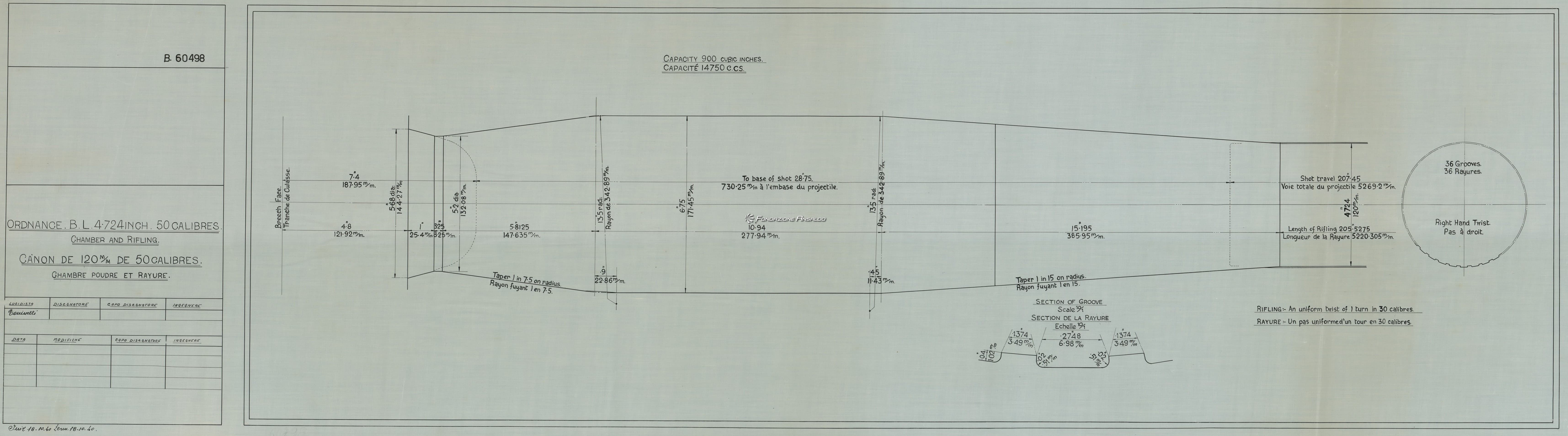 Cannone da 120/50 - camera e rigatura