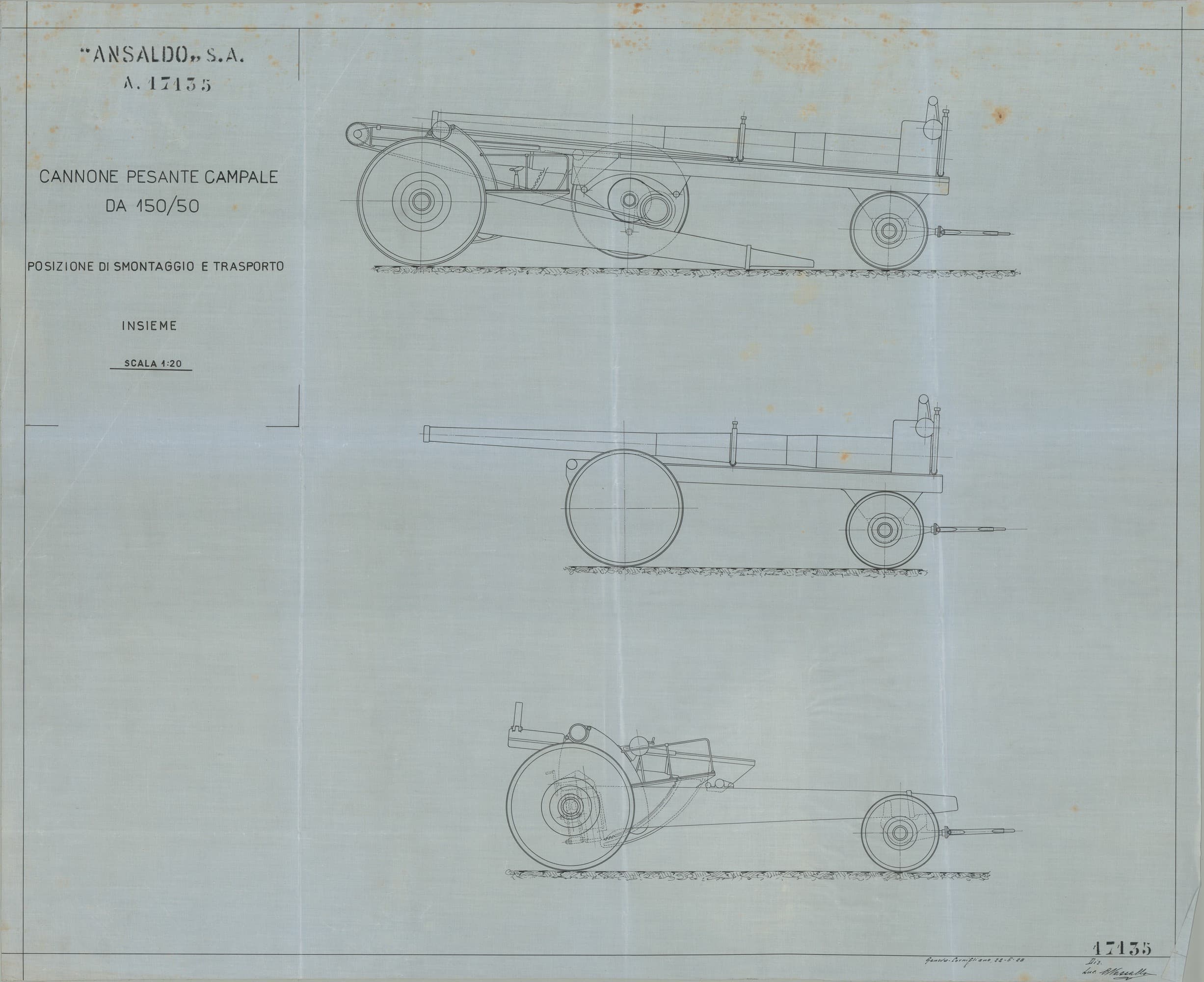 Cannone da 150/50 - posizione di smontaggio e trasporto