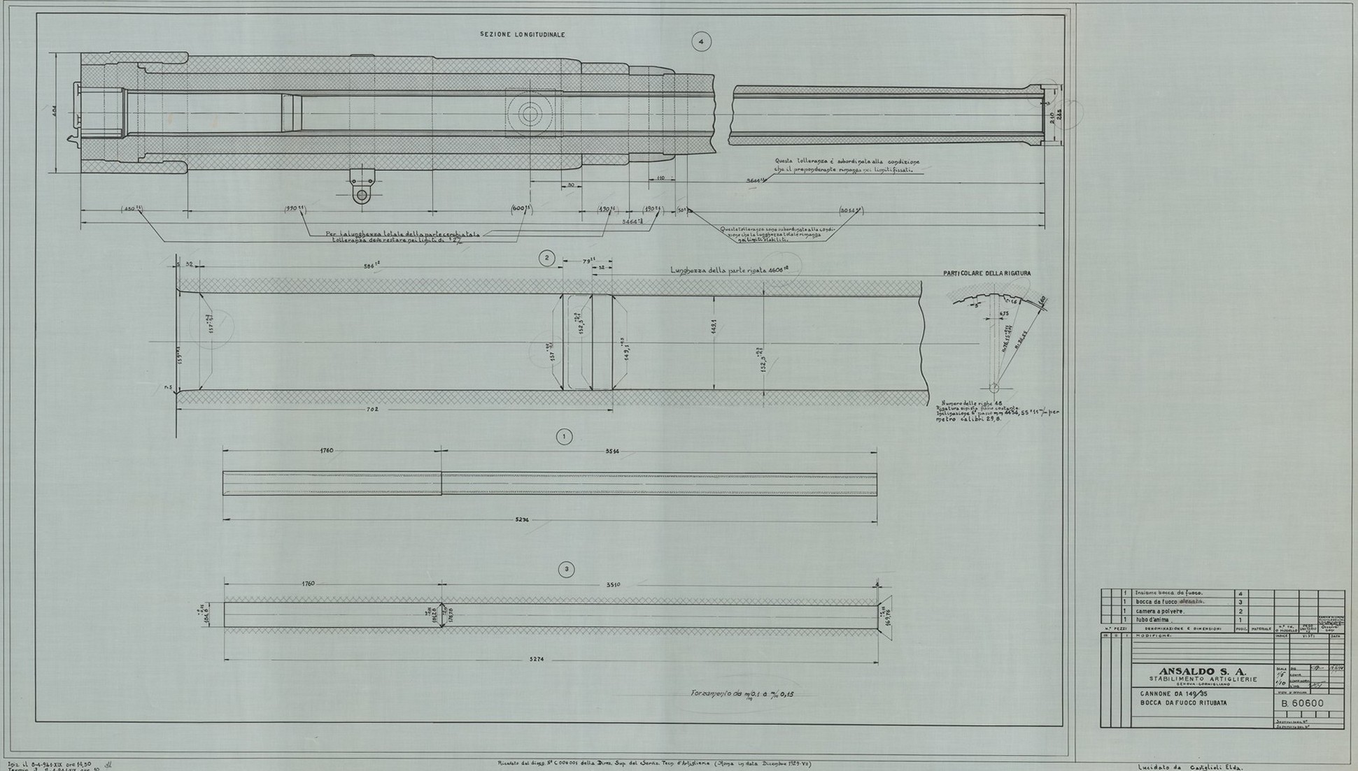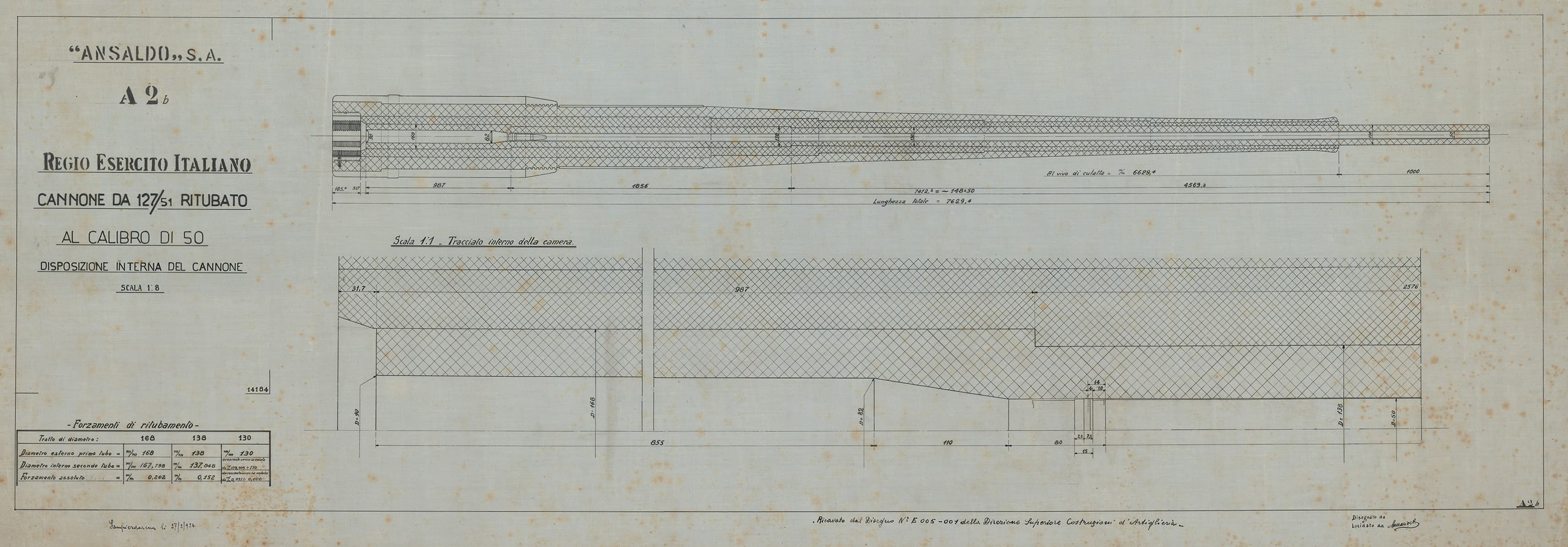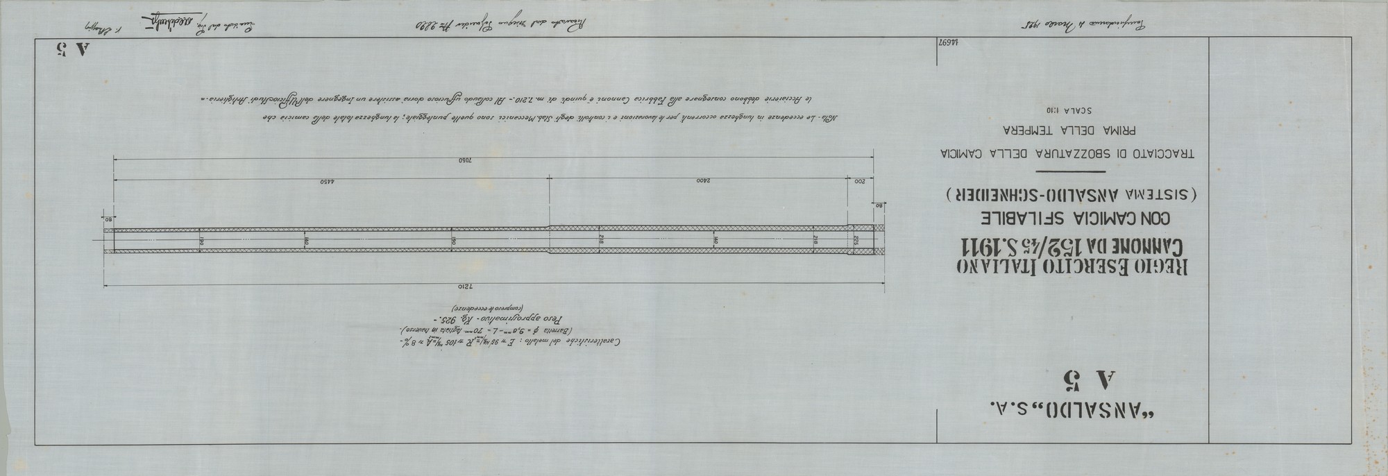 Cannone da 152/45 S. 1911 - tracciato di sbozzatura della camicia