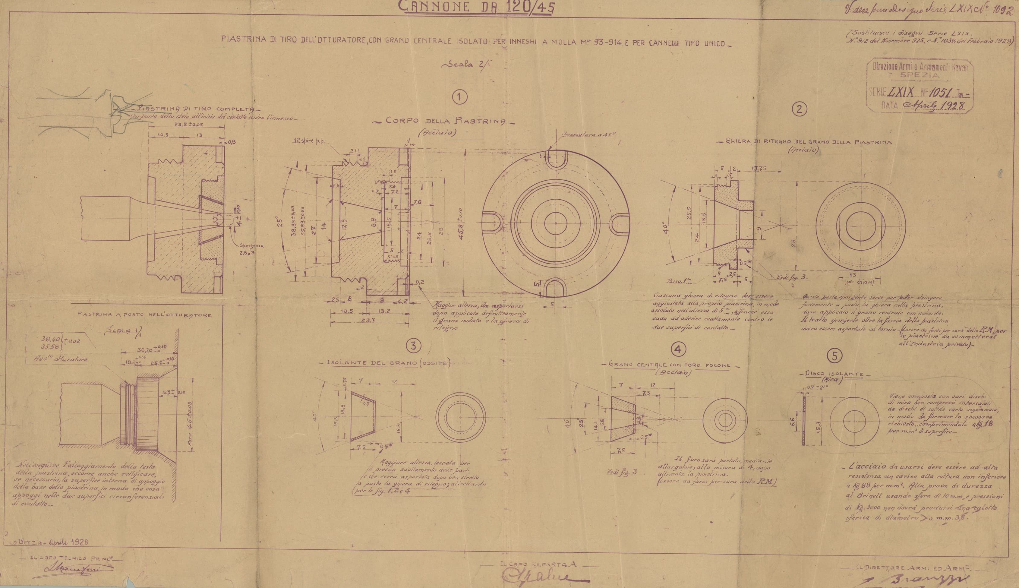 Cannone da 120/45 - piastrina di tiro dell'otturatore per inneschi a molla e per cannelli tipo unico