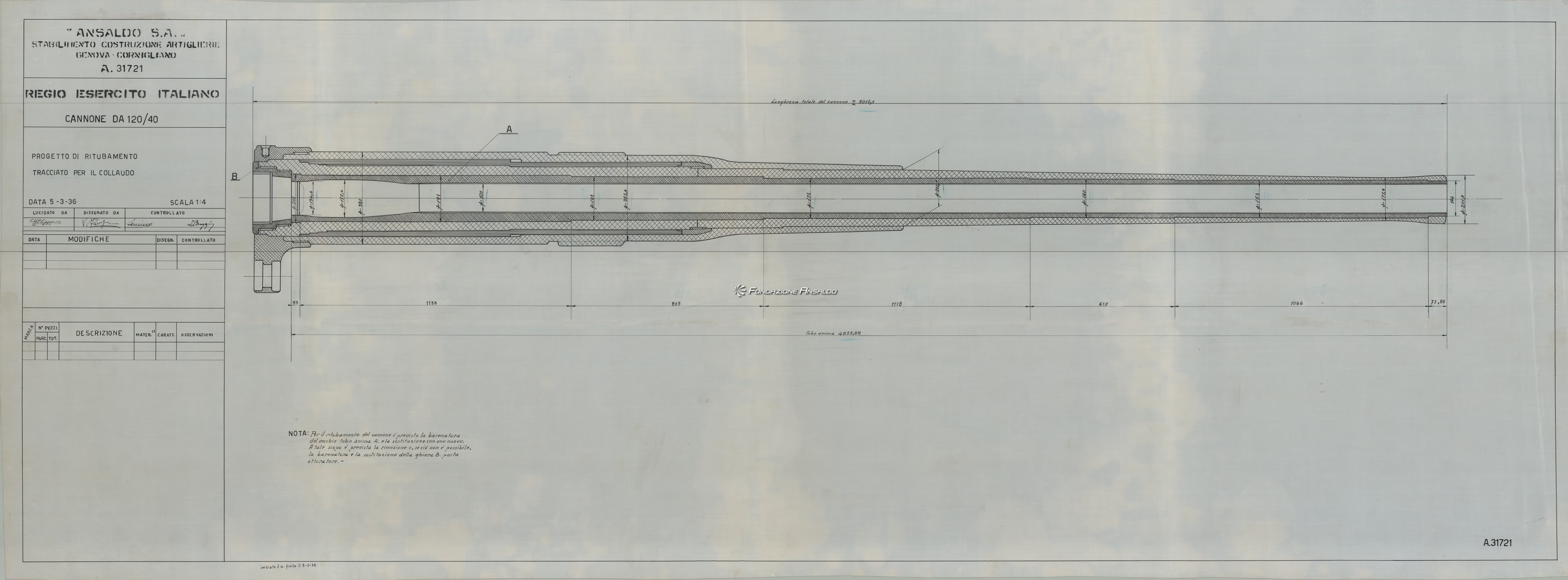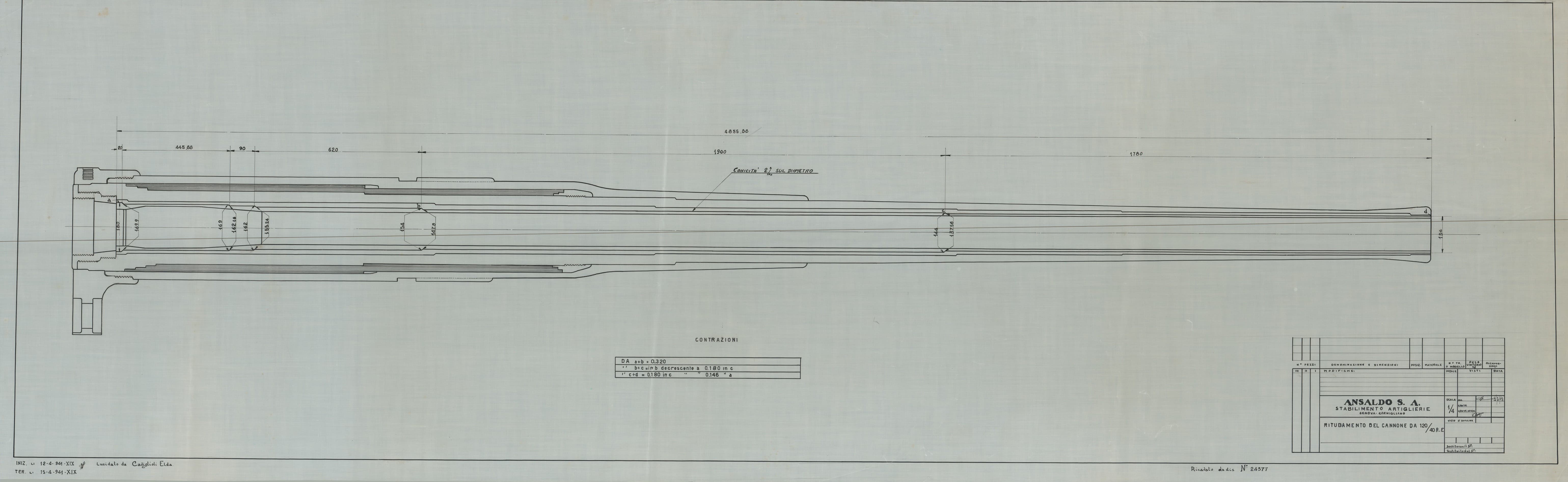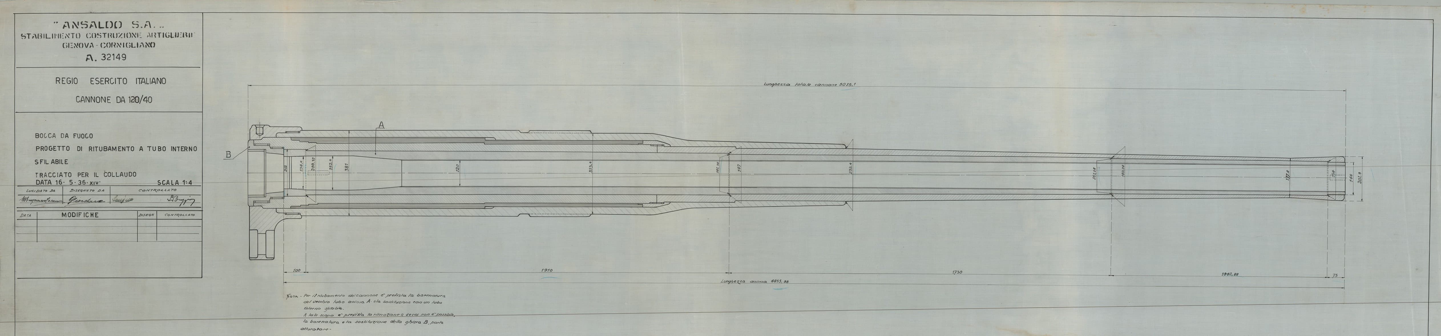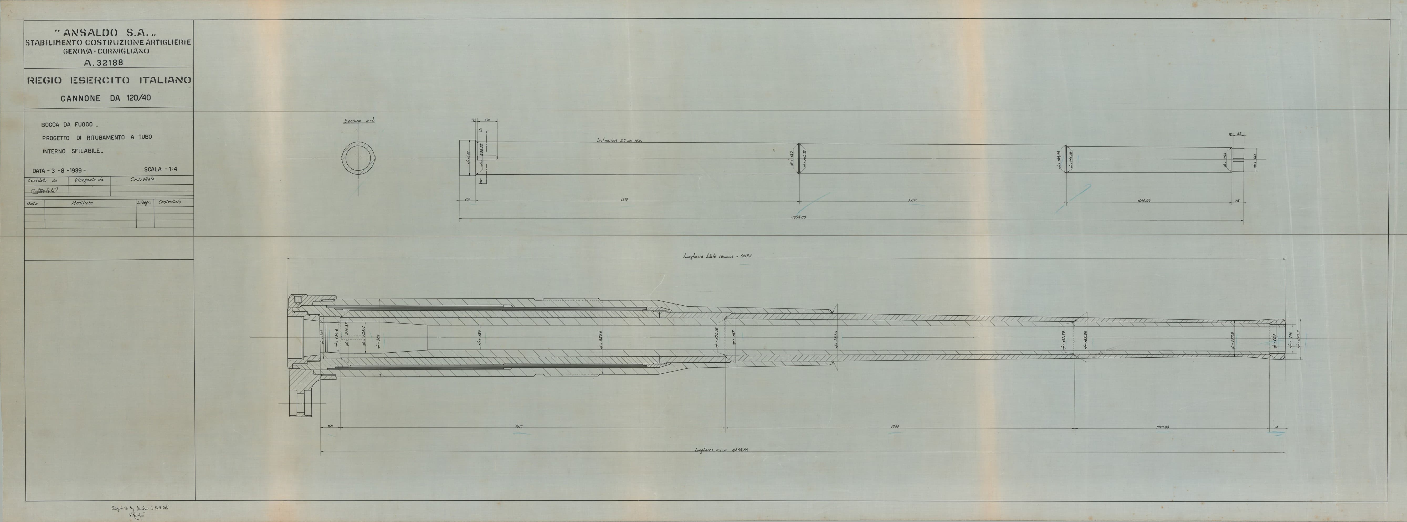 Cannone da 120/40 progetto di ritubamento - bocca da fuoco