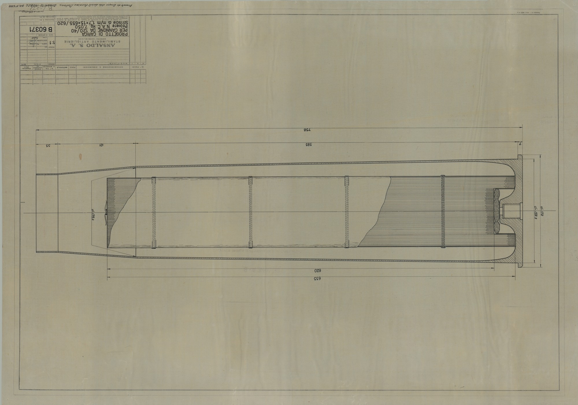 Cannone da 120/40 - progetto di carica