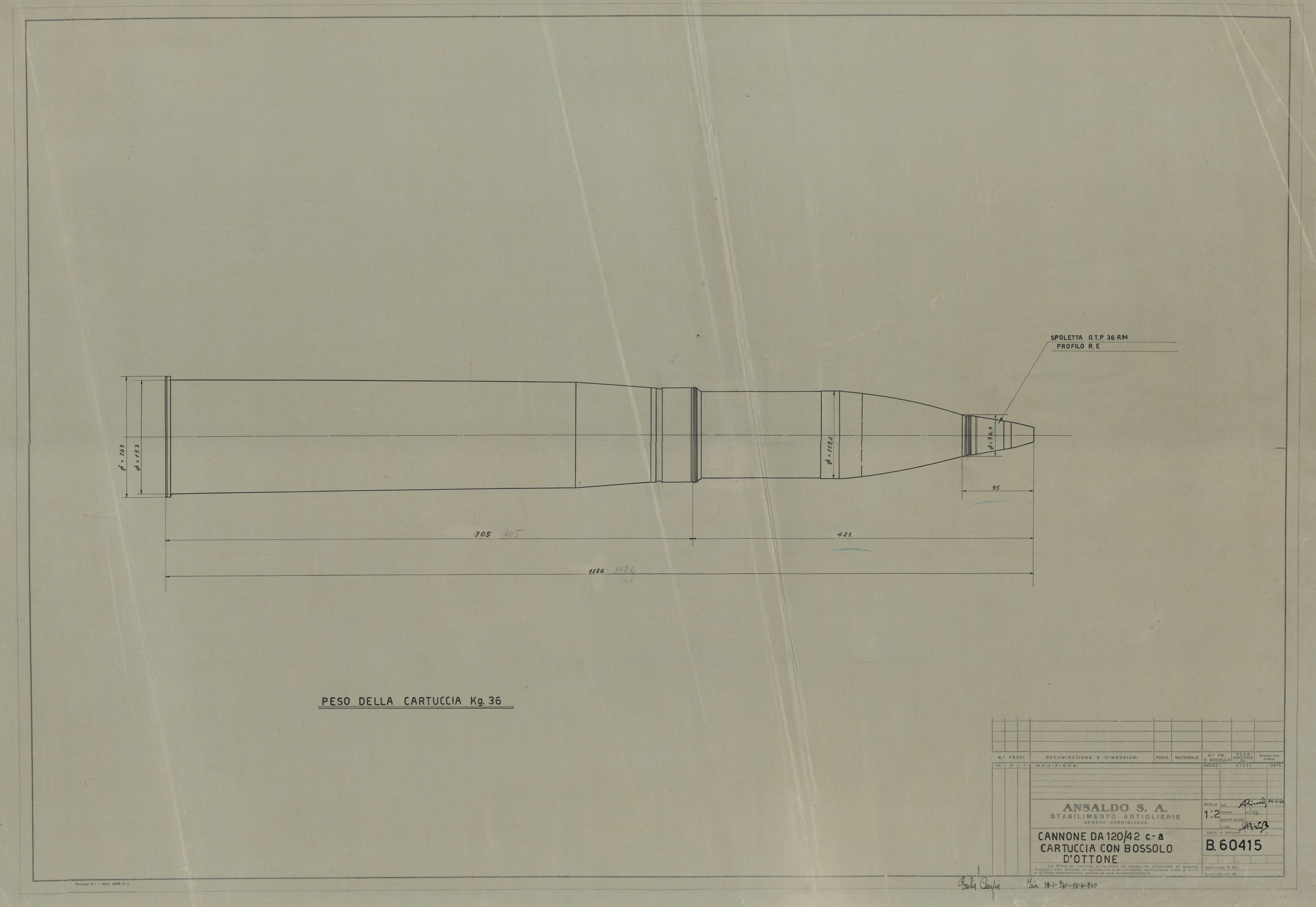 Cannone da 120/42 - cartuccia con bossolo