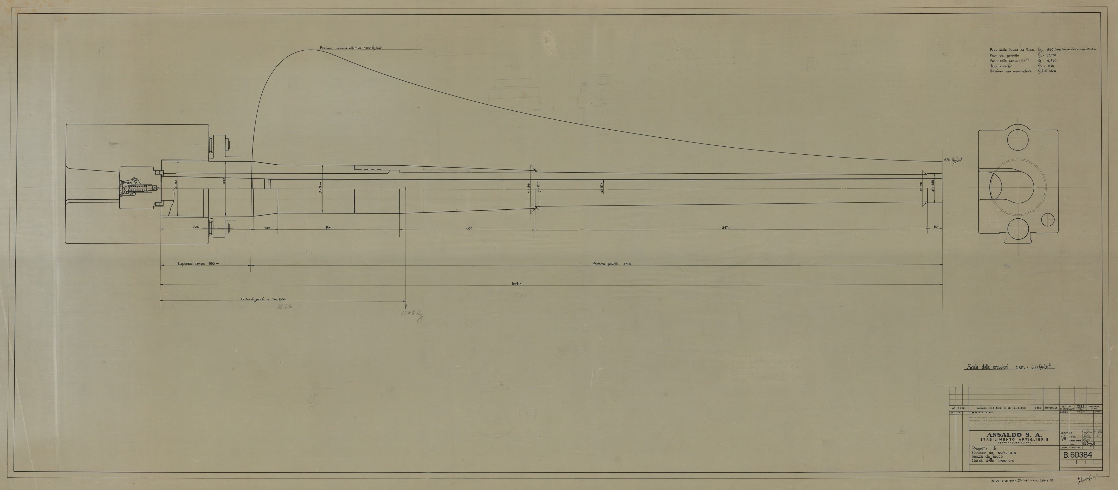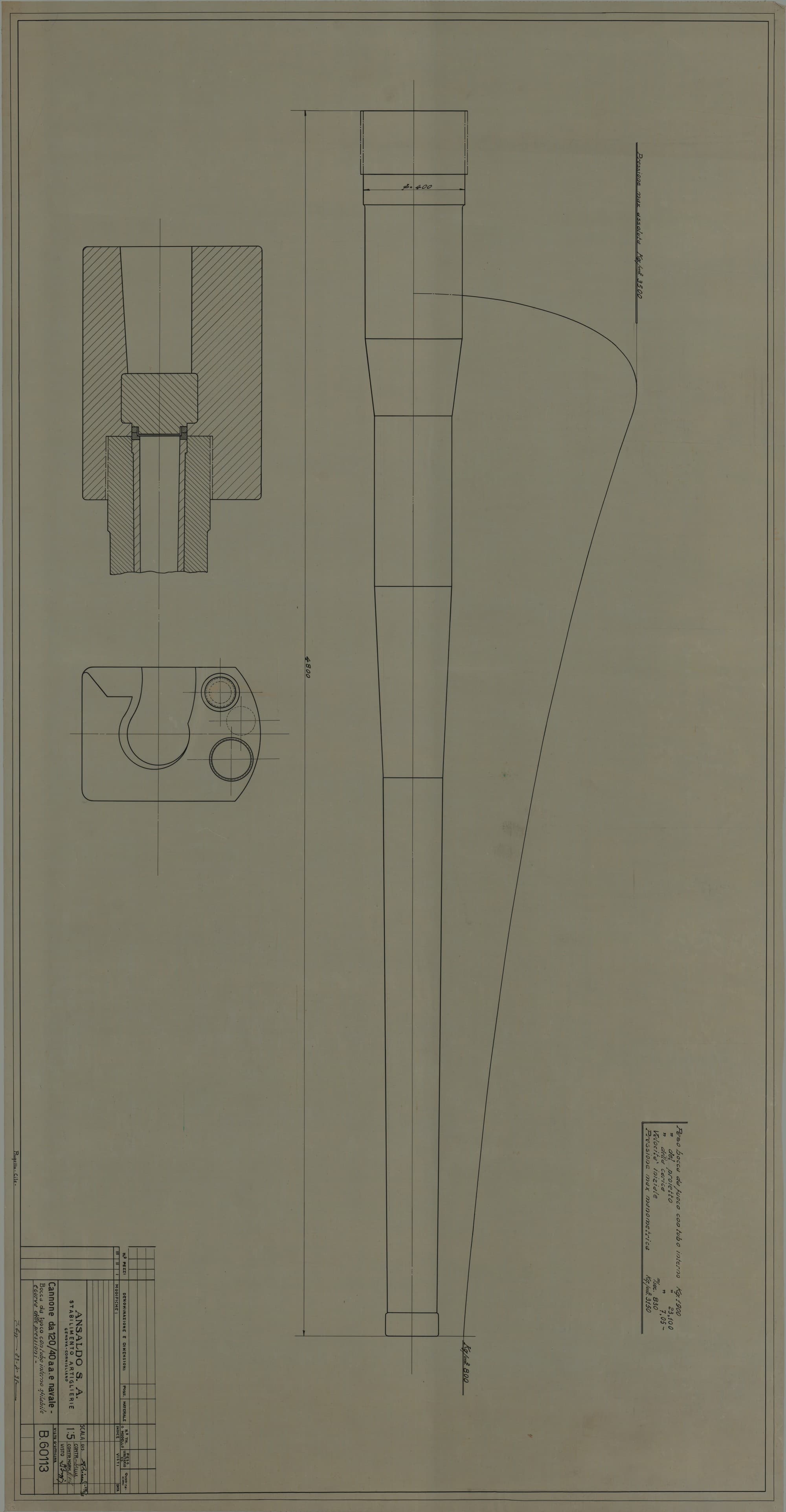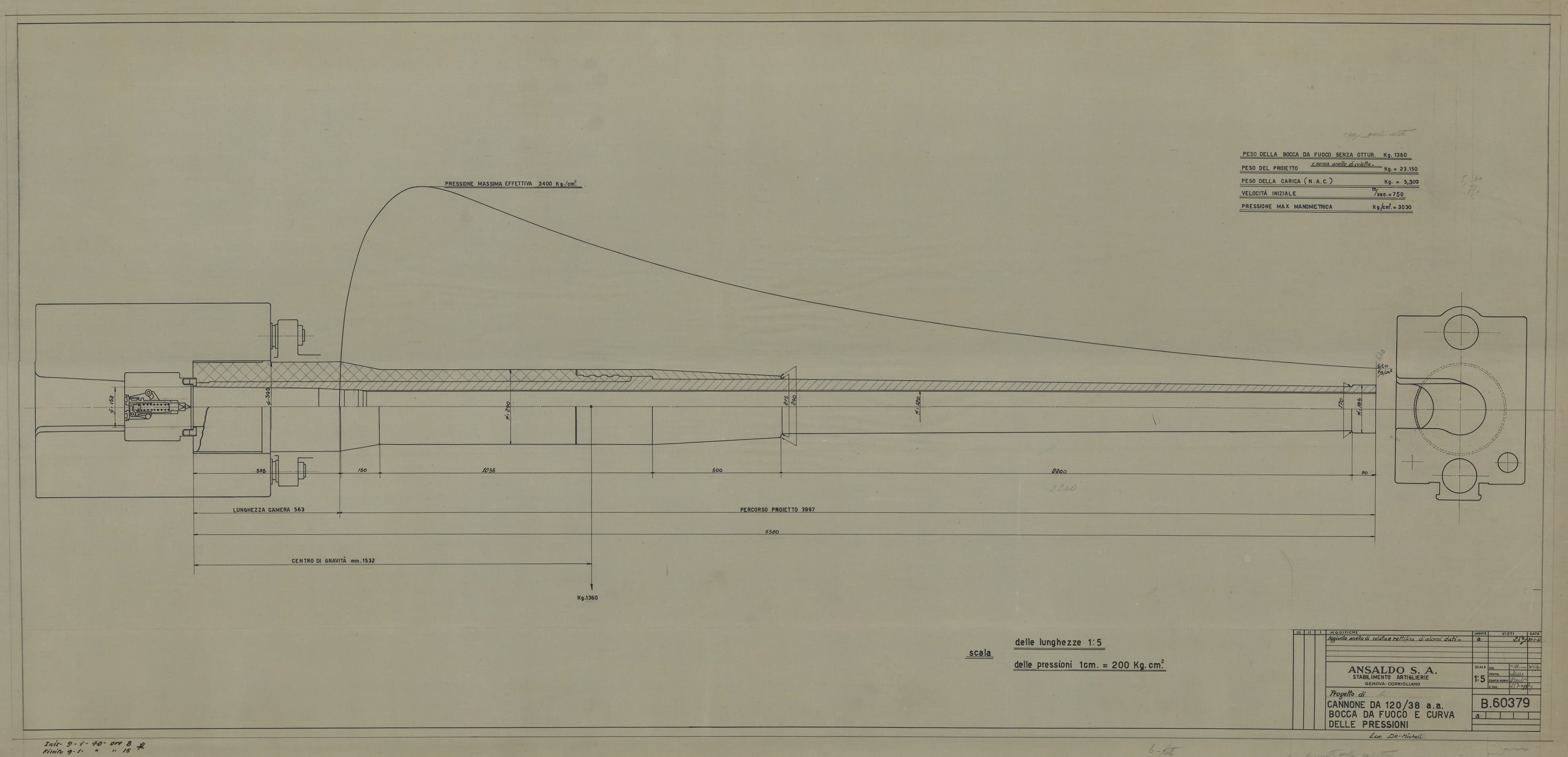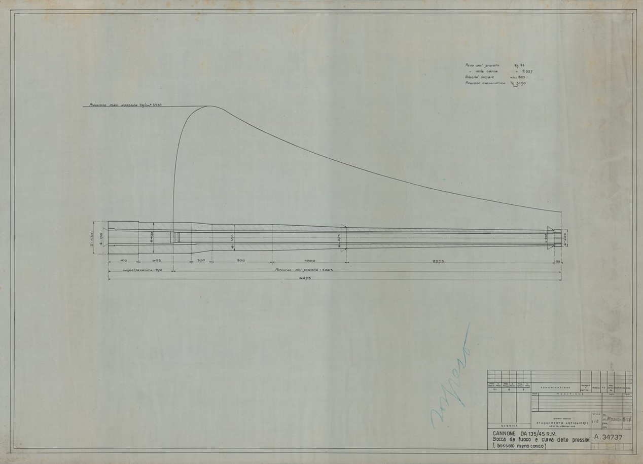 Cannone da 120/40 antiaereo e navale - bocca da fuoco e curva delle pressioni