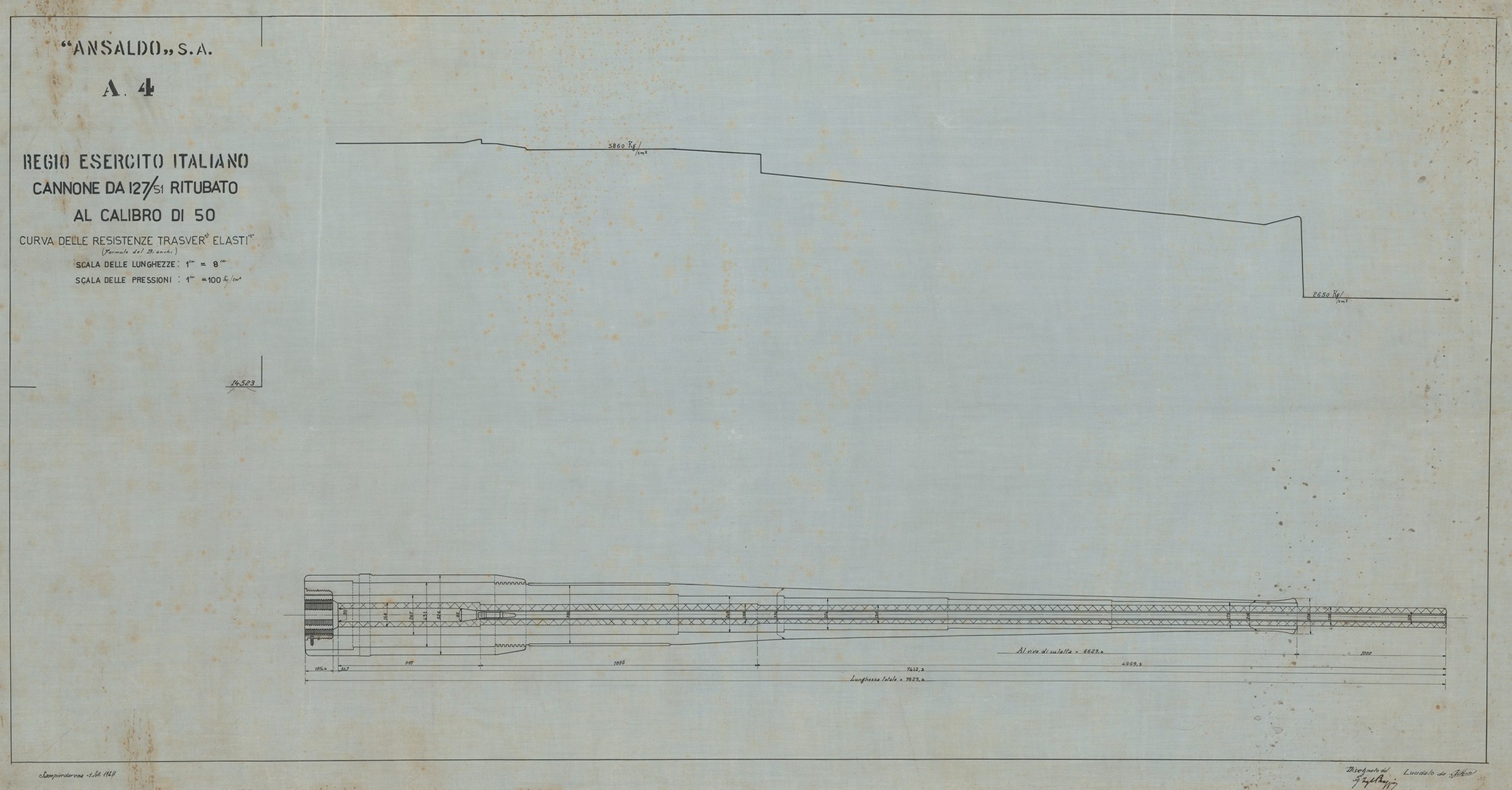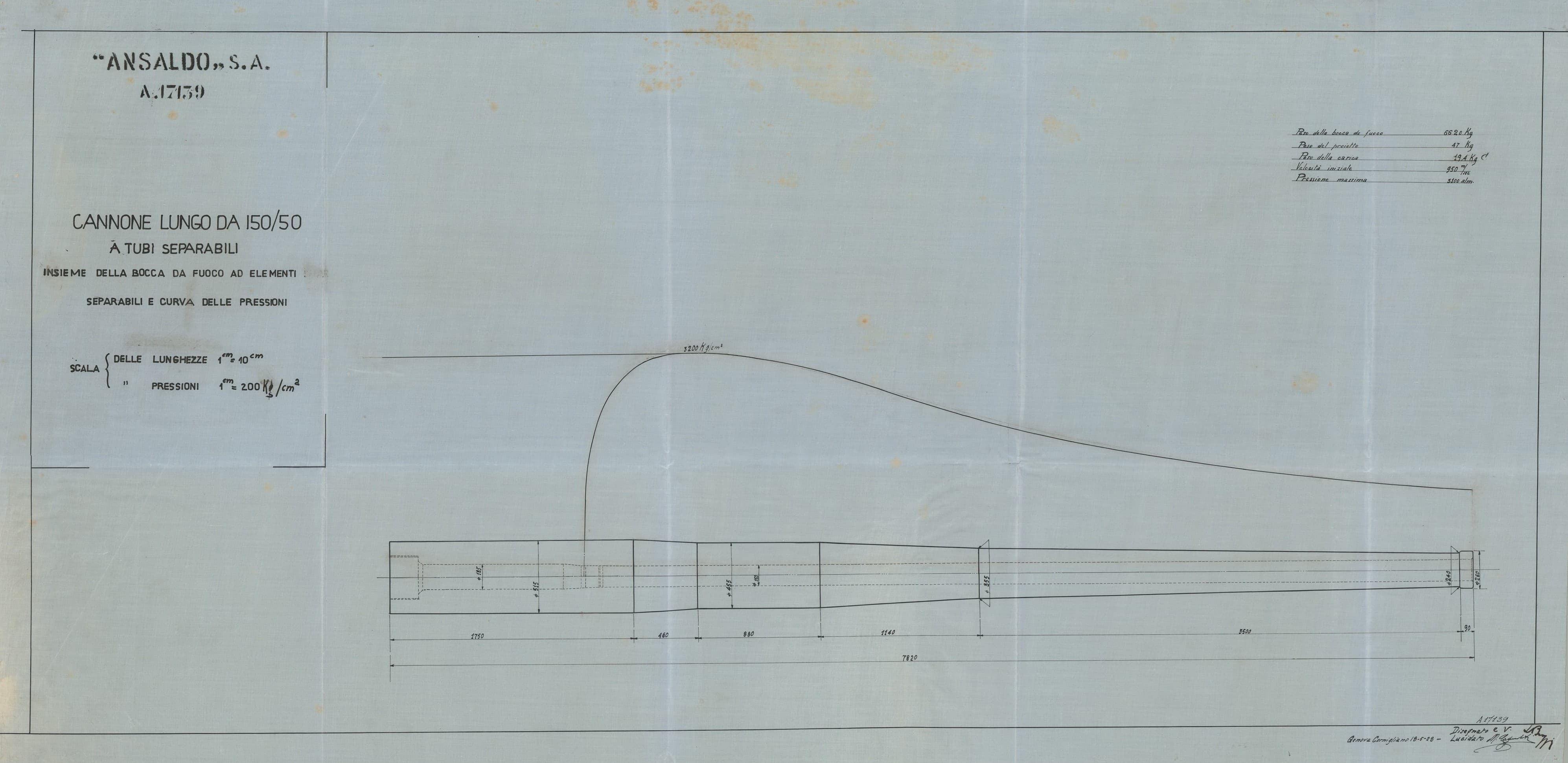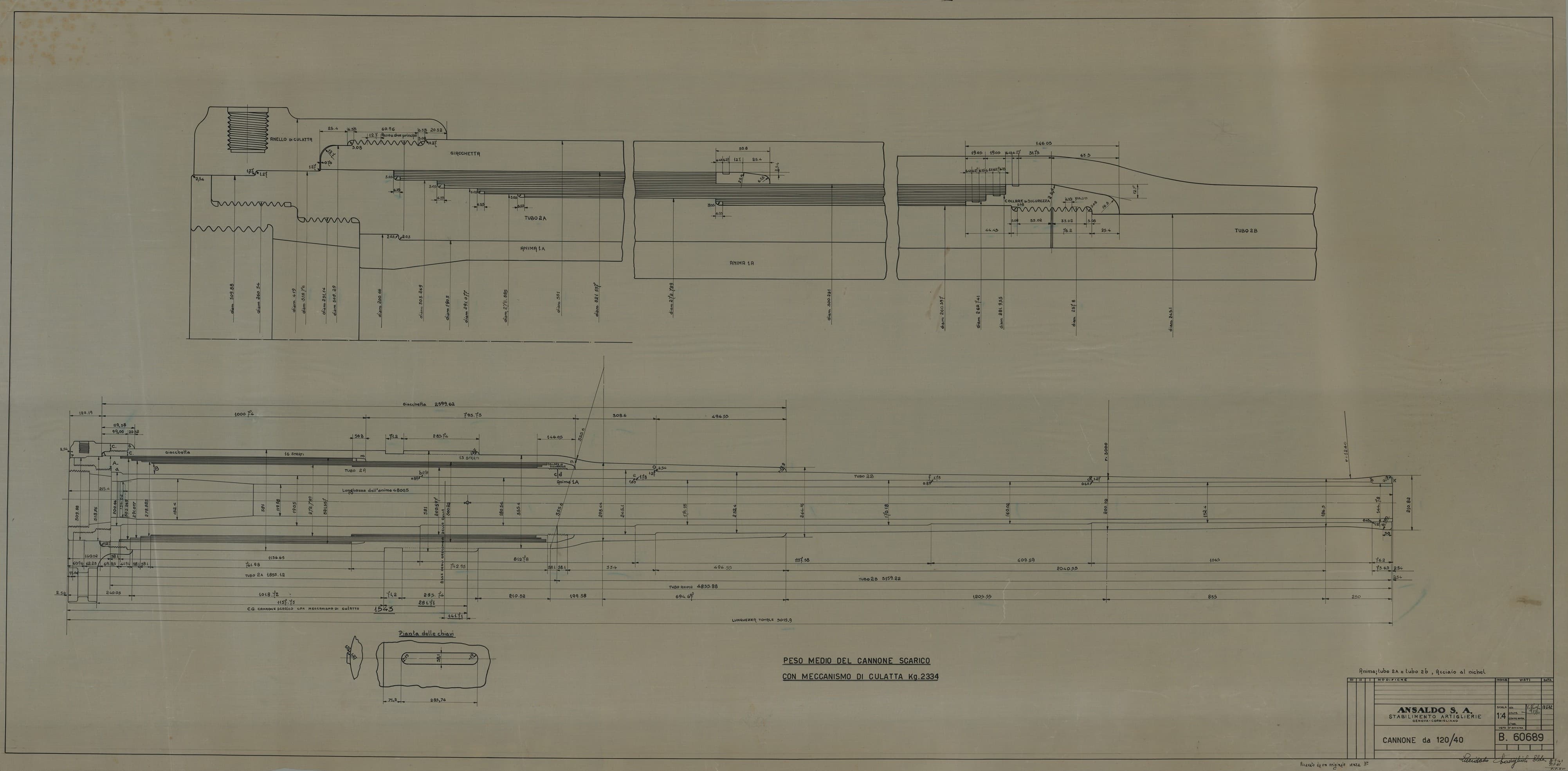 Cannone da 120/40 antiaereo e navale - bocca da fuoco e curva delle pressioni