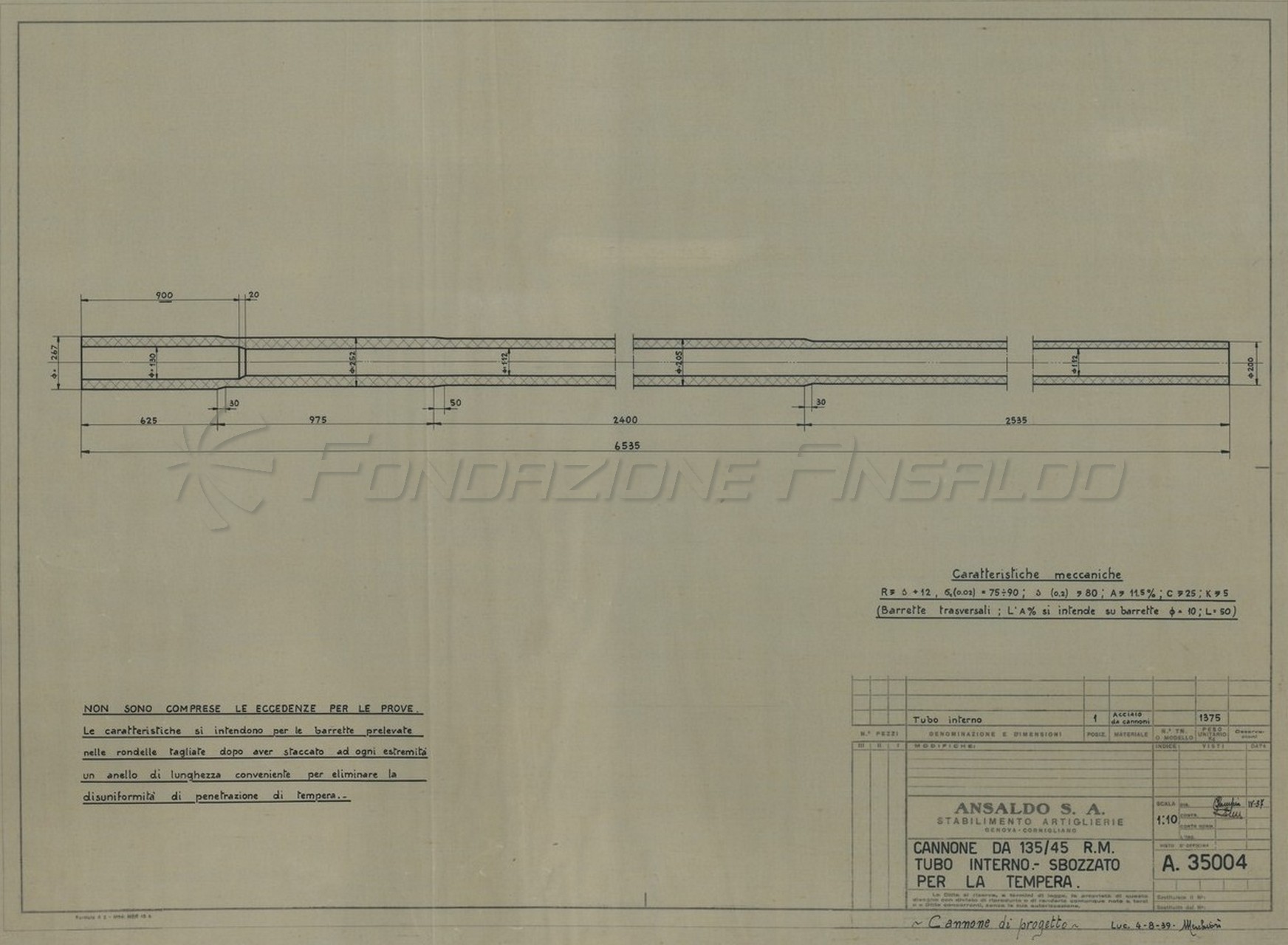 Cannone da 135/45 - tubo esterno sbozzato per la tempera