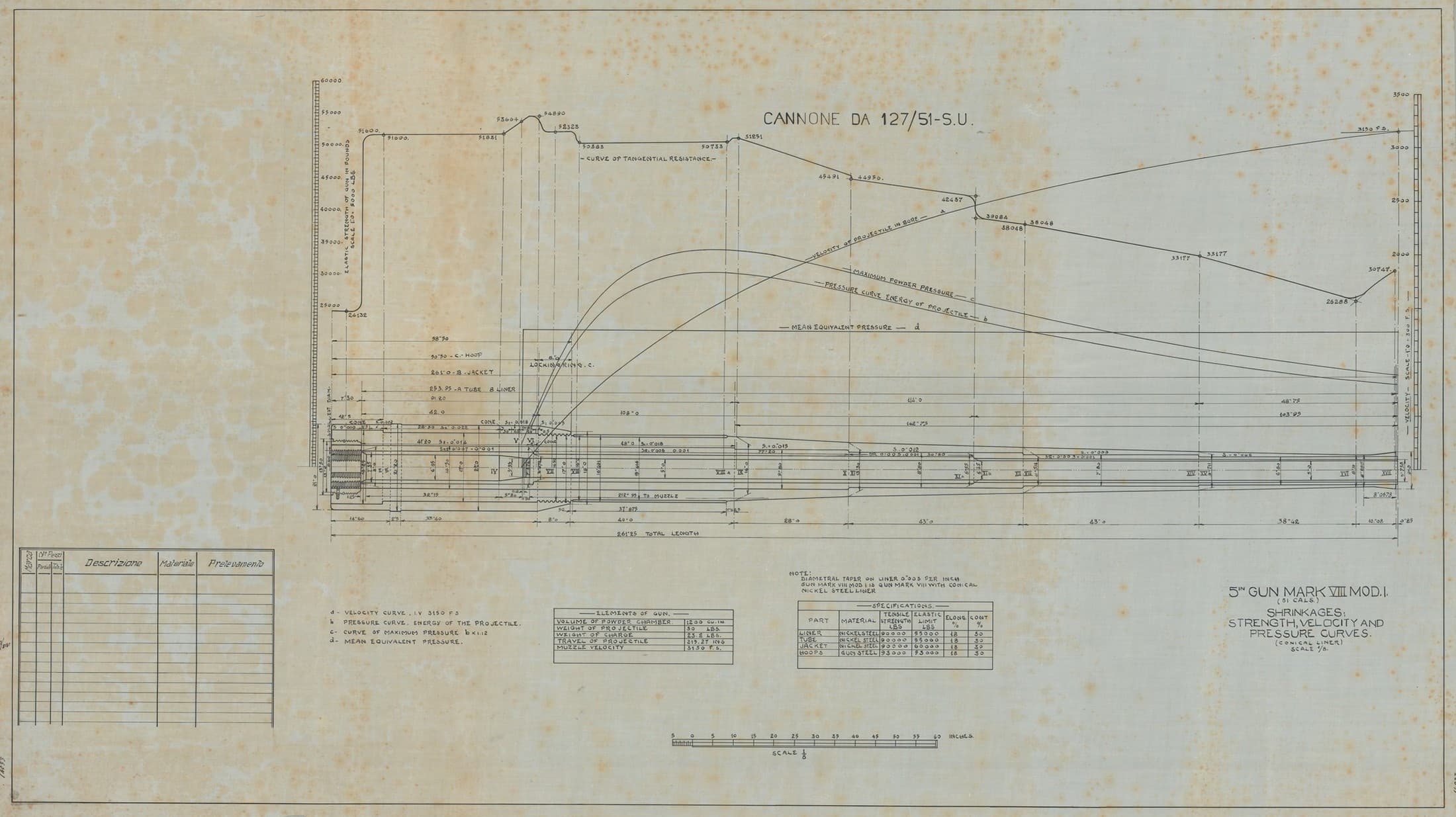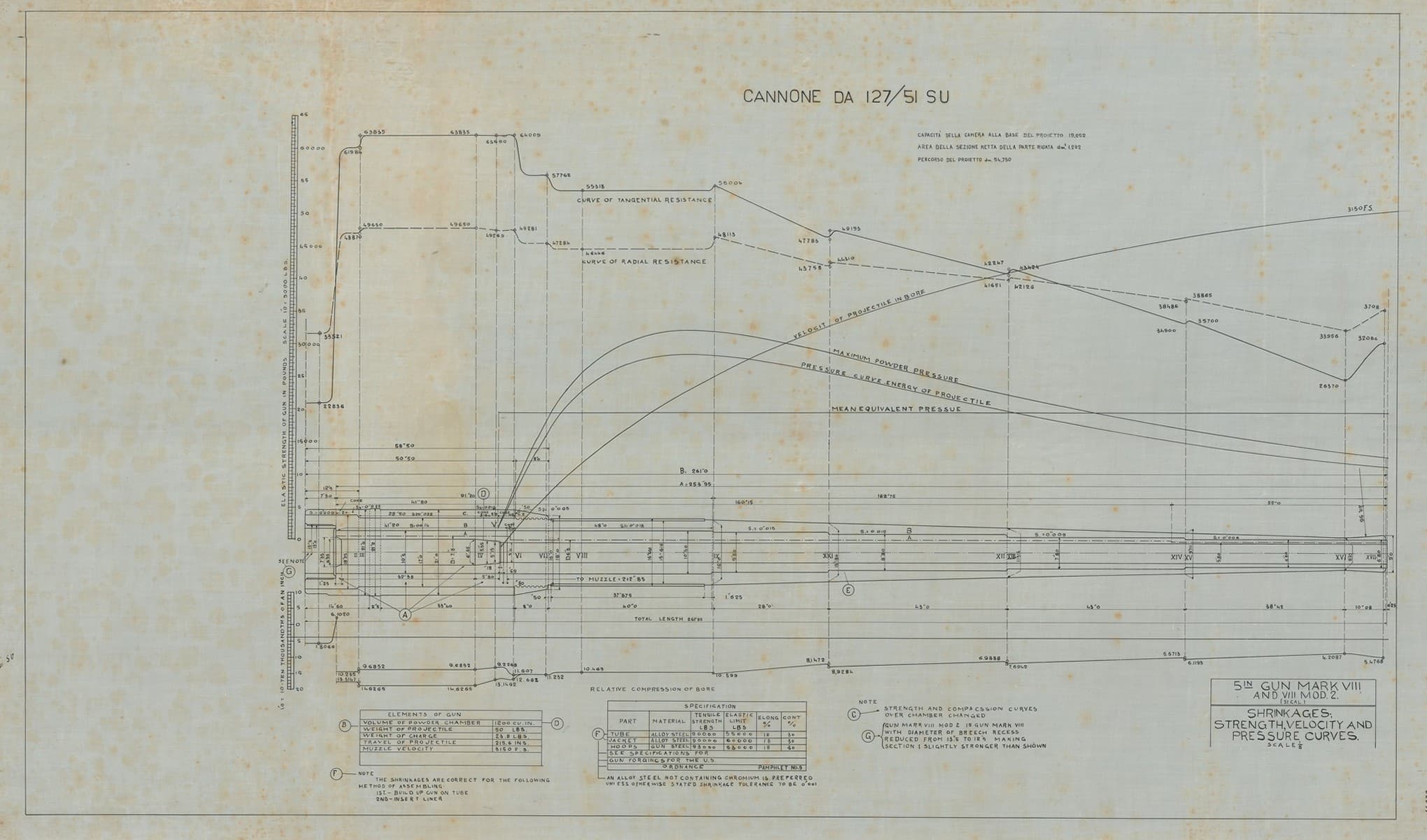 Cannone da 127/51 - curva delle resistenze