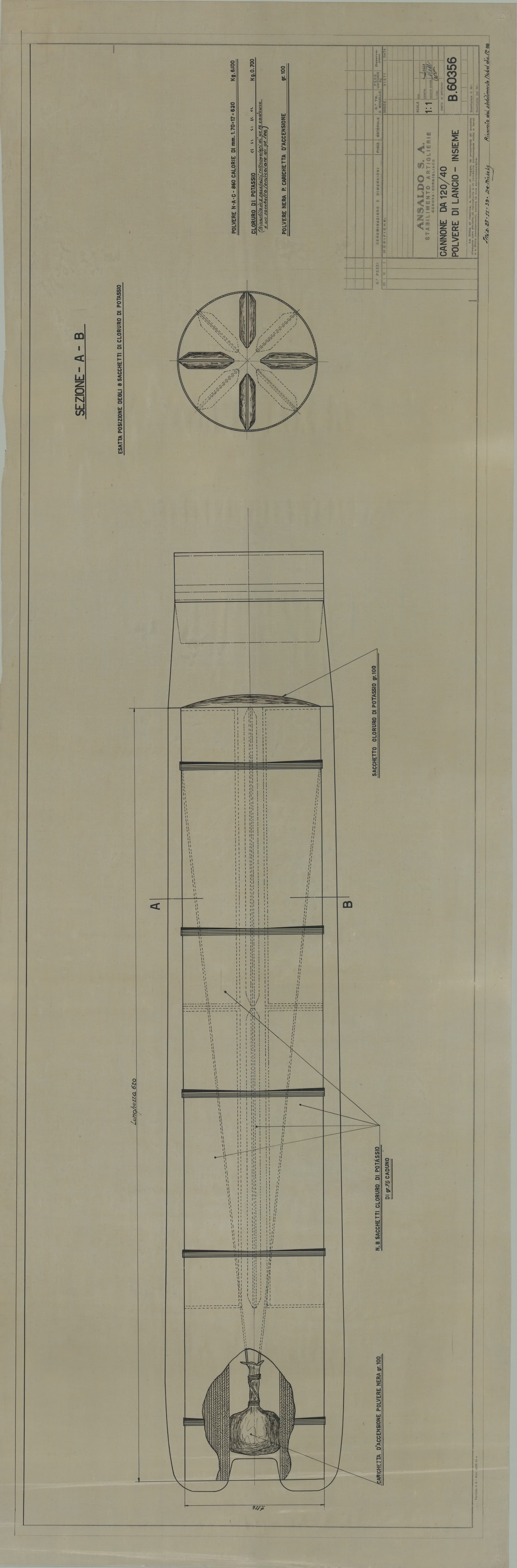 Cannone da 120/40 - polvere di lancio