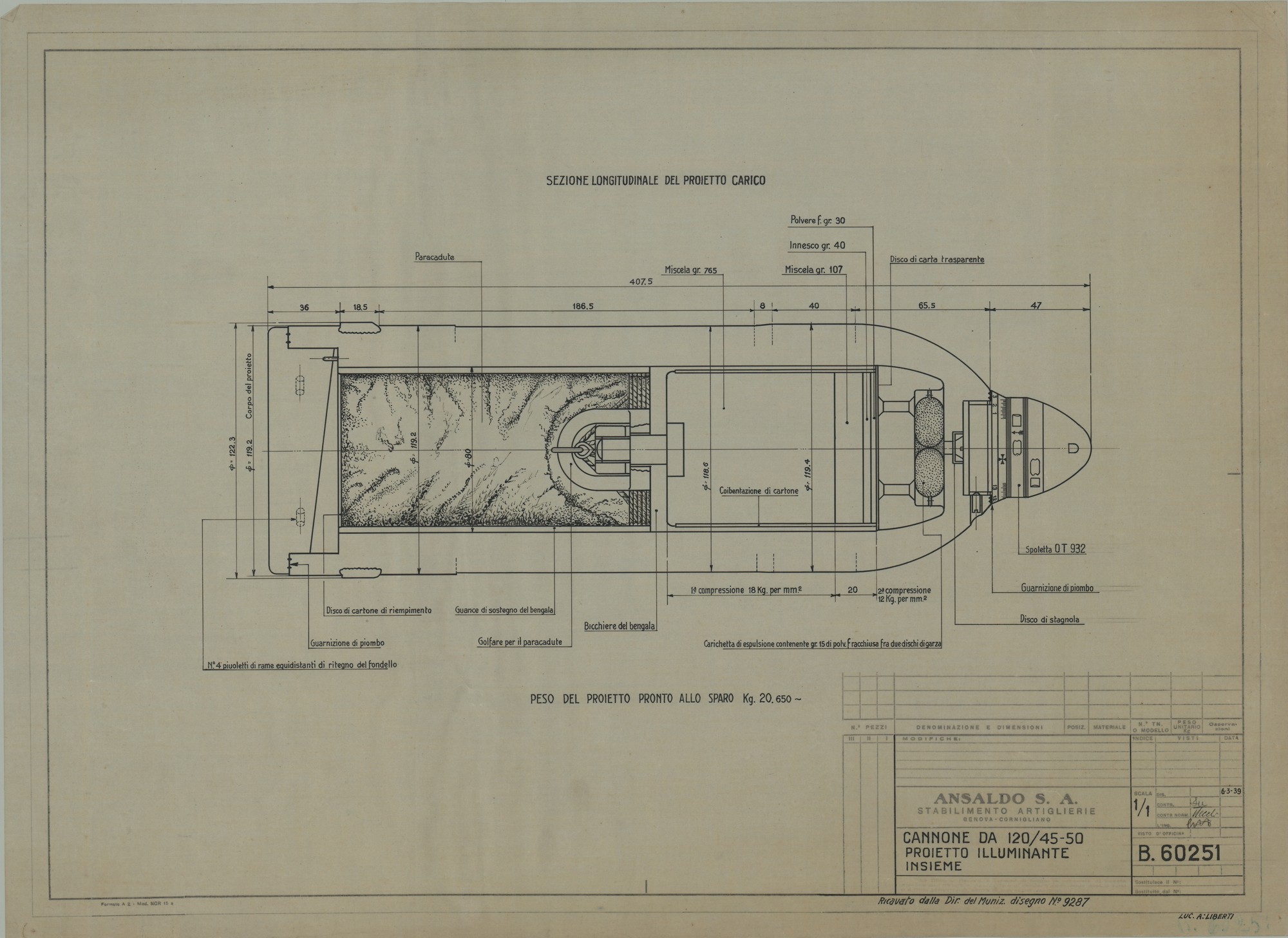 Cannone da 120/45 e 120/50 - proietto illuminante