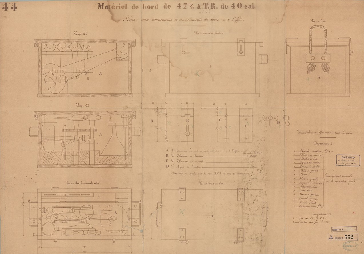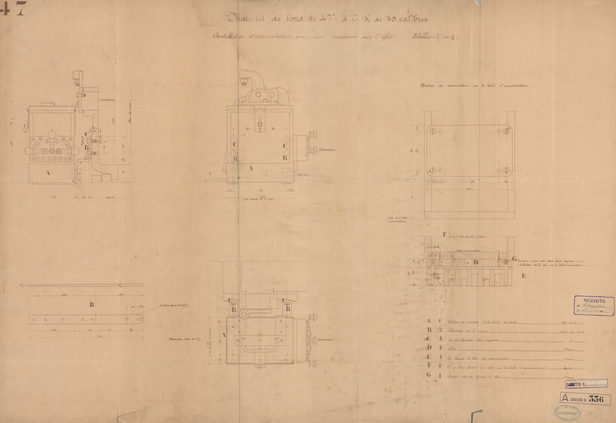 Cannone da 47 - triplo interruttore con reostati per i circuiti delle linee luminose di mira