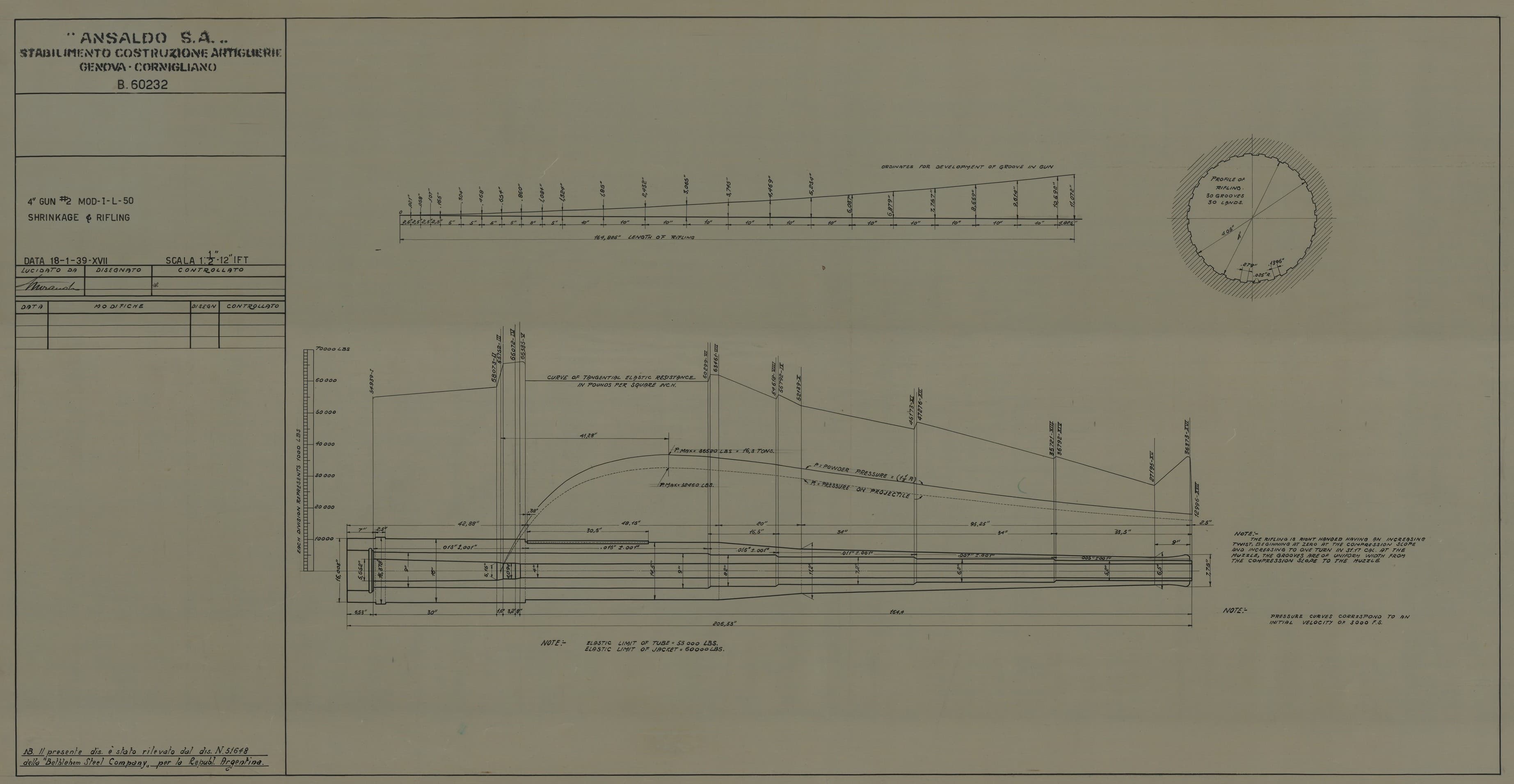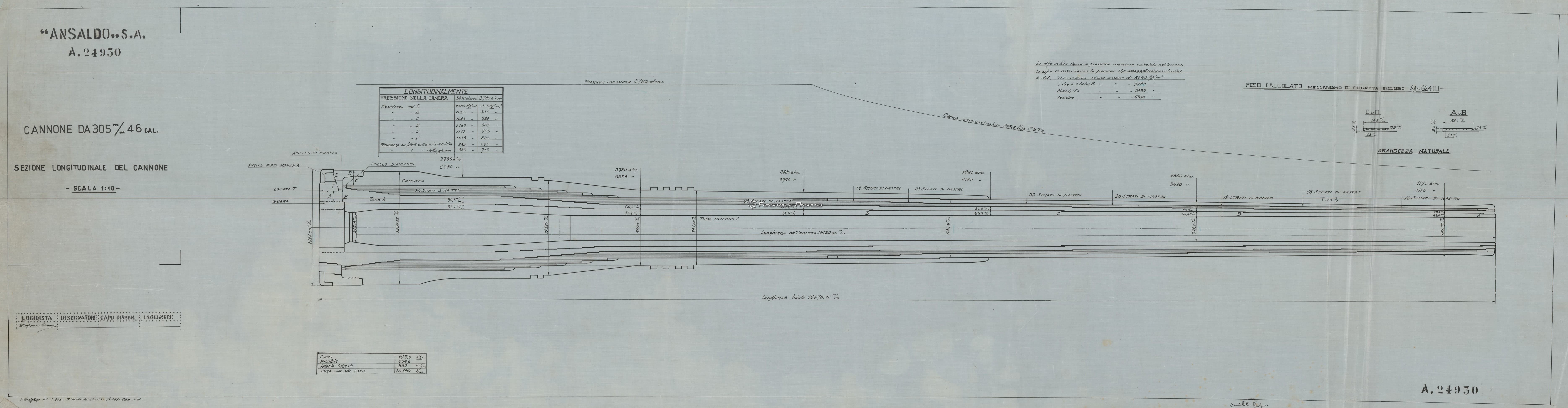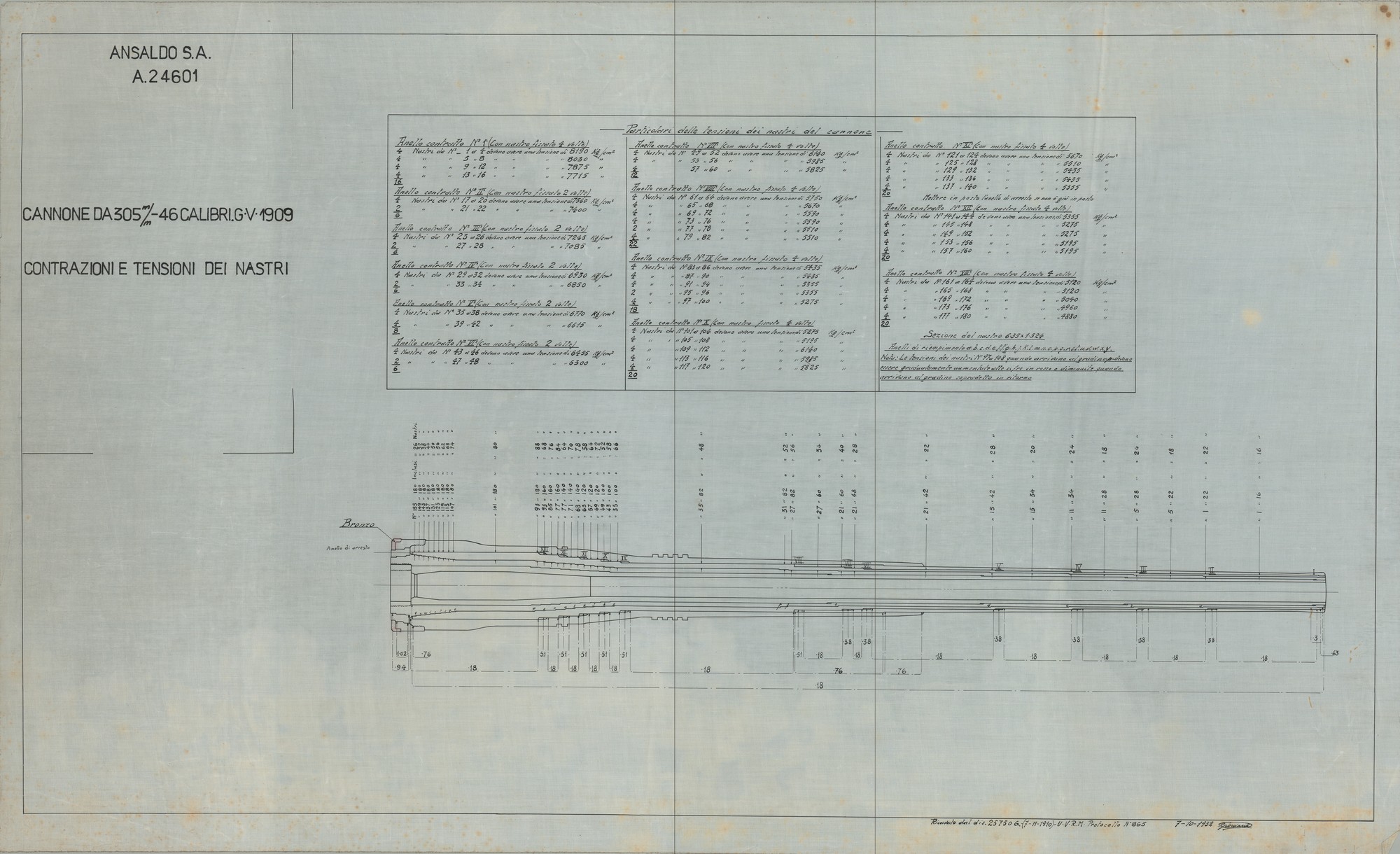 Cannone da 305/46. - contrazione e tensione dei nastri