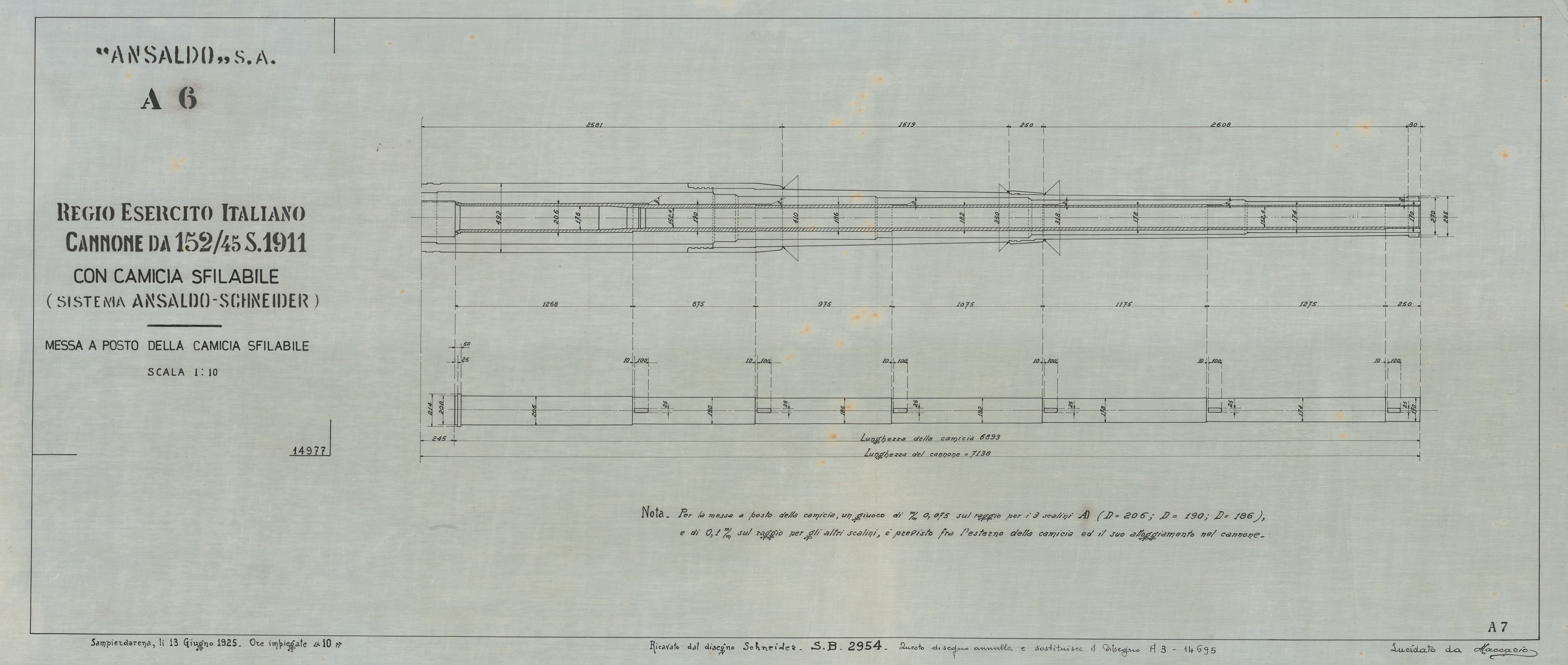 Cannone da 152/45 sistema Ansaldo Schneider - camicia sfilabile