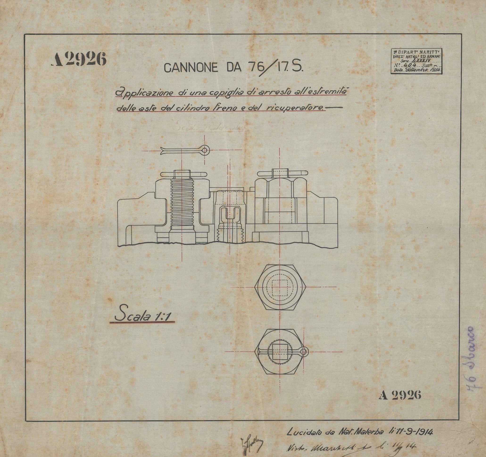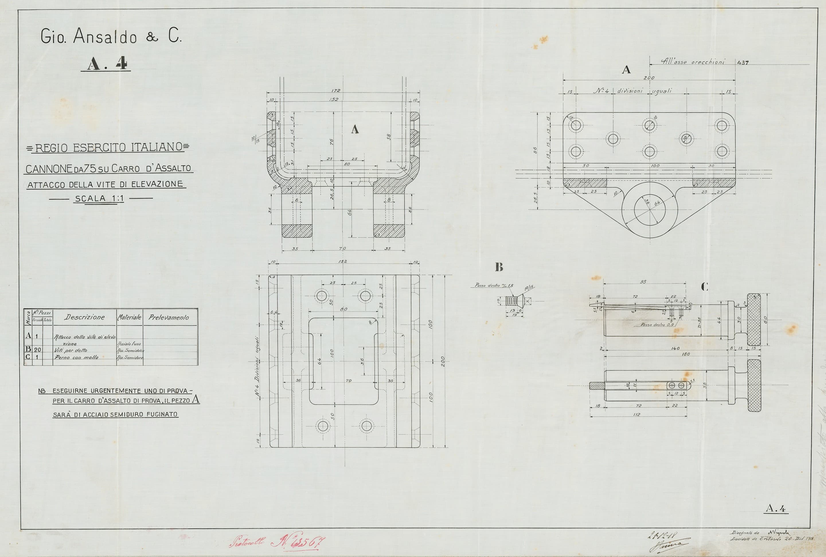 Cannone da 75 su carro d'assalto - attacco vite di elevazione