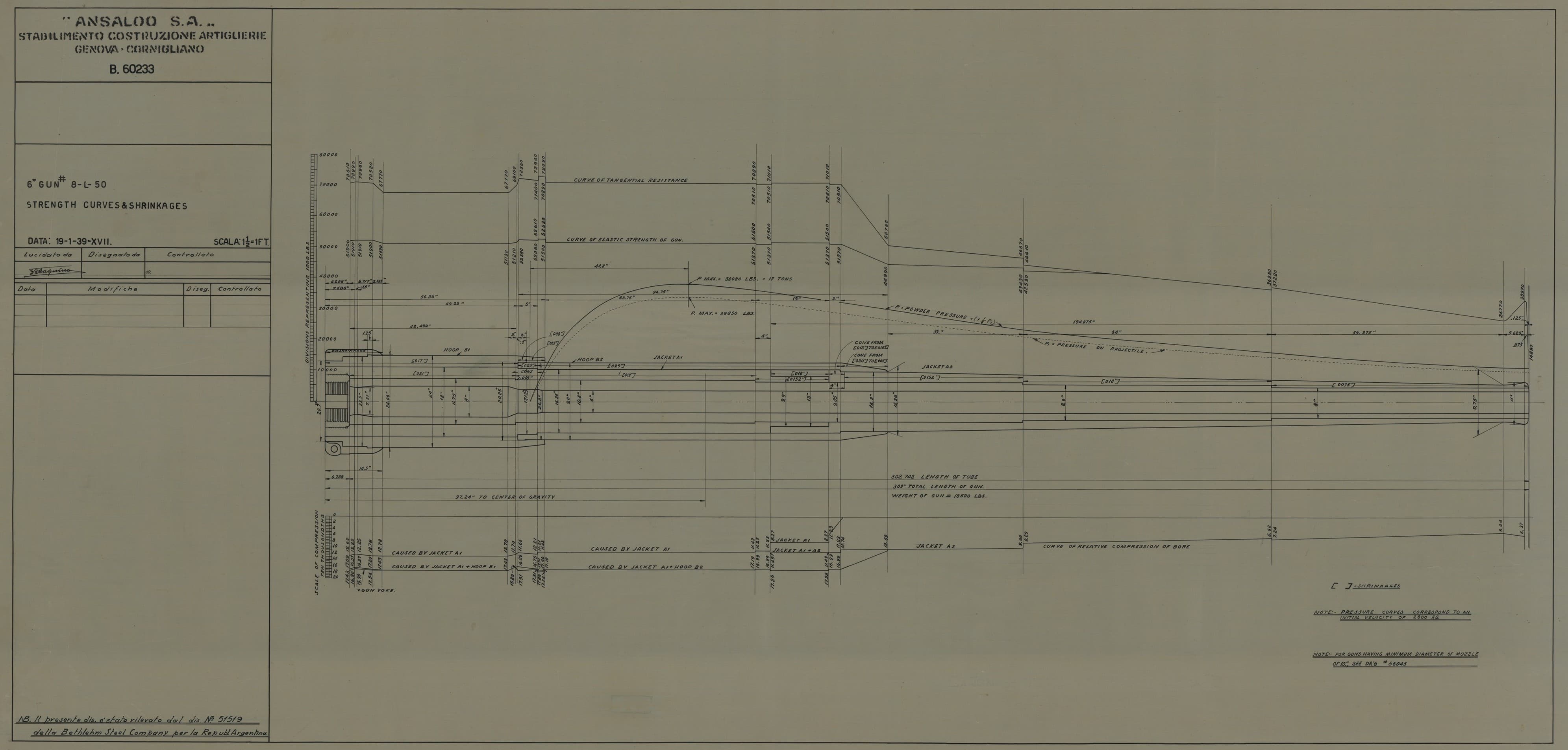 Cannone da 6 pollici - curva delle pressioni e restringimento
