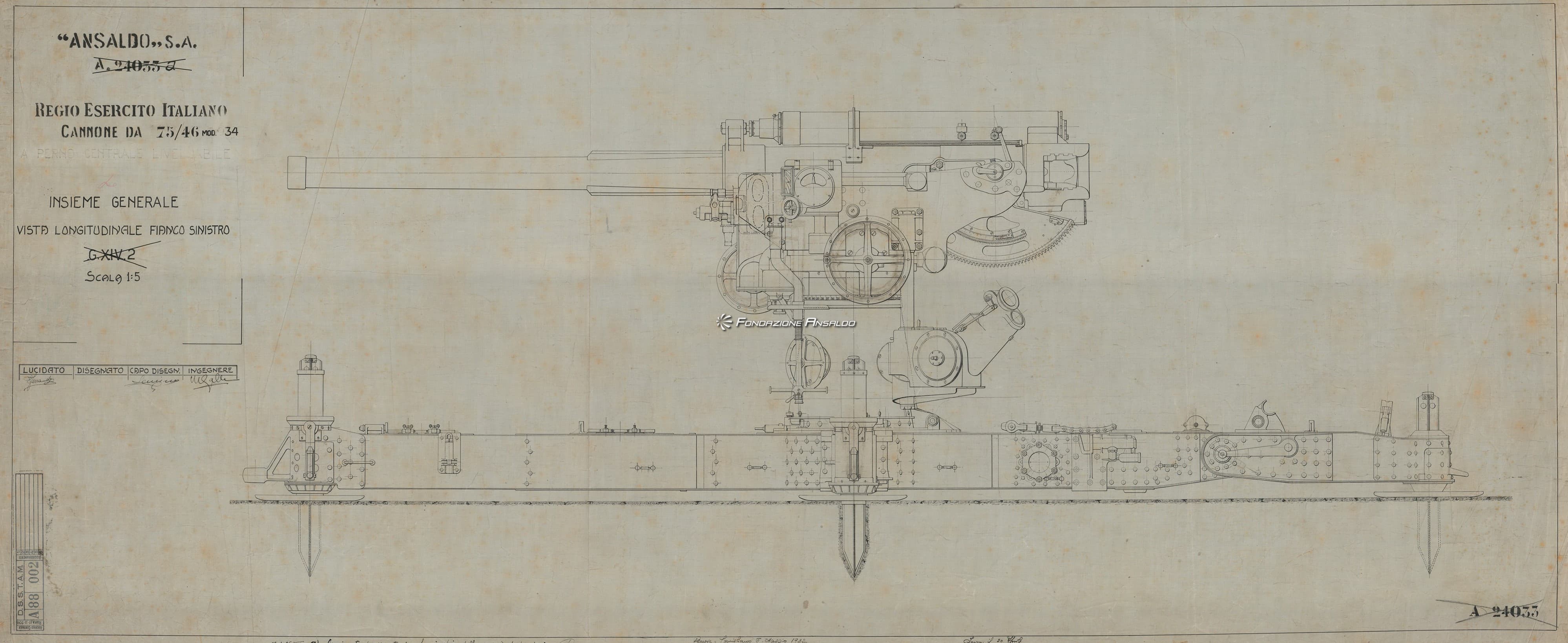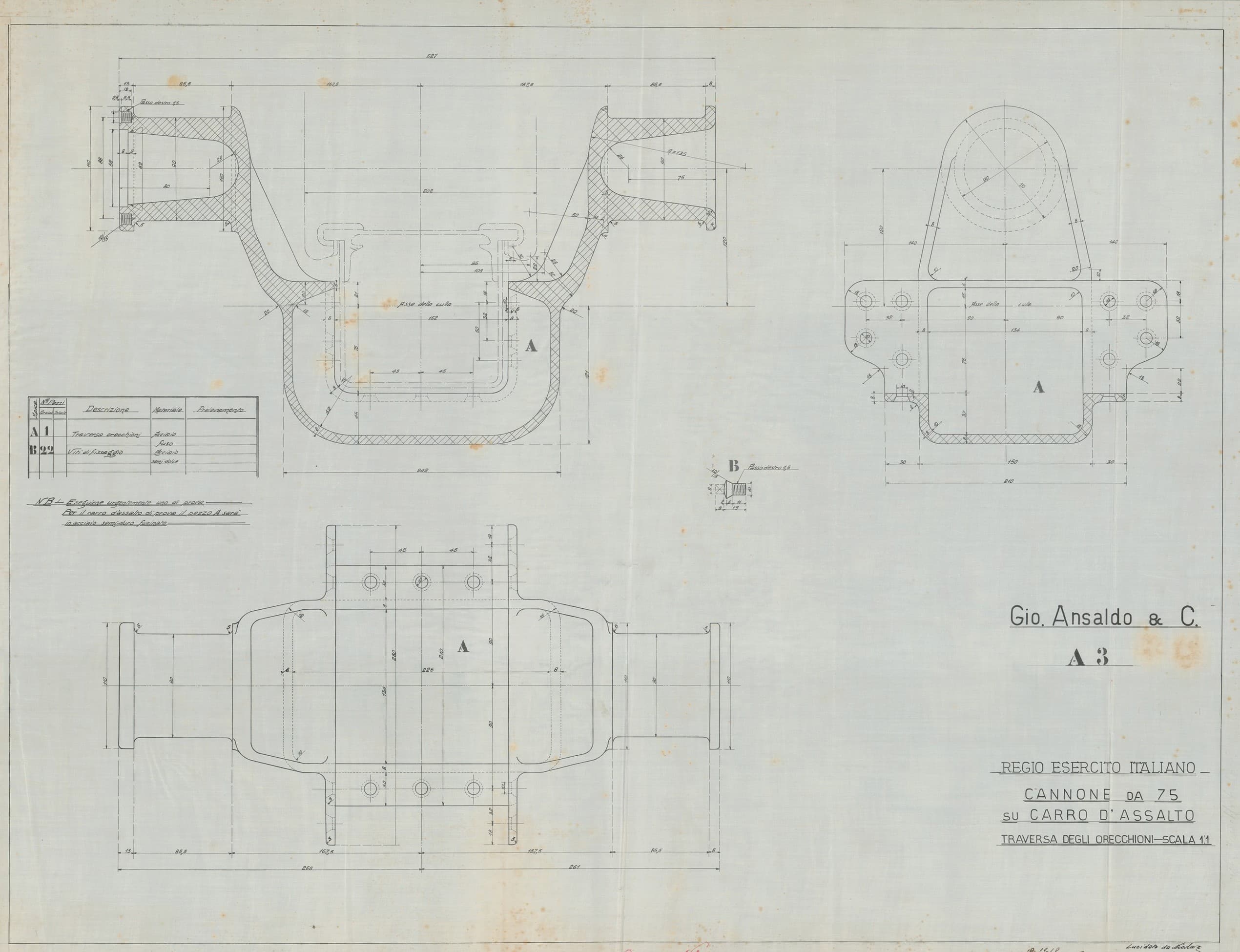 Cannone da 75 su carro d'assalto - traversa degli orecchioni