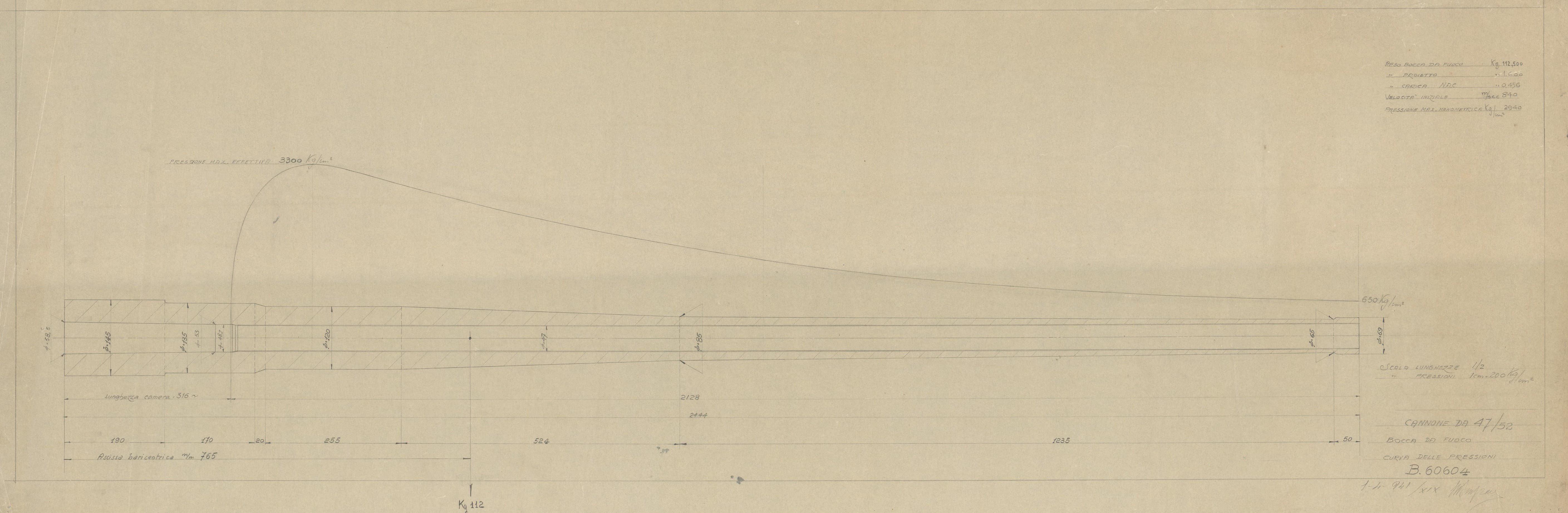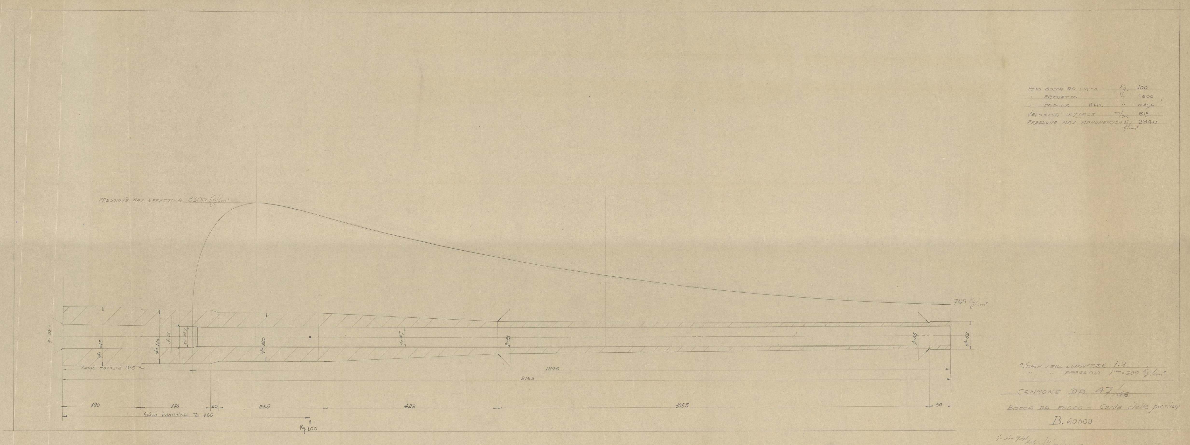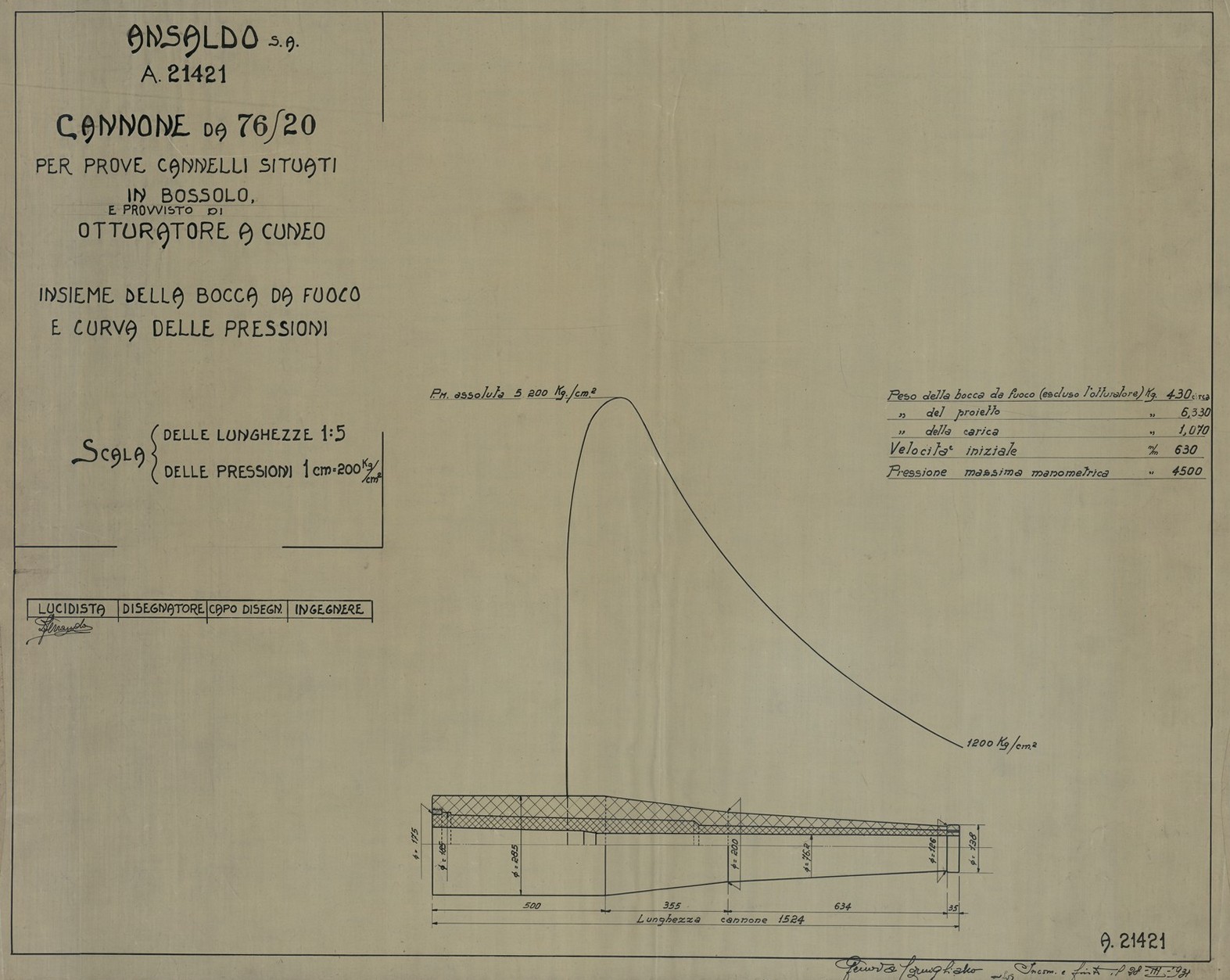 Cannone da 76/20 - bocca da fuoco e curva delle pressioni