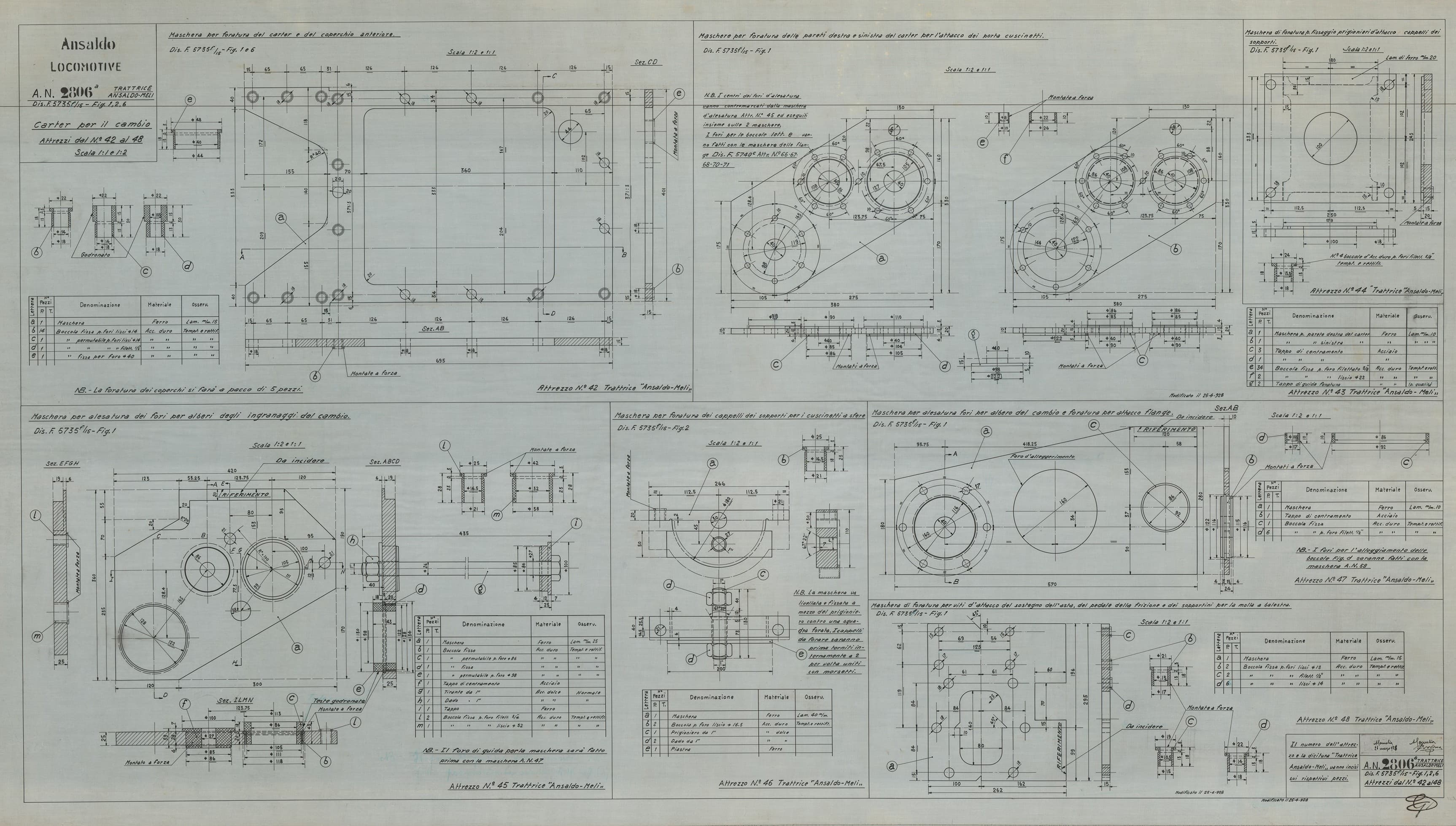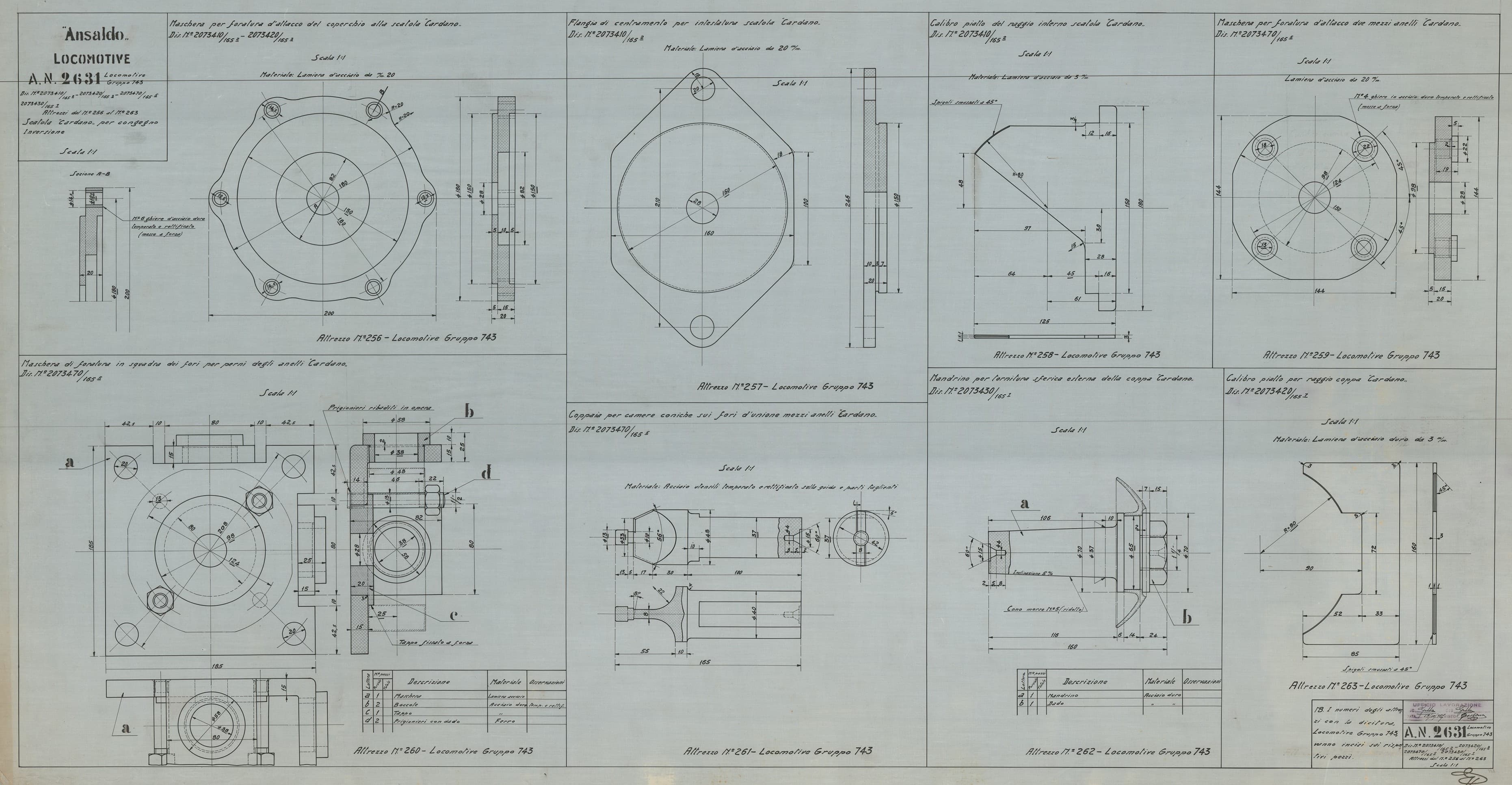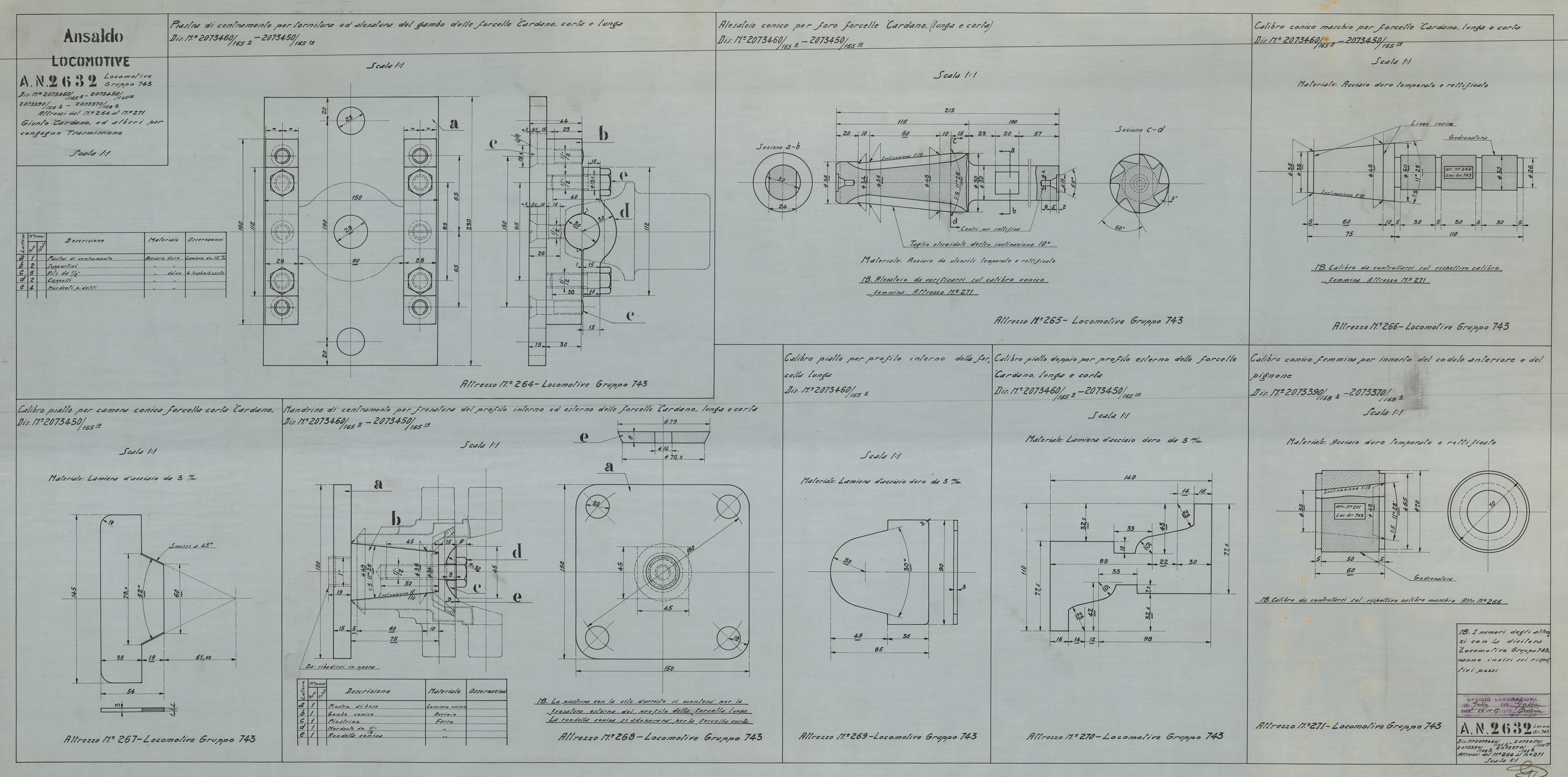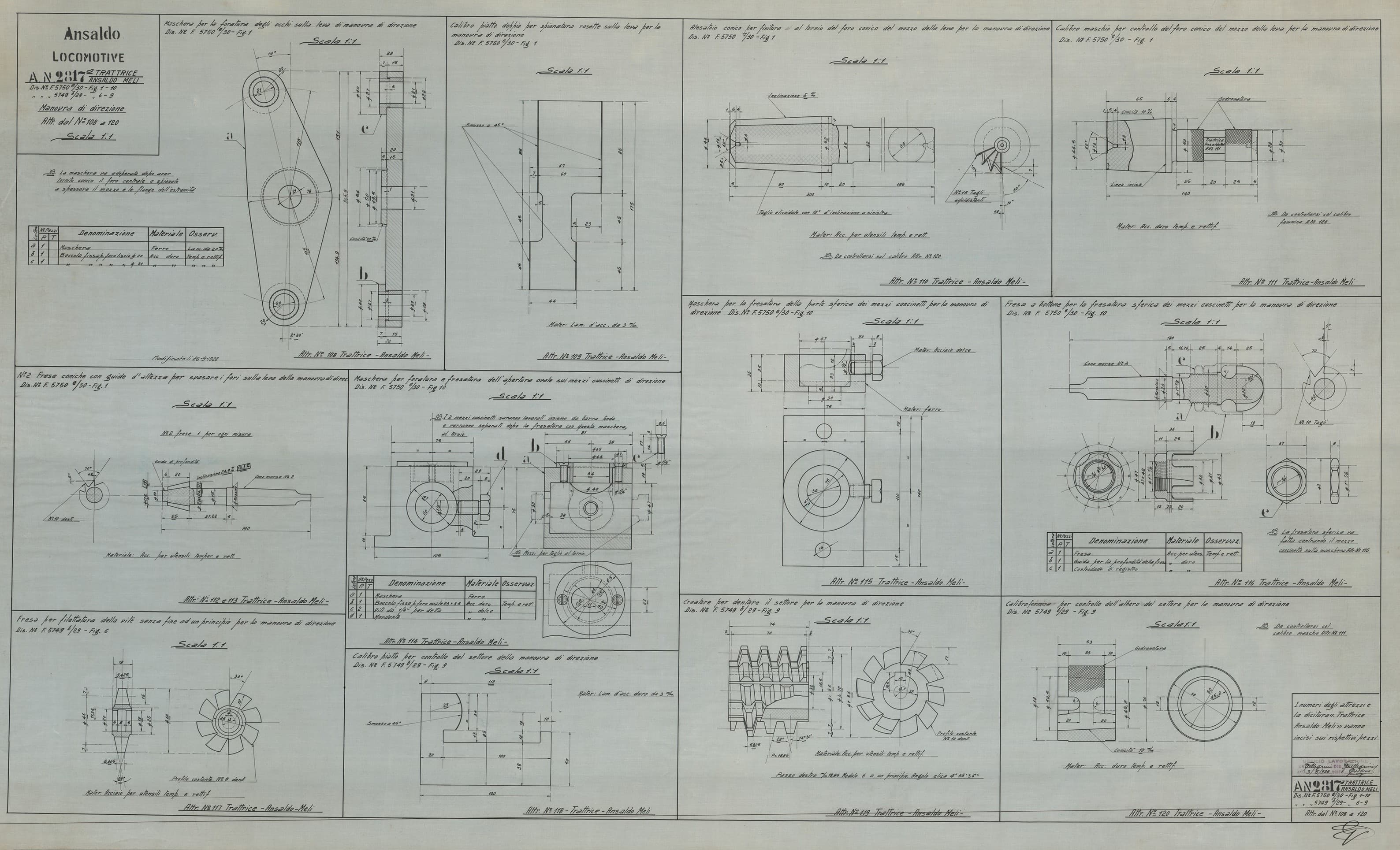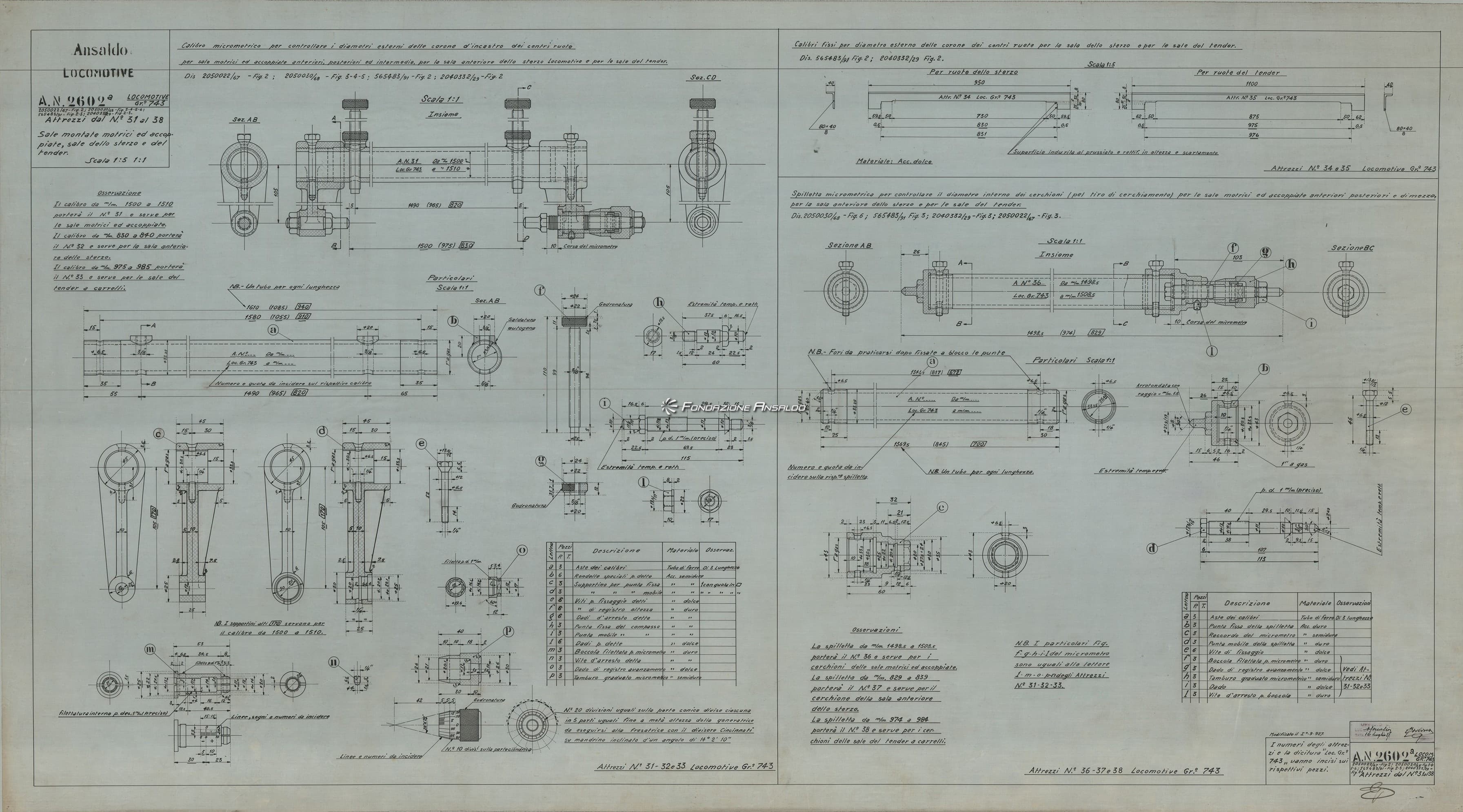 Attrezzi per Locomotive gruppo 743 - trasmissione, particolari rinvio sala