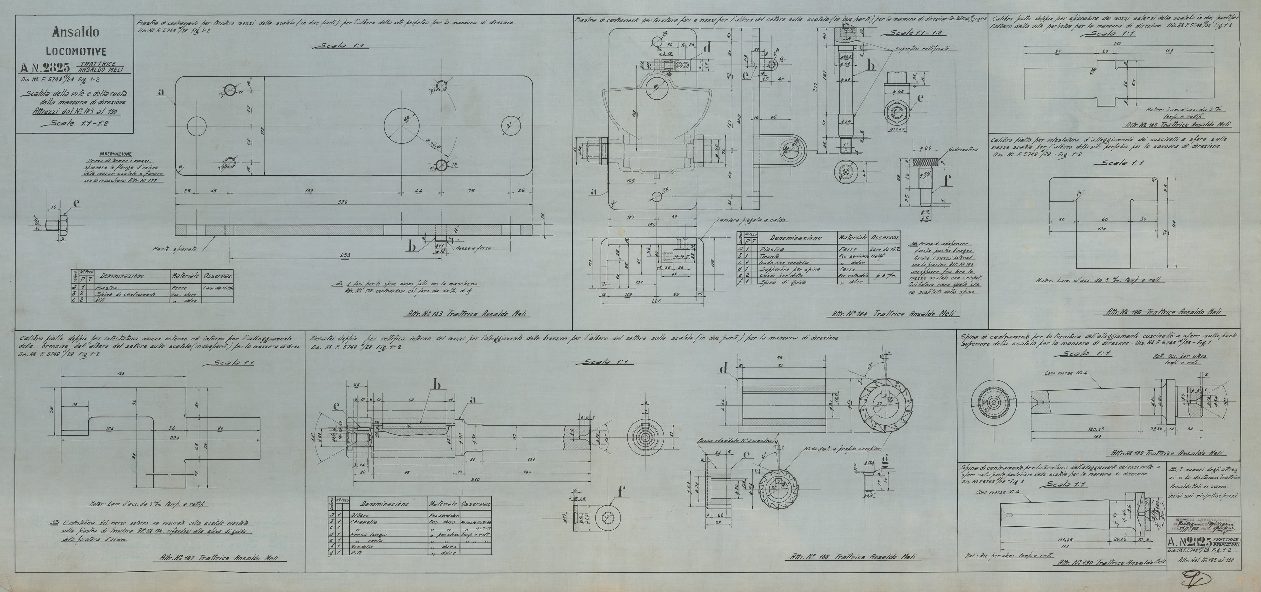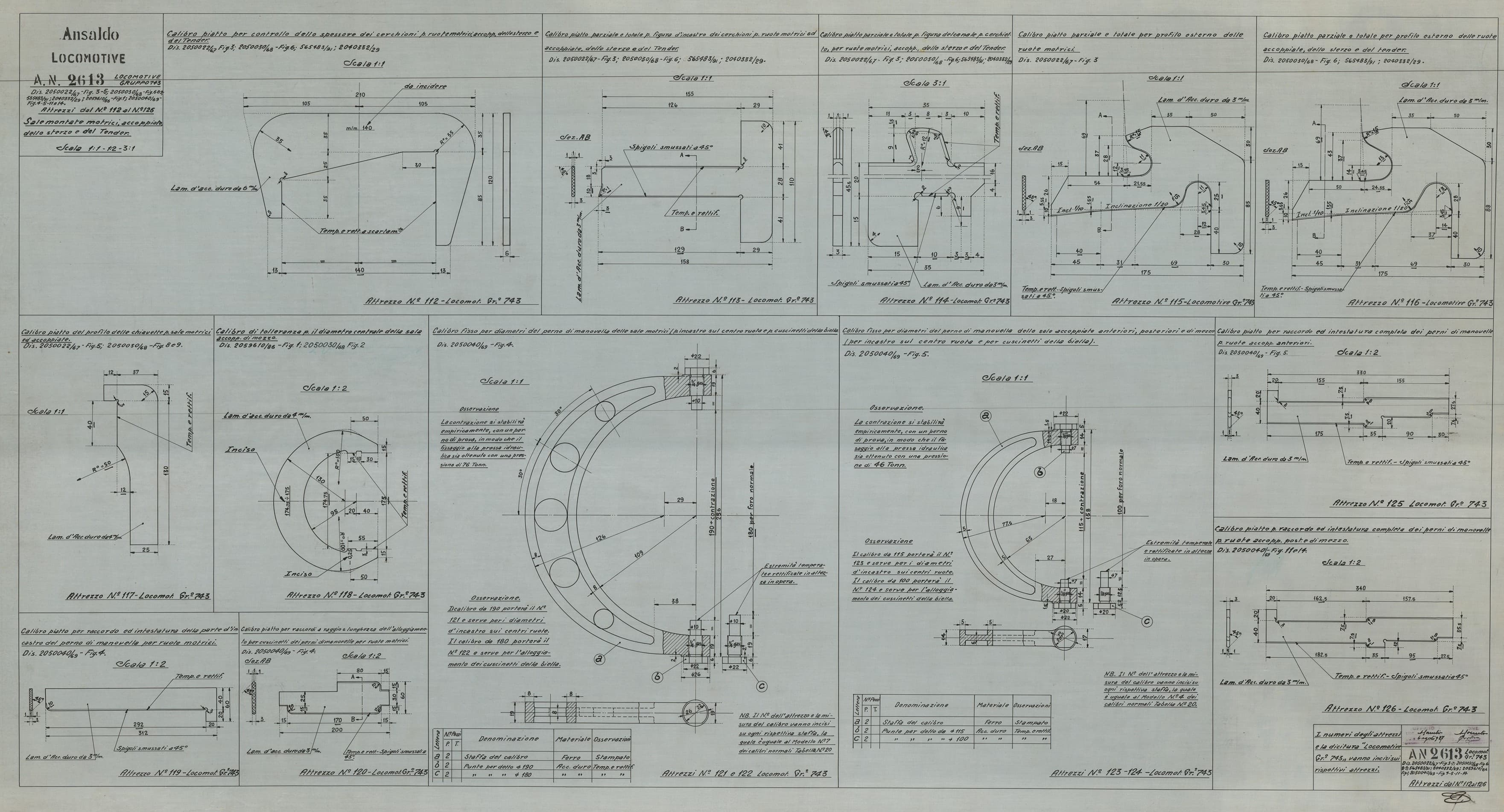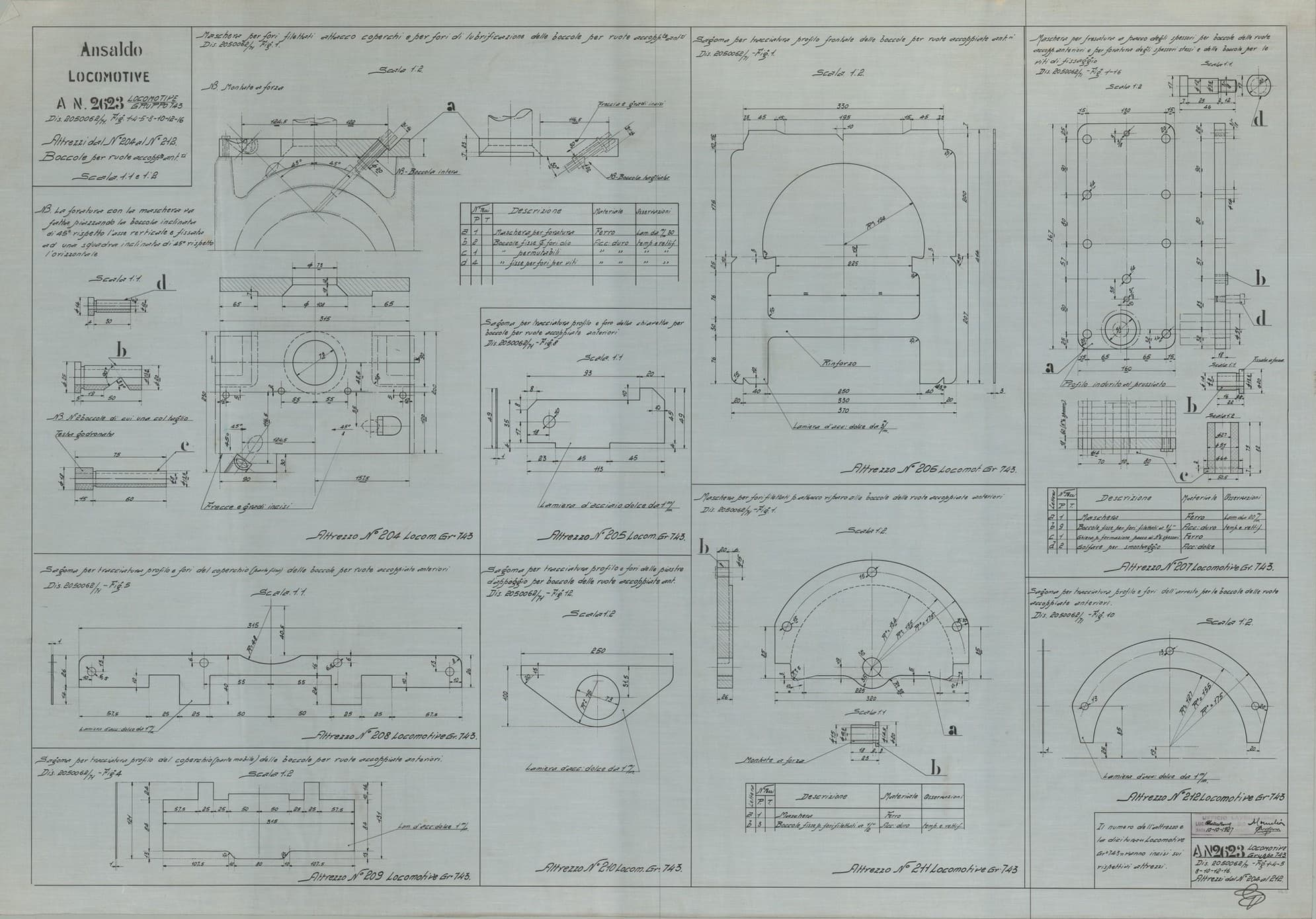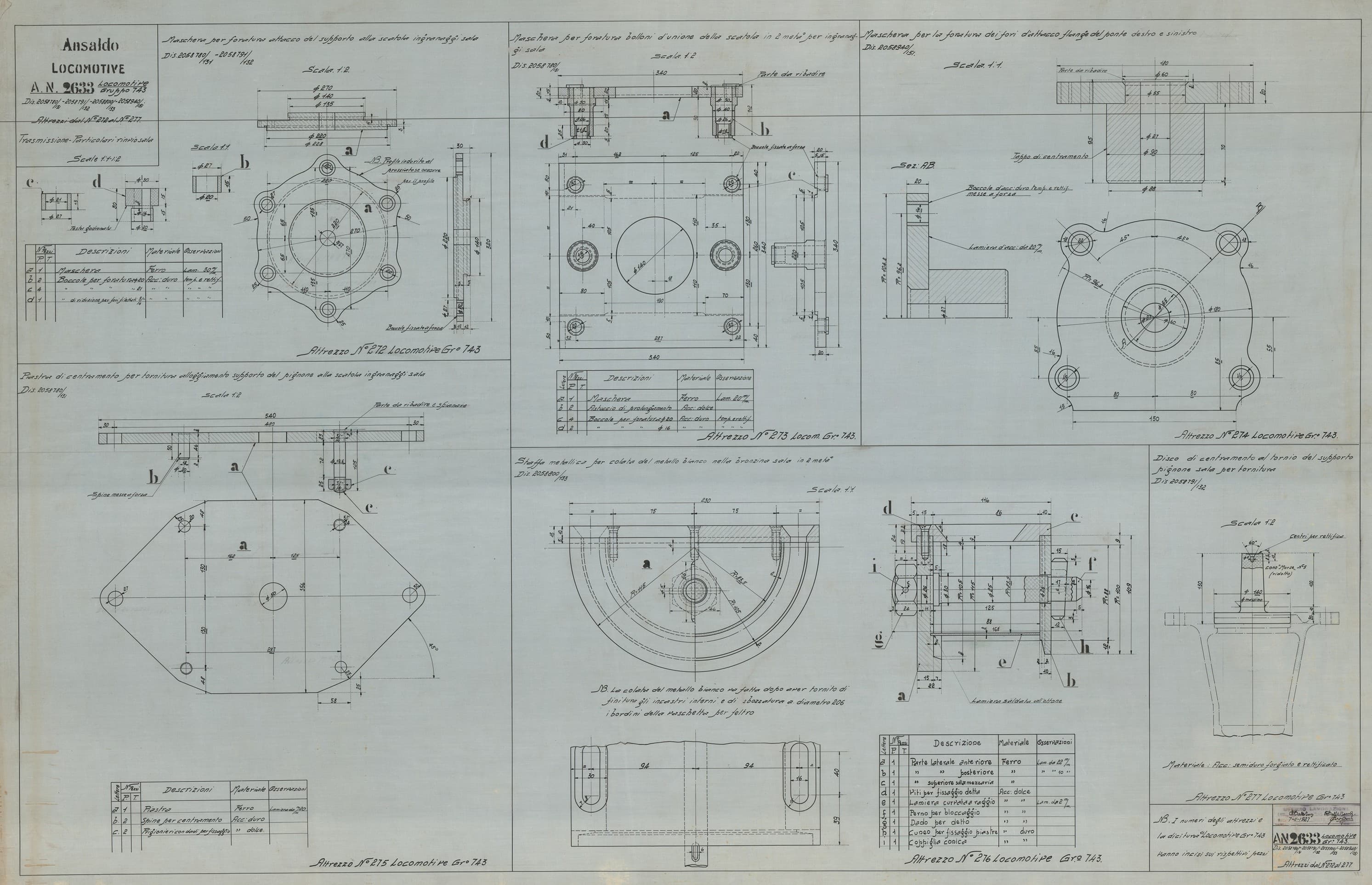 Attrezzi per Locomotive gruppo 743 - scappamento motore, respingenti e particolari delle ruote motrici ed accoppiate