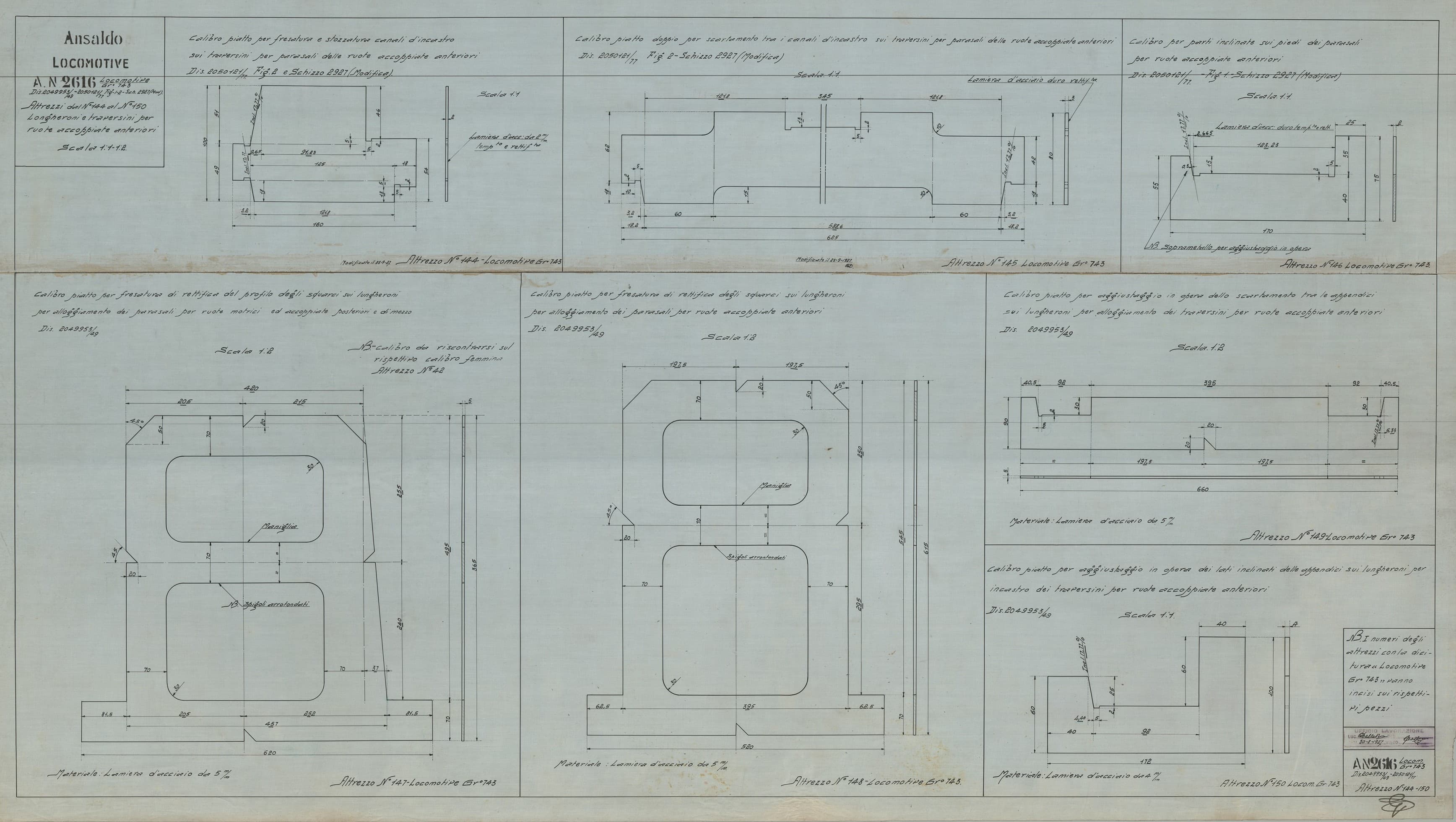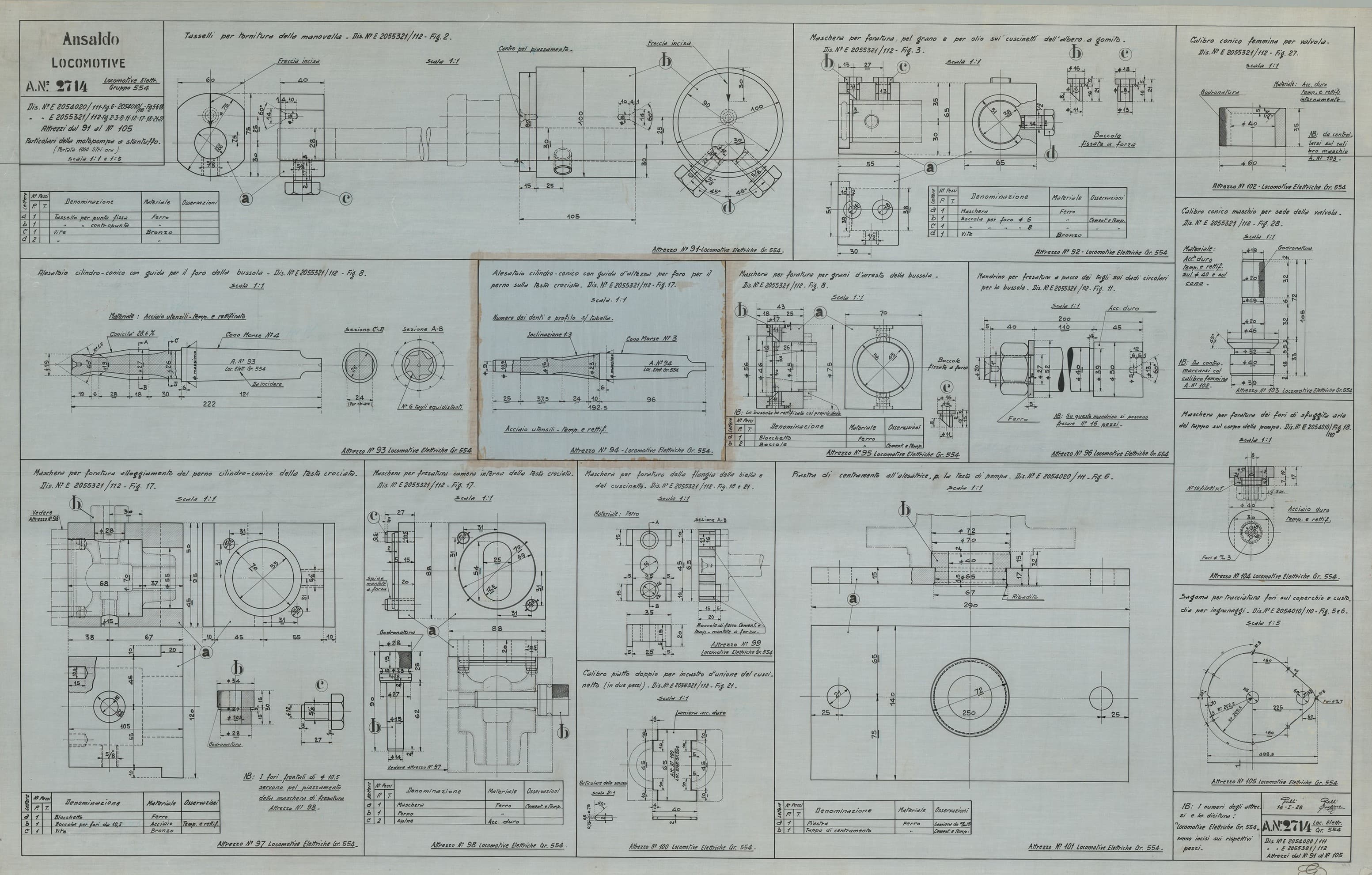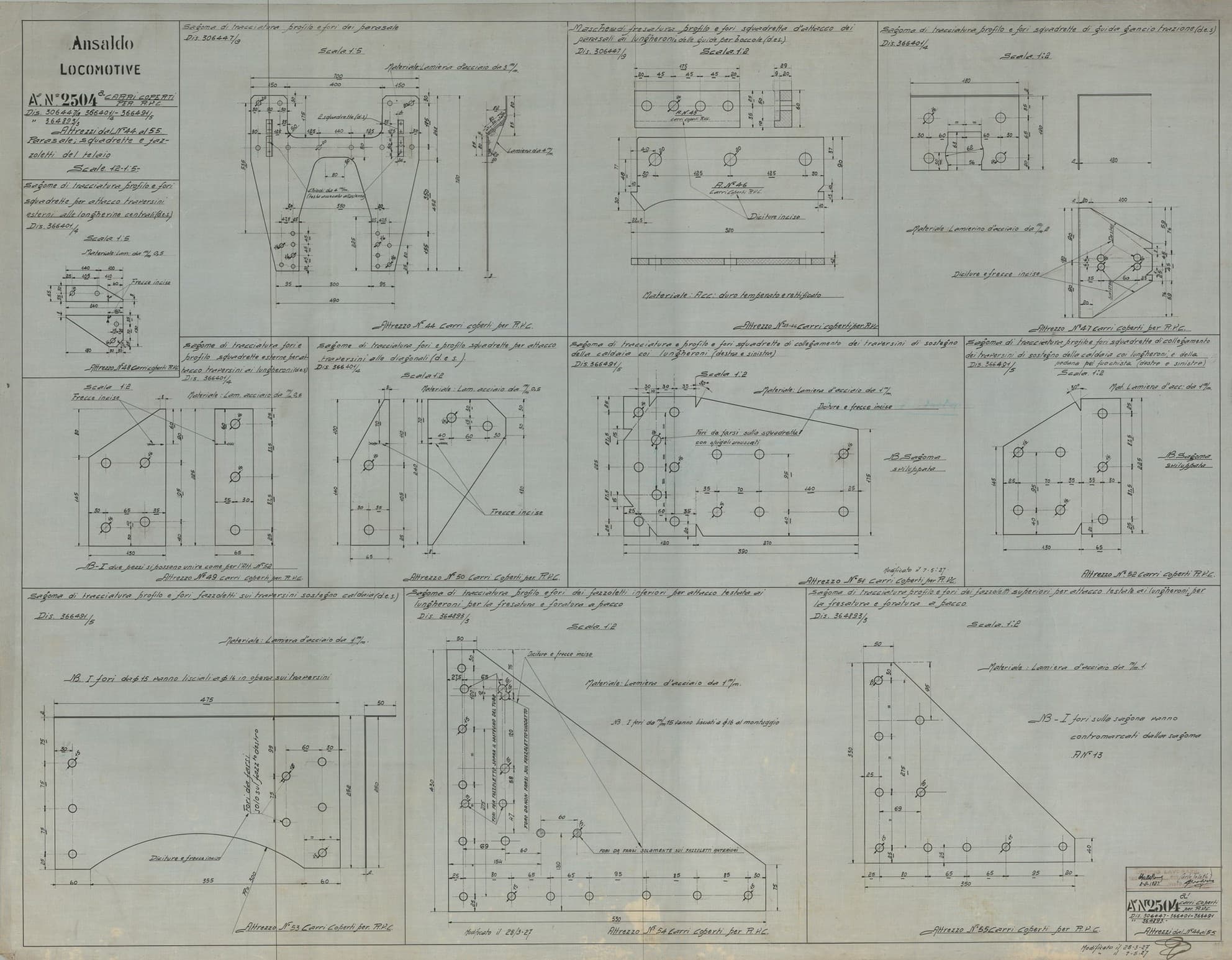 Attrezzi per Locomotive gruppo 743 - scappamento motore, respingenti e particolari delle ruote motrici ed accoppiate