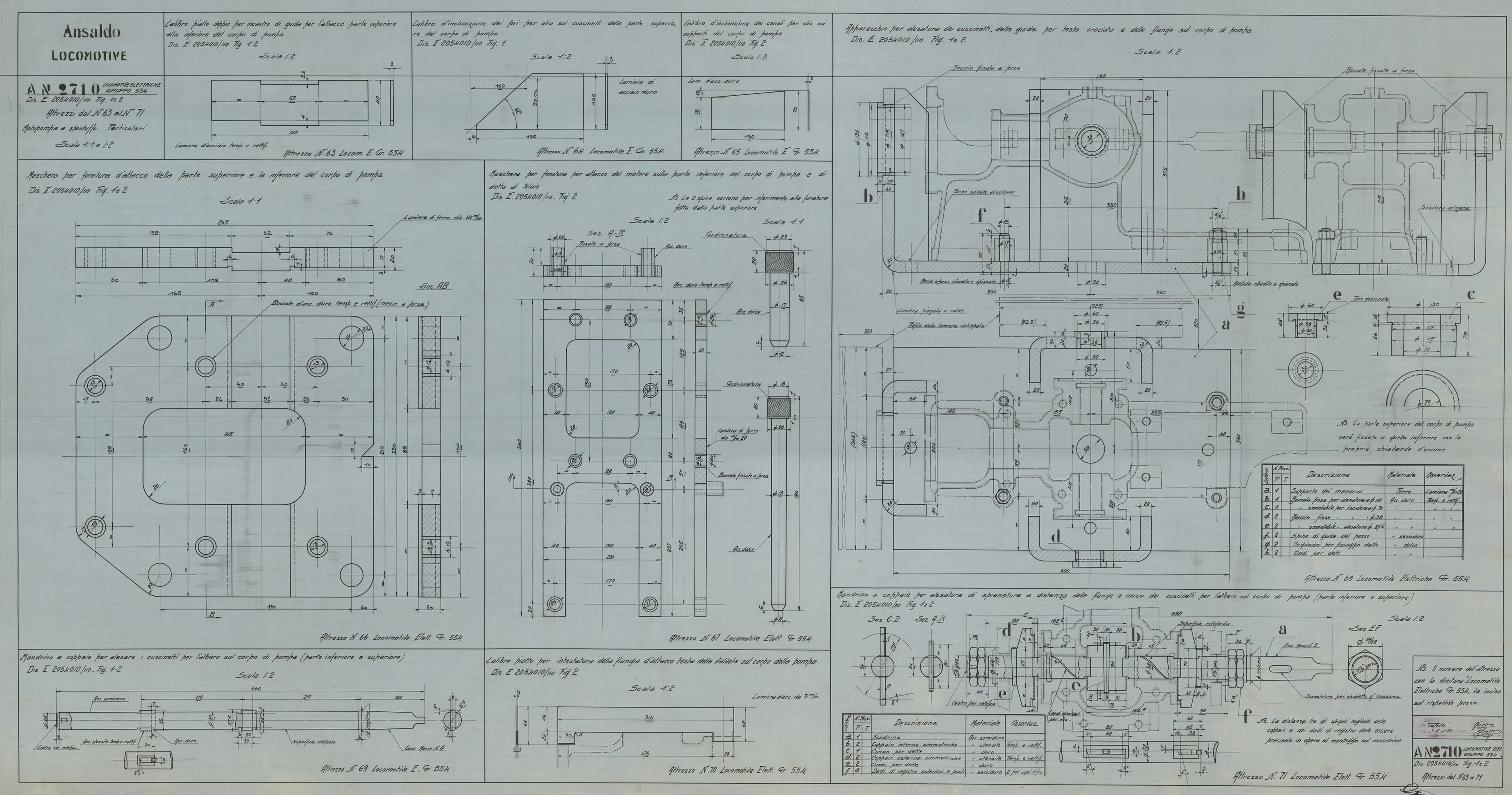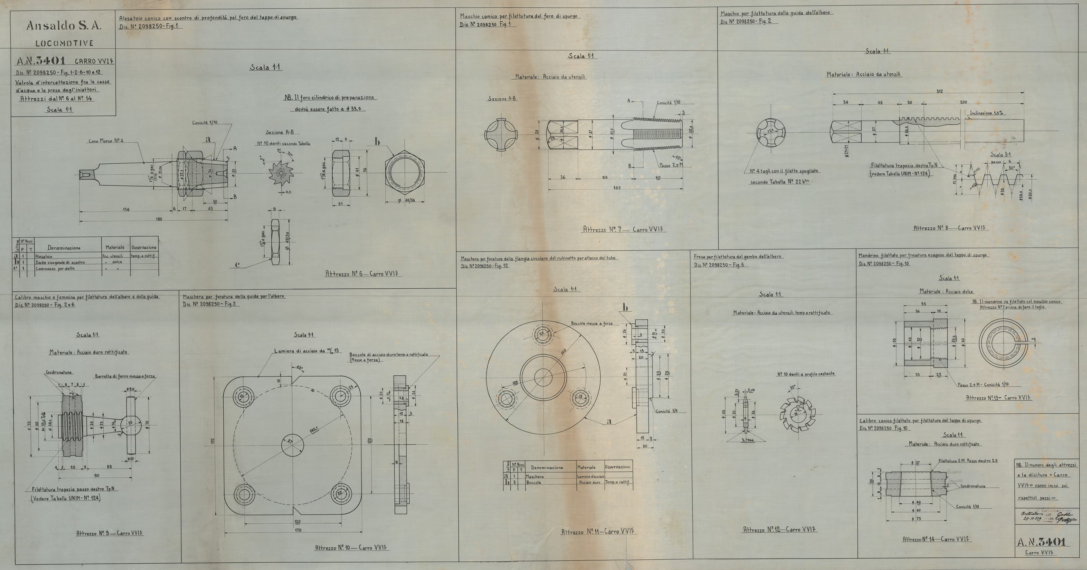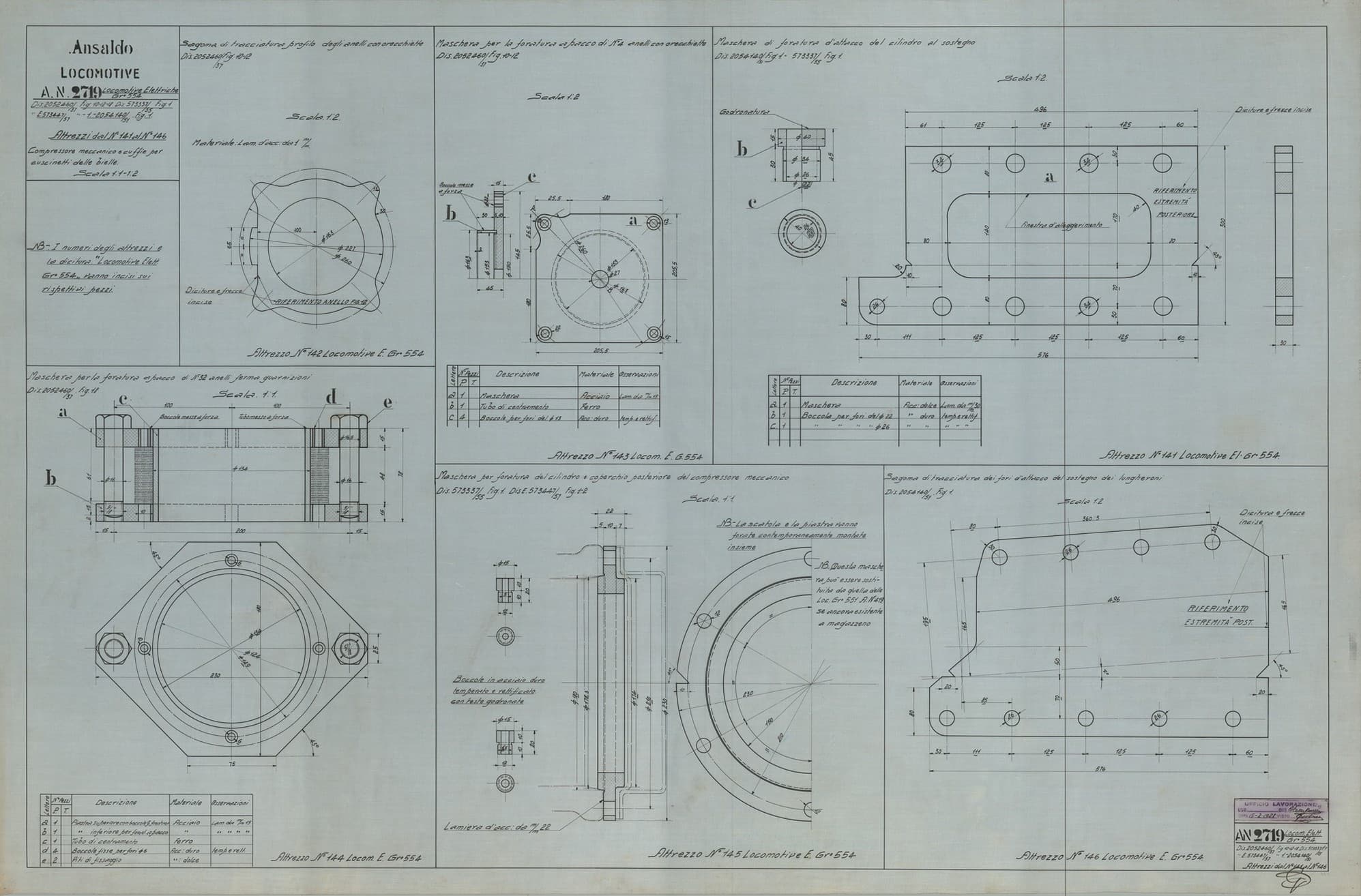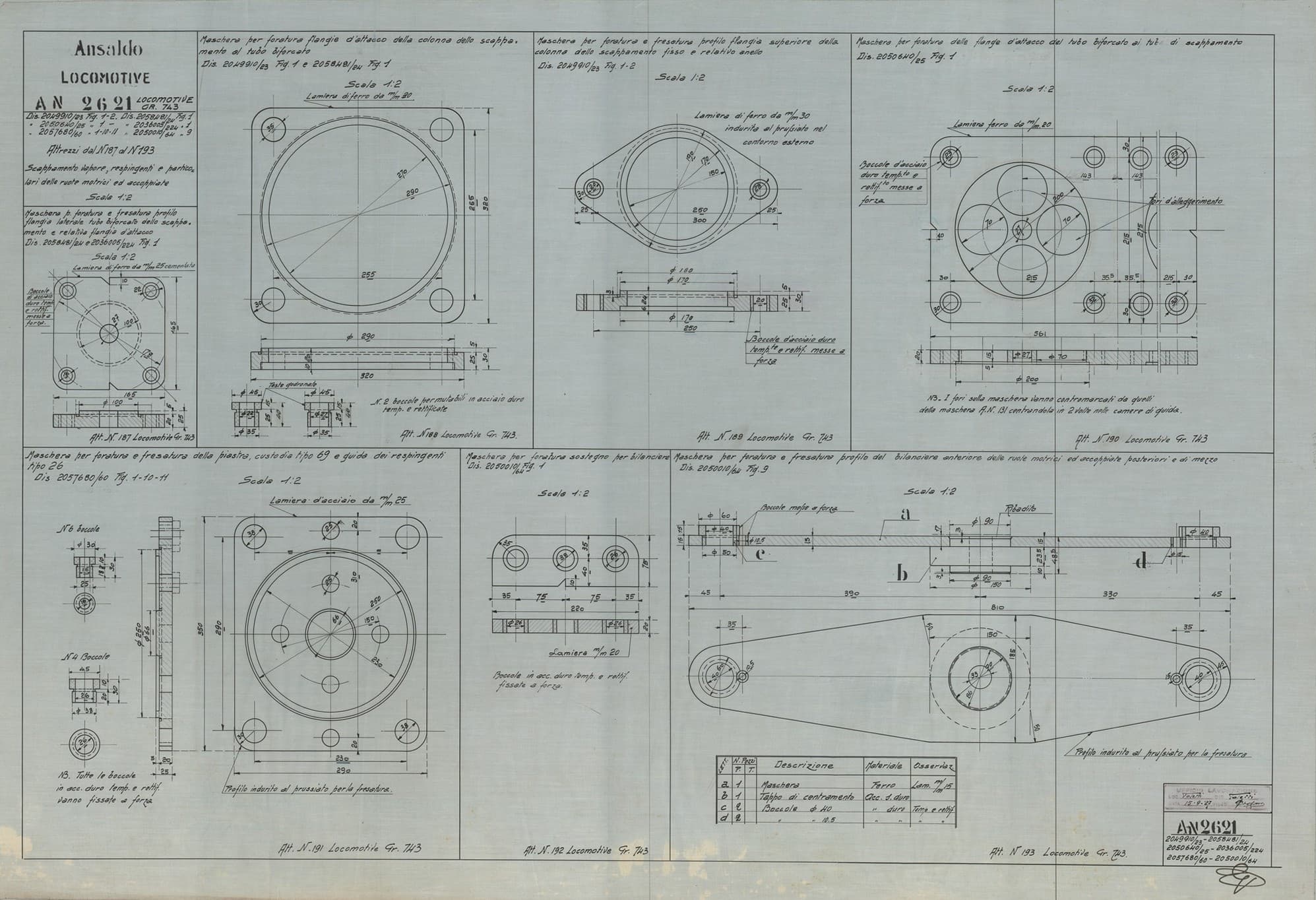 Attrezzi per Locomotive gruppo 743 - scappamento motore, respingenti e particolari delle ruote motrici ed accoppiate