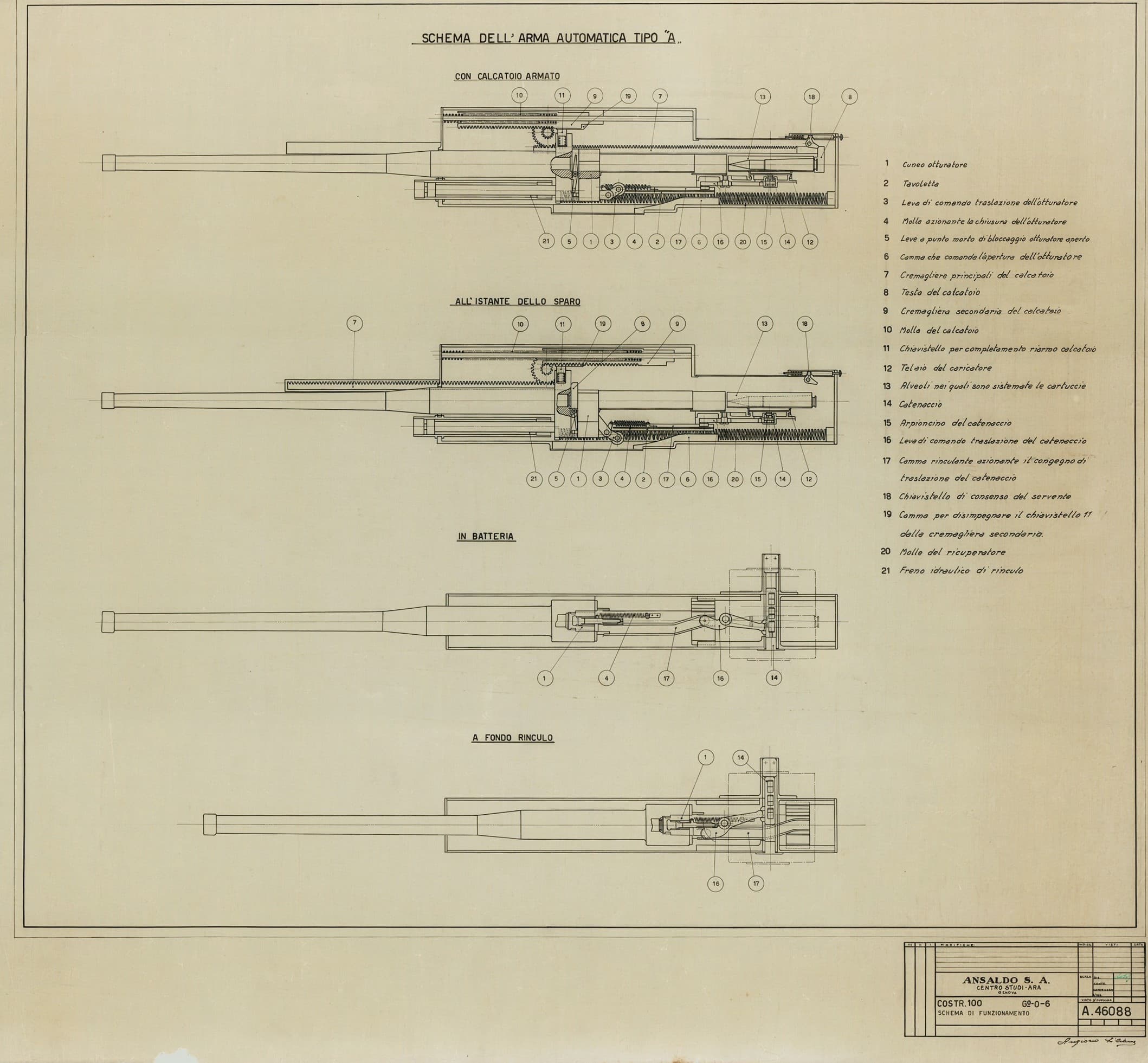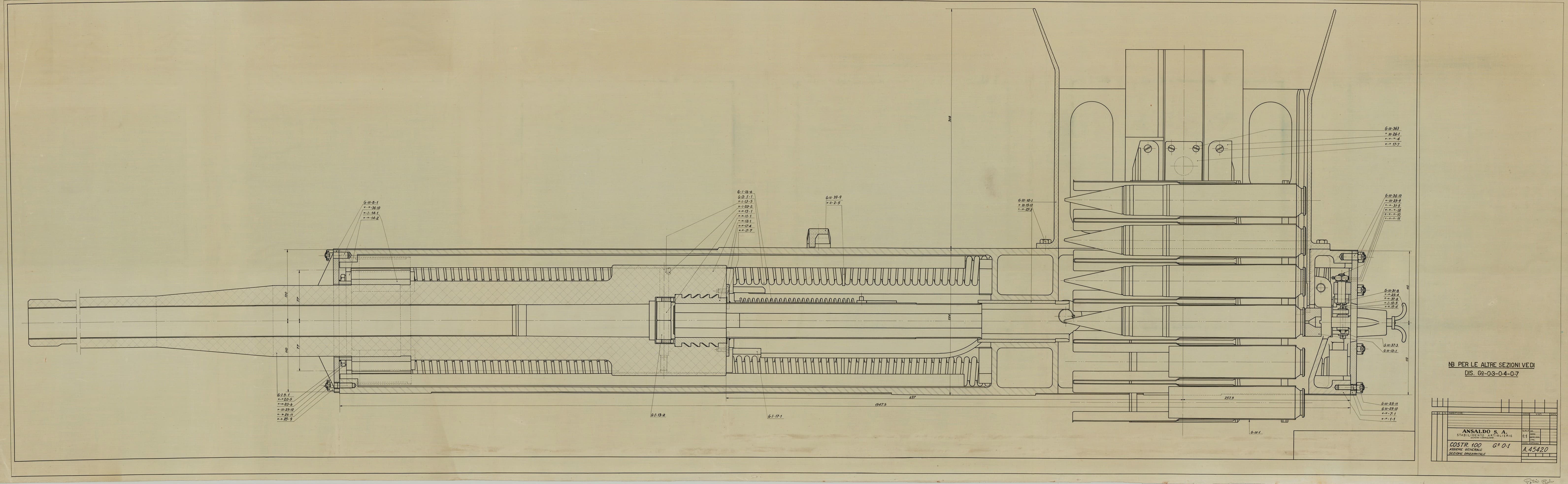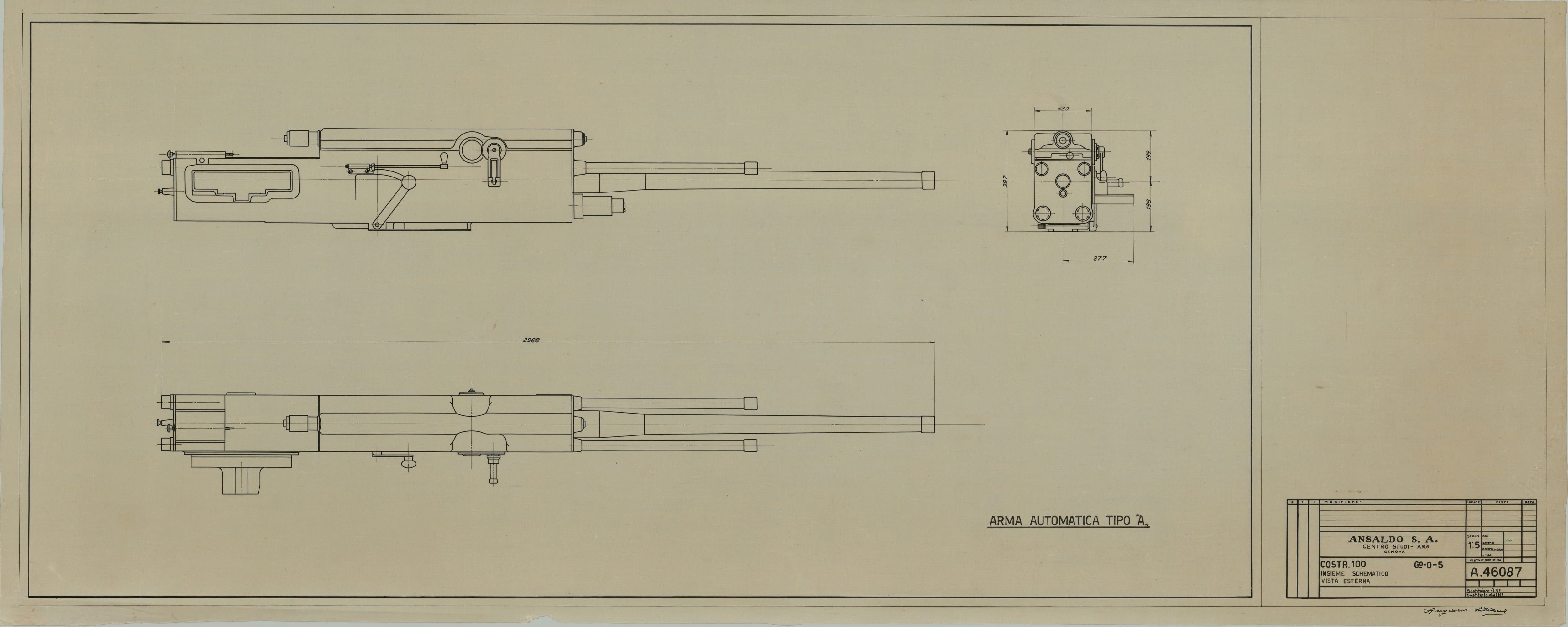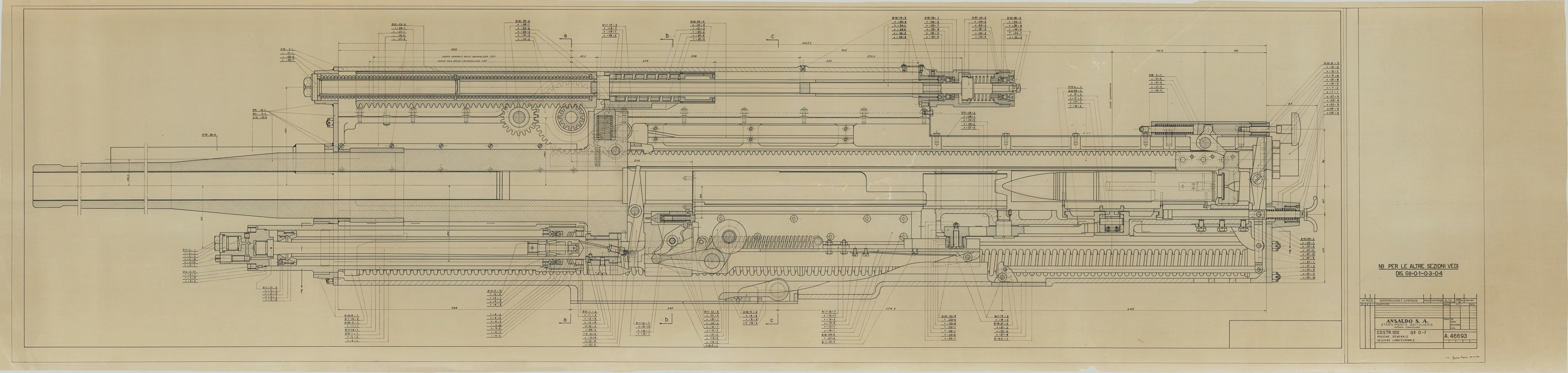 Arma automatica - sezione longitudinale laterale del caricatore e particolari
