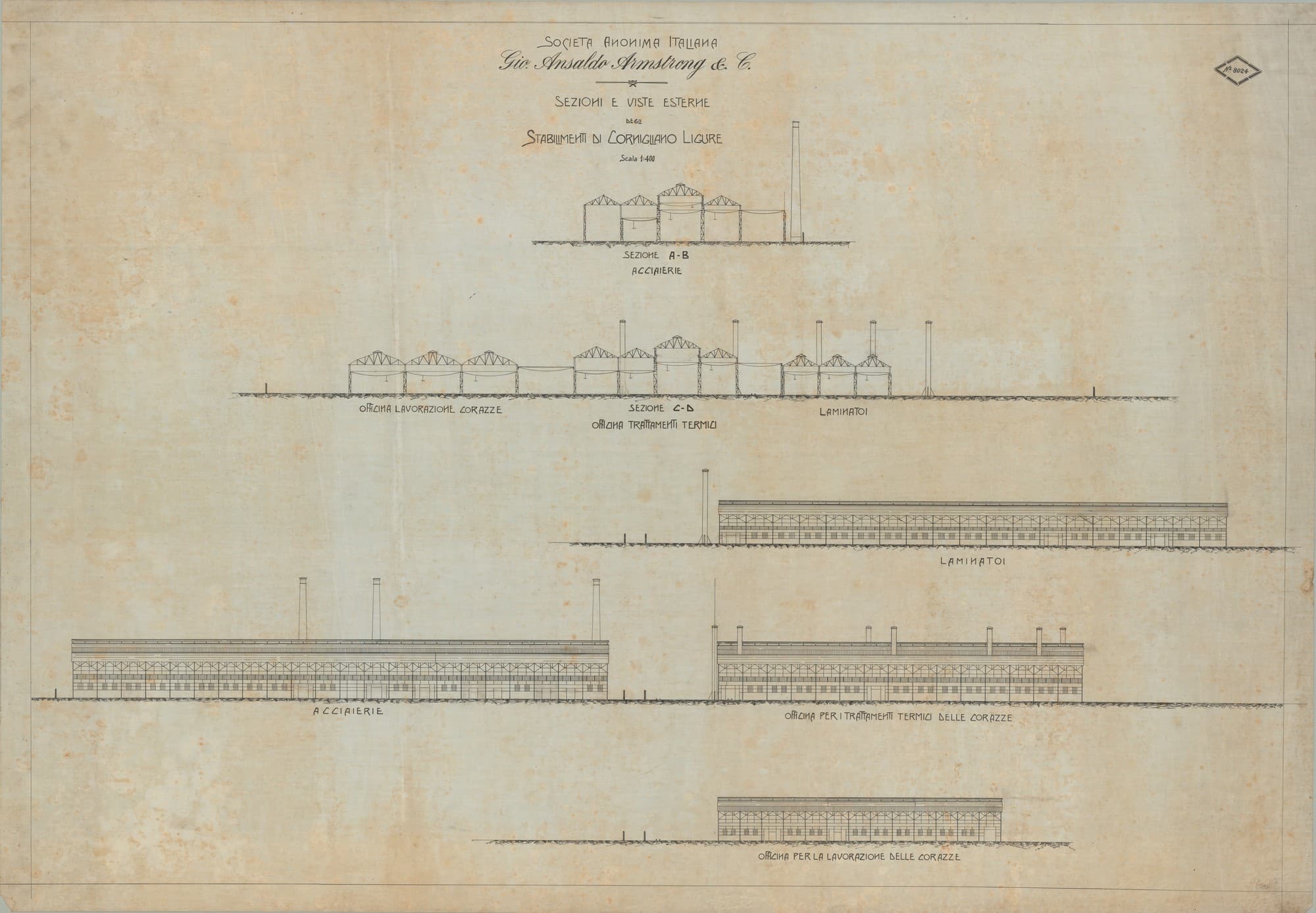 Acciaierie e Fonderie di Cornigliano - sezioni e viste esterne