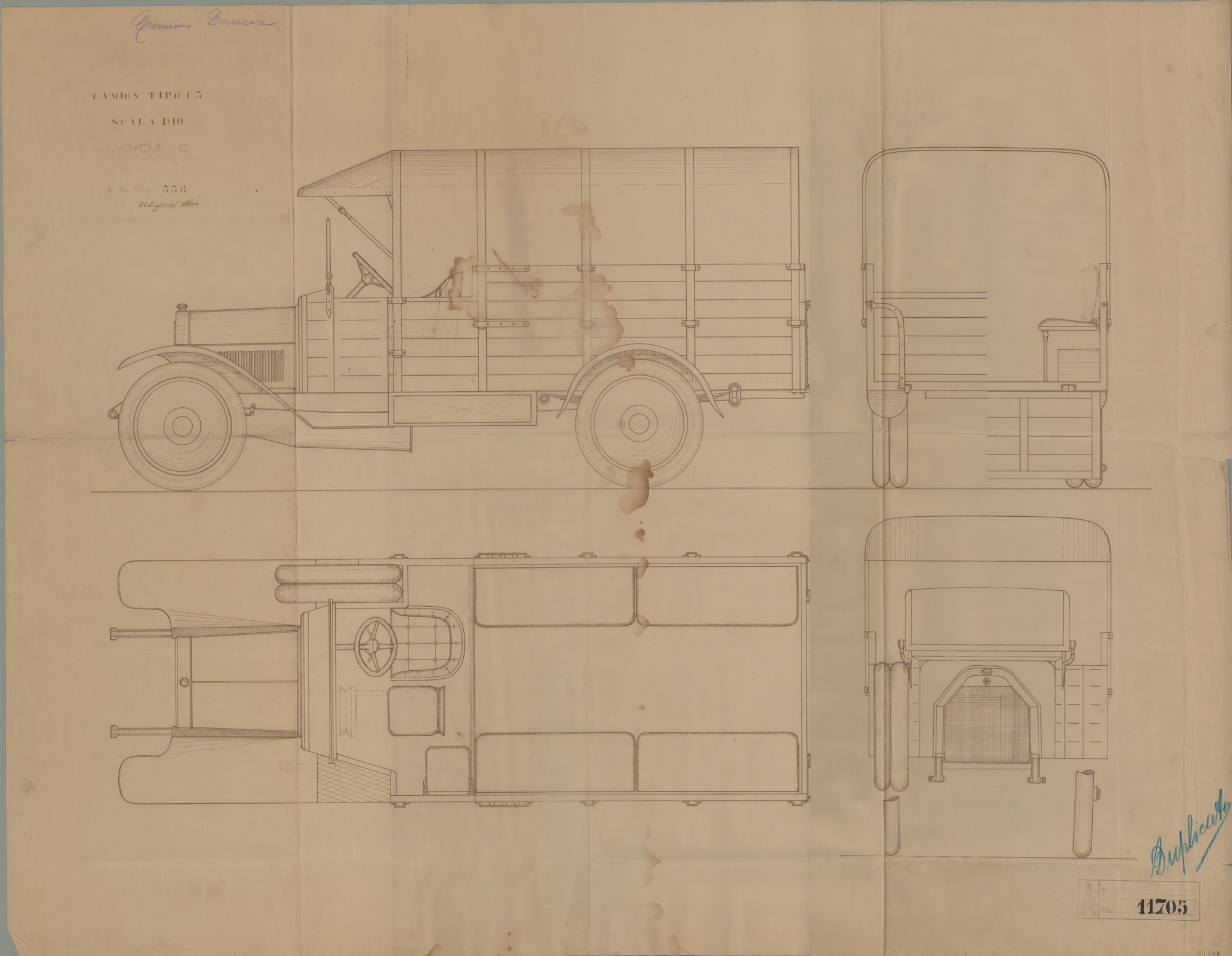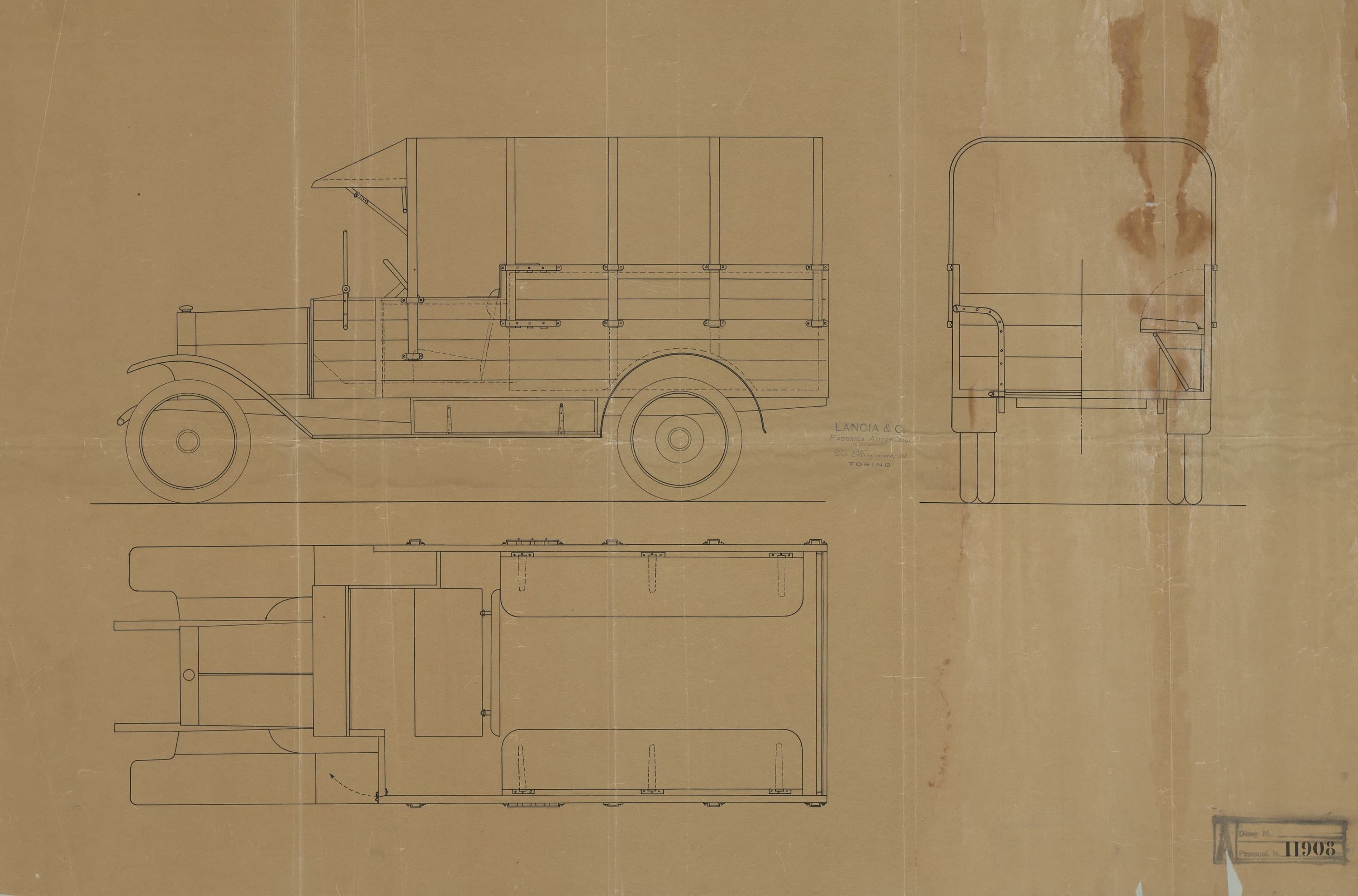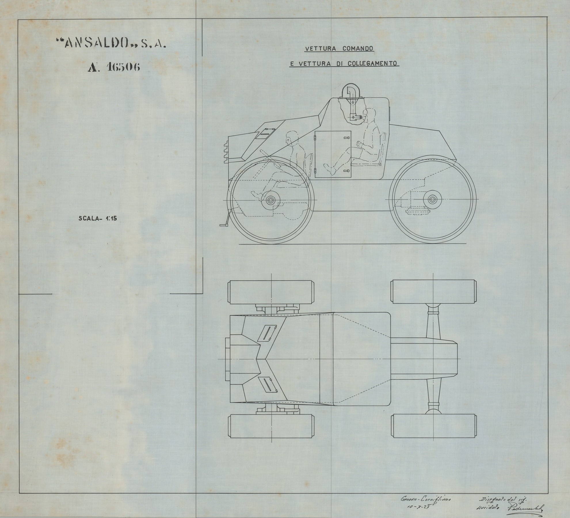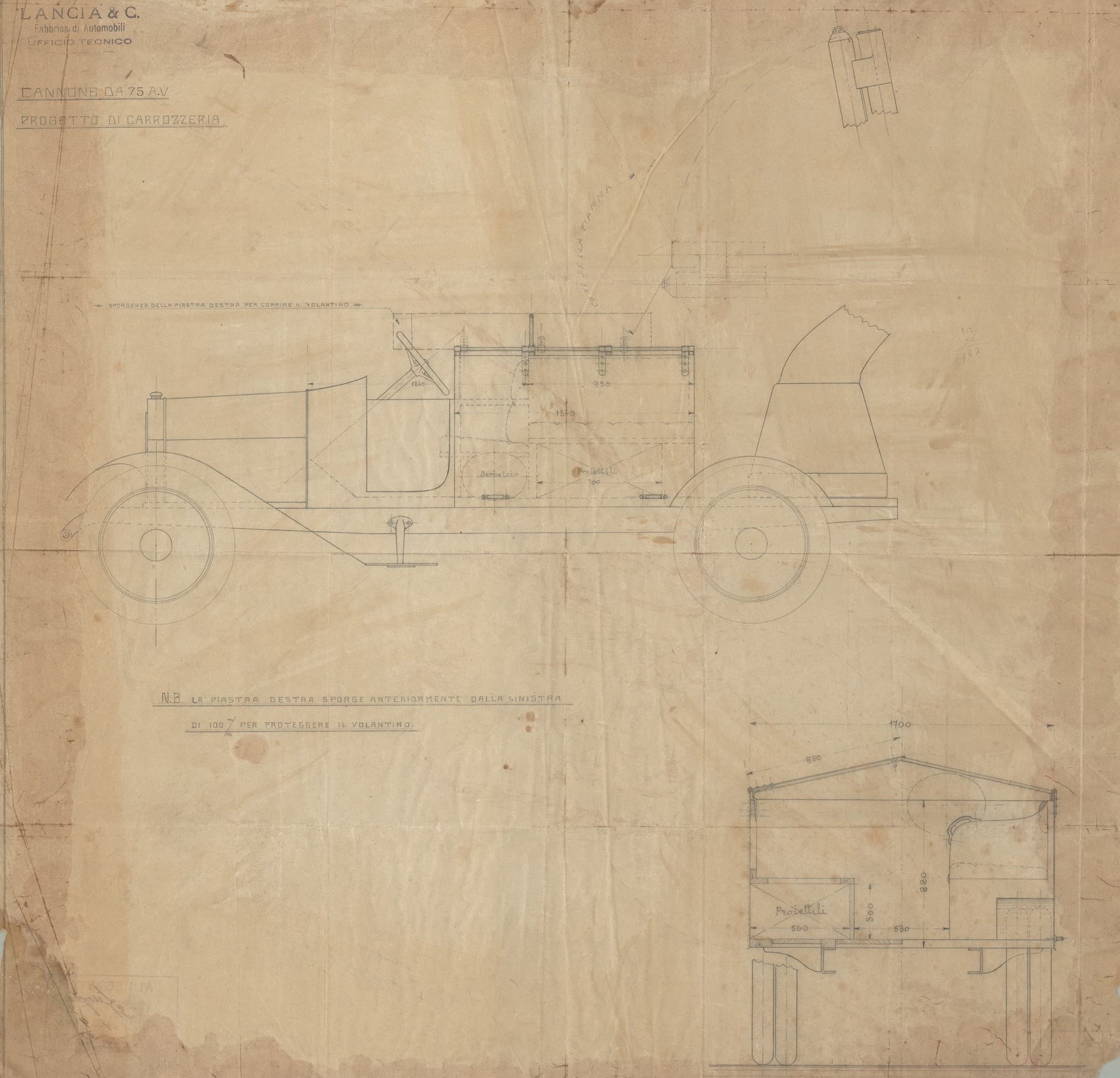 Vettura Lancia - progetto di carrozzeria per cannone da 75
