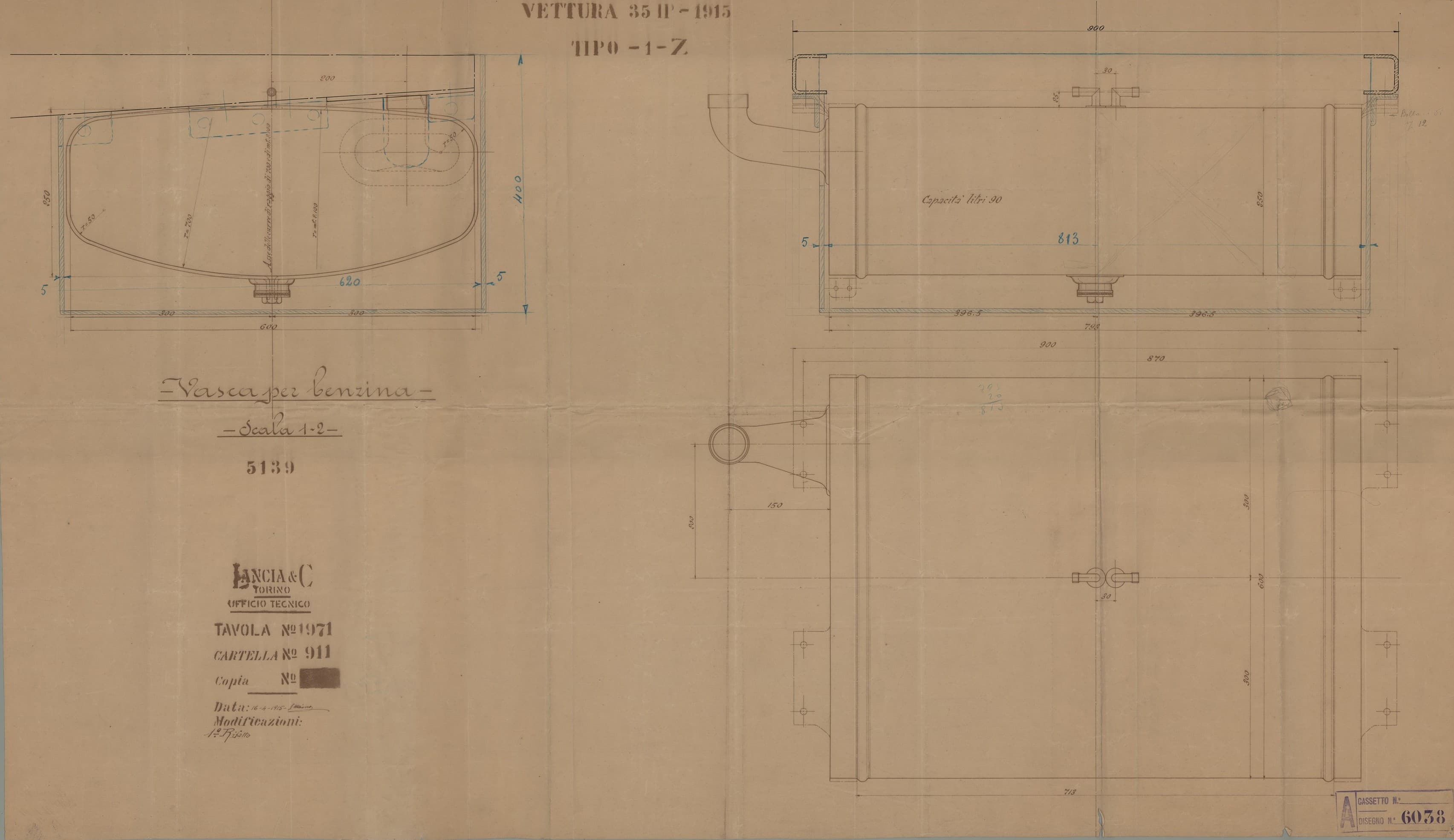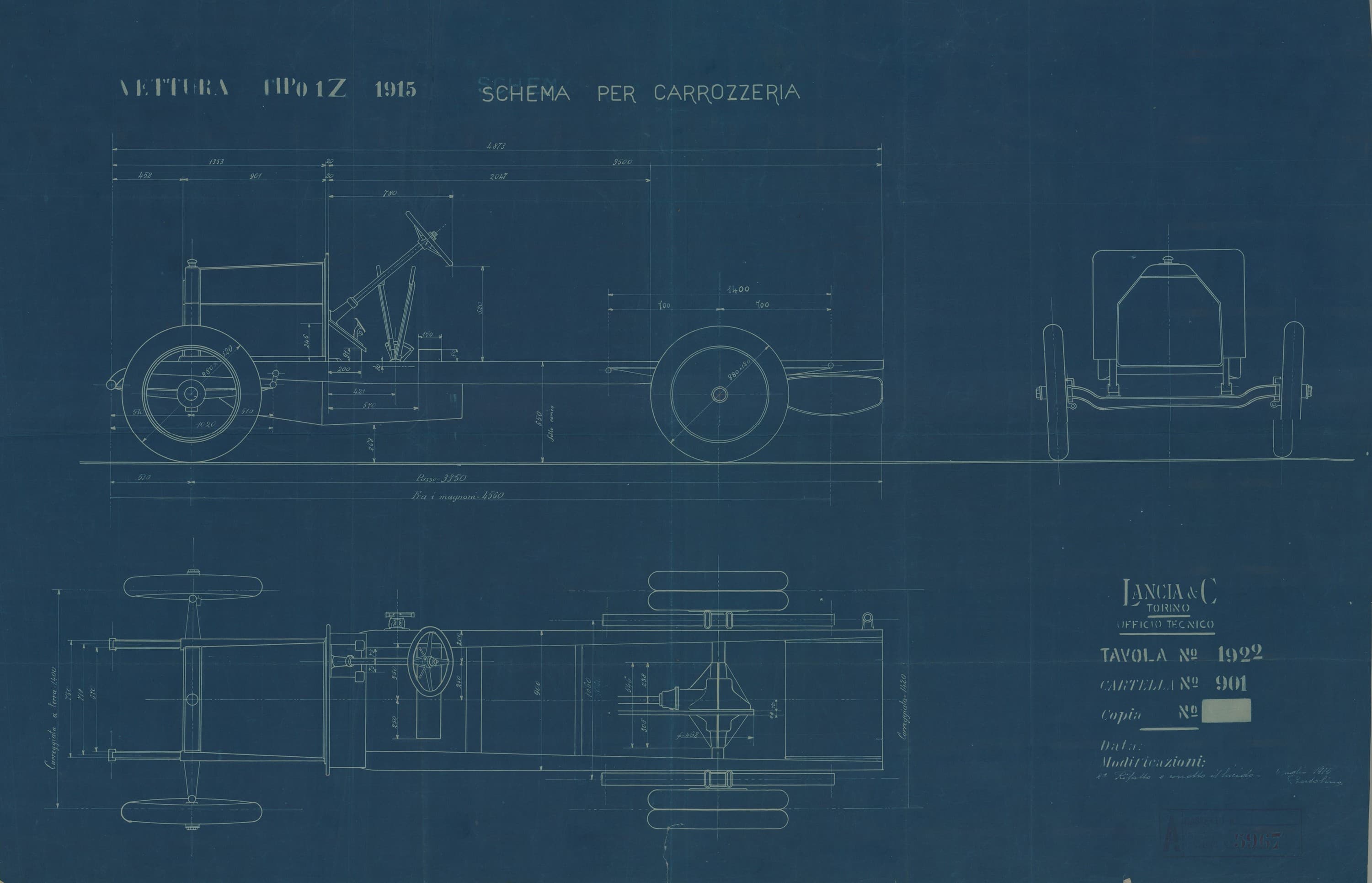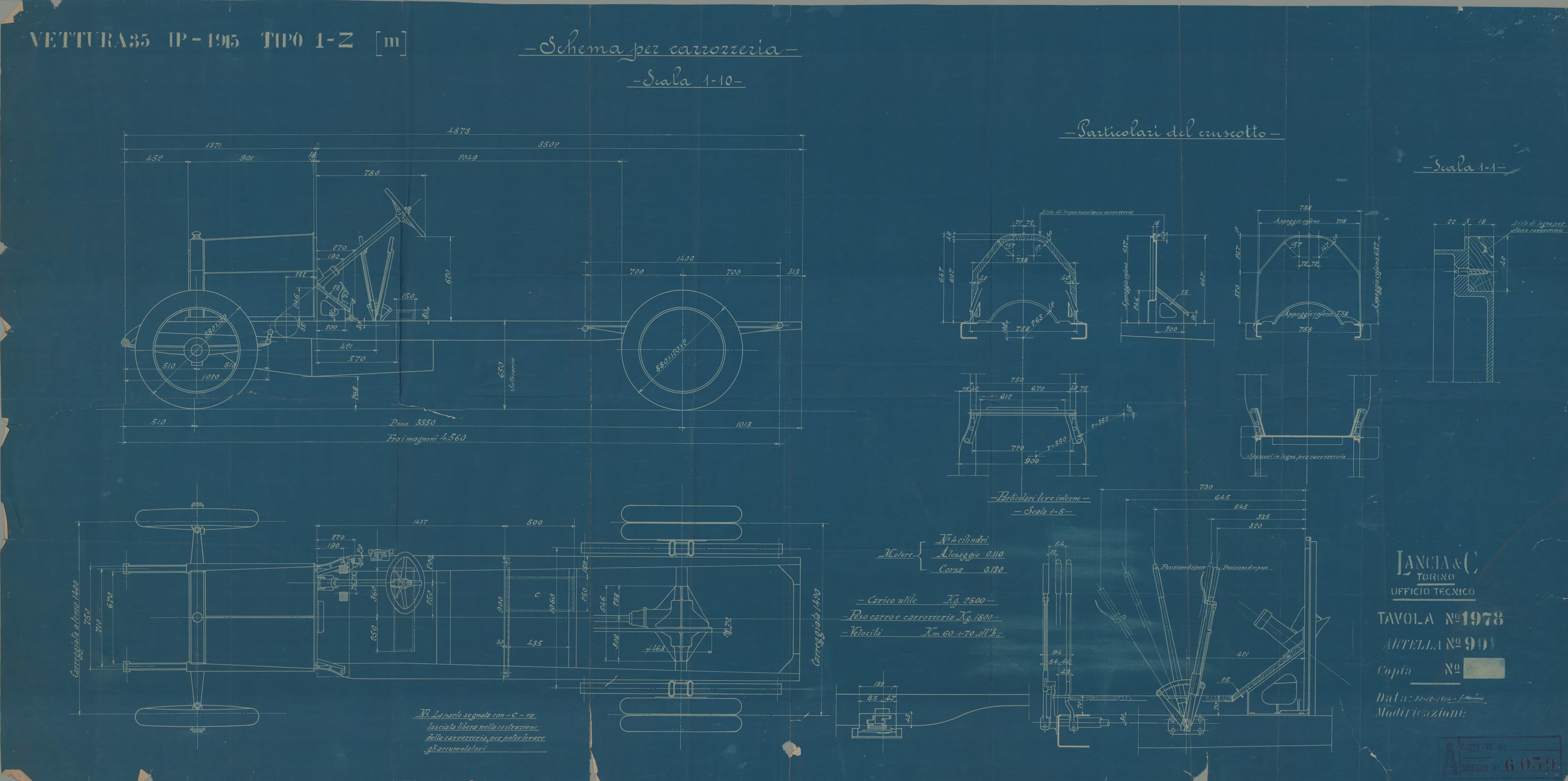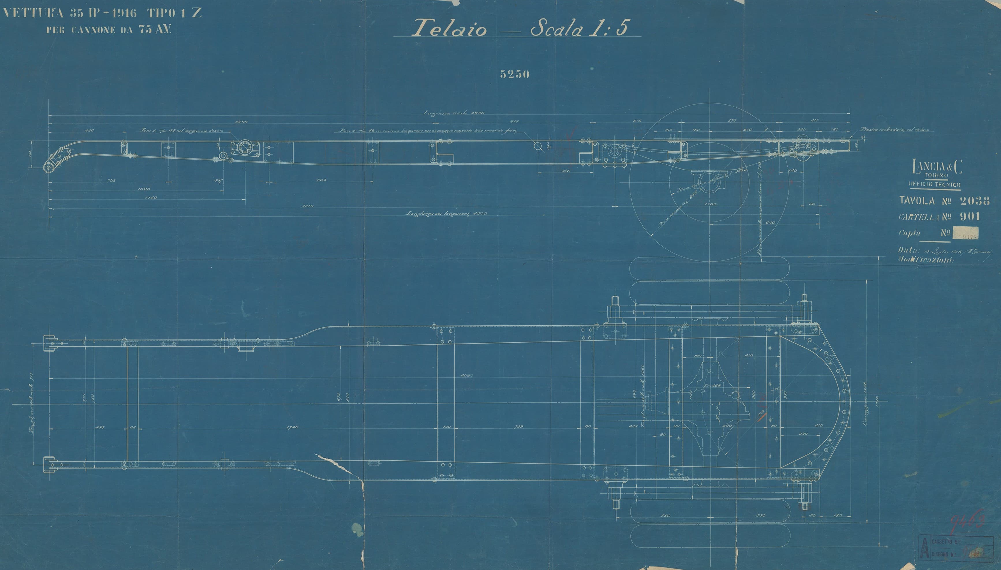 Vettura Lancia - progetto di carrozzeria per cannone da 75