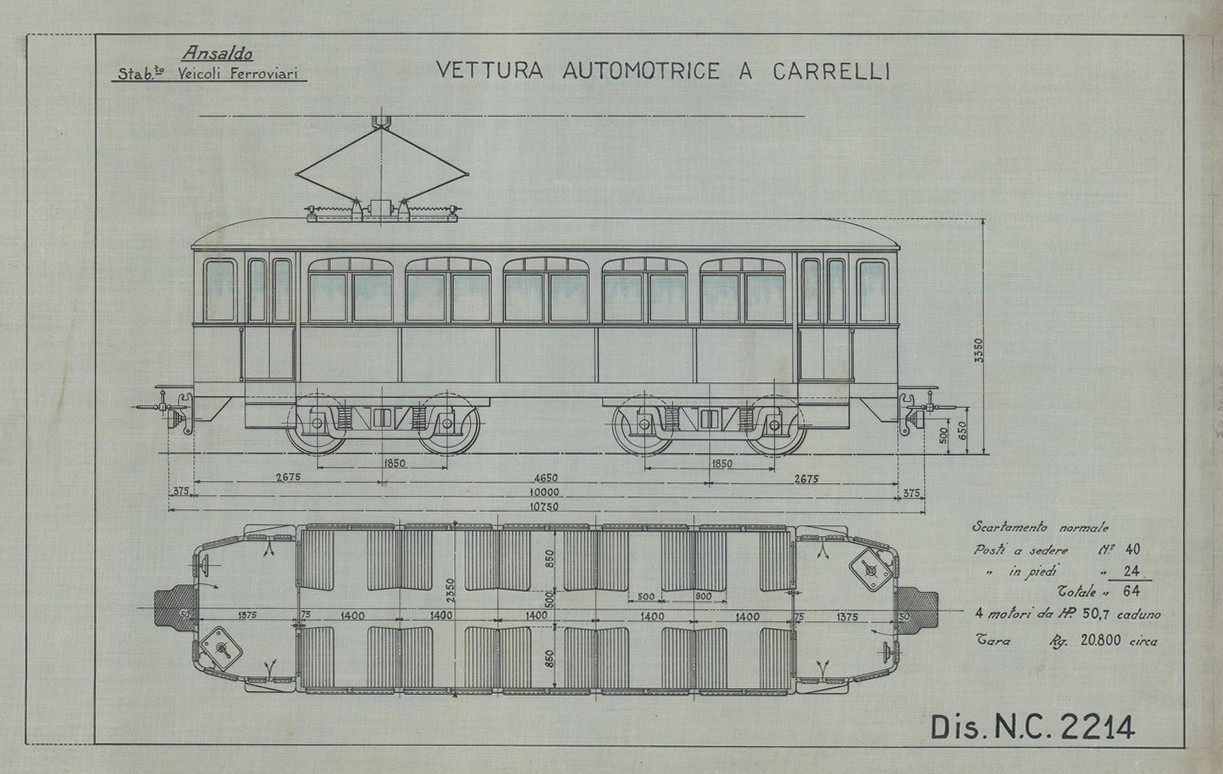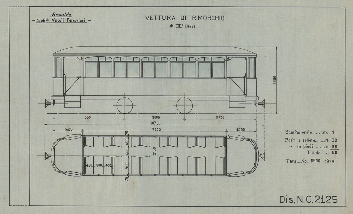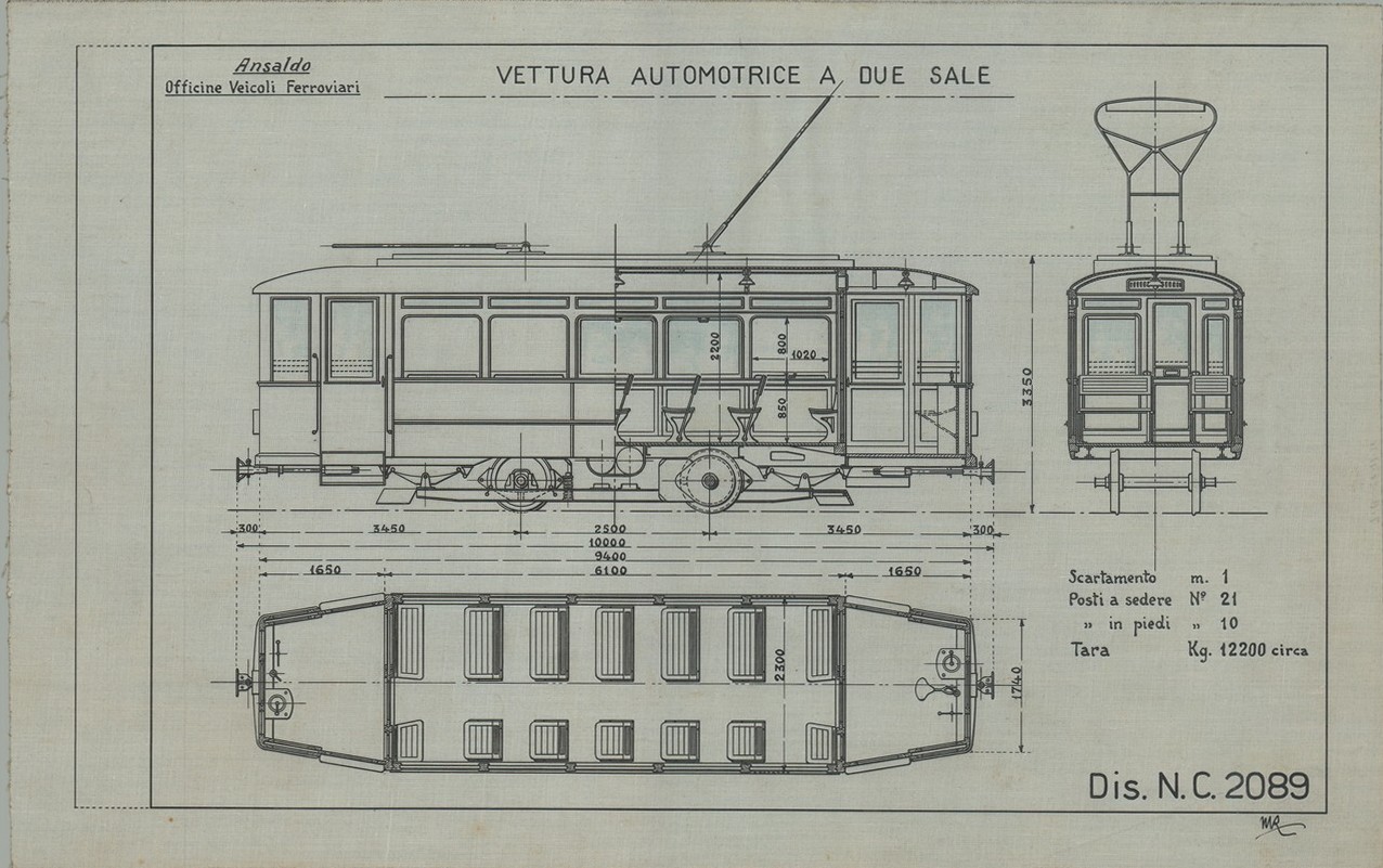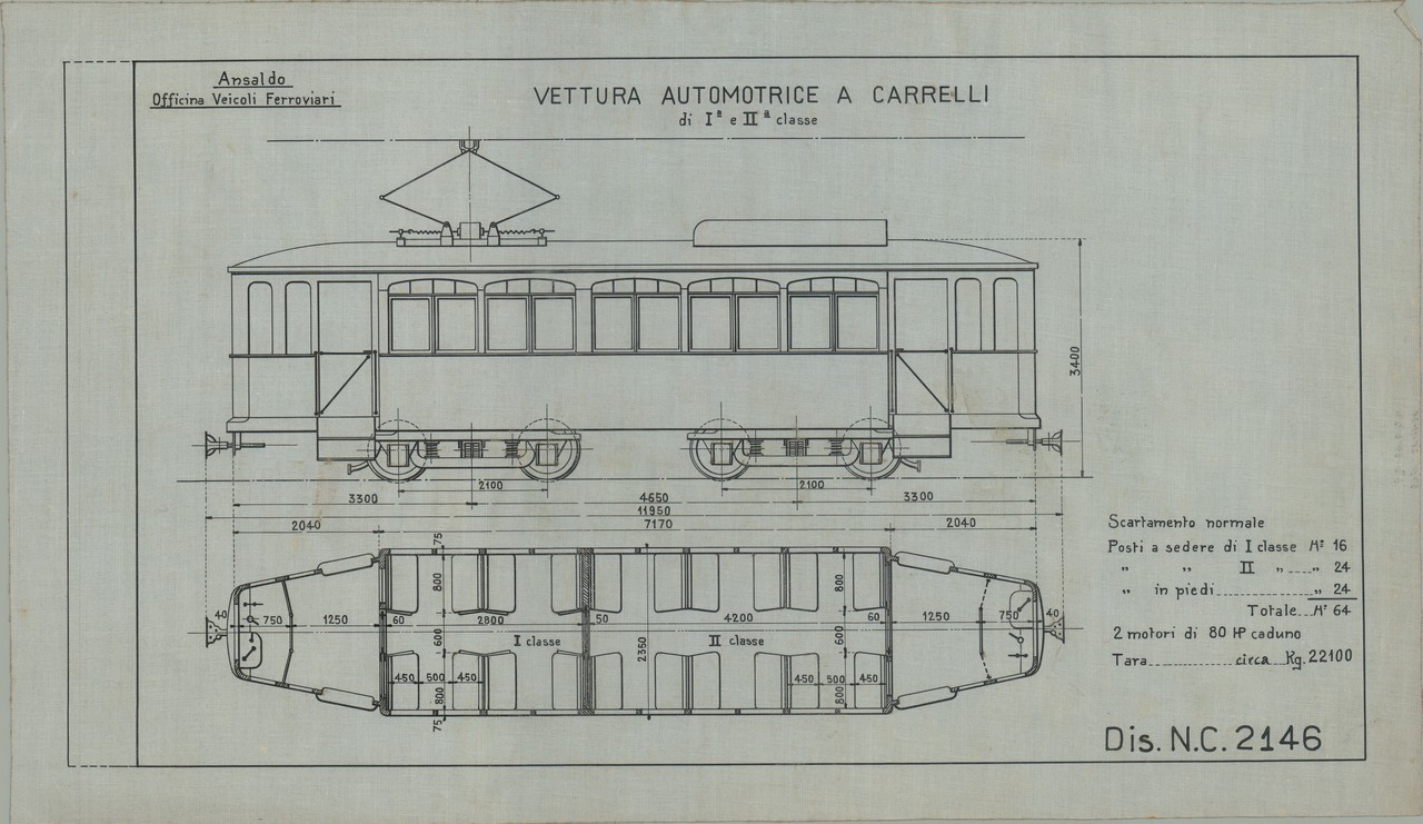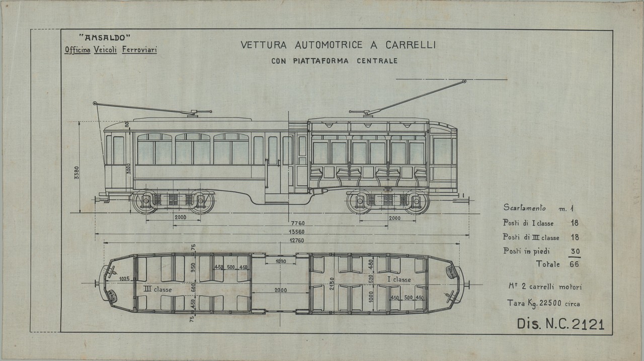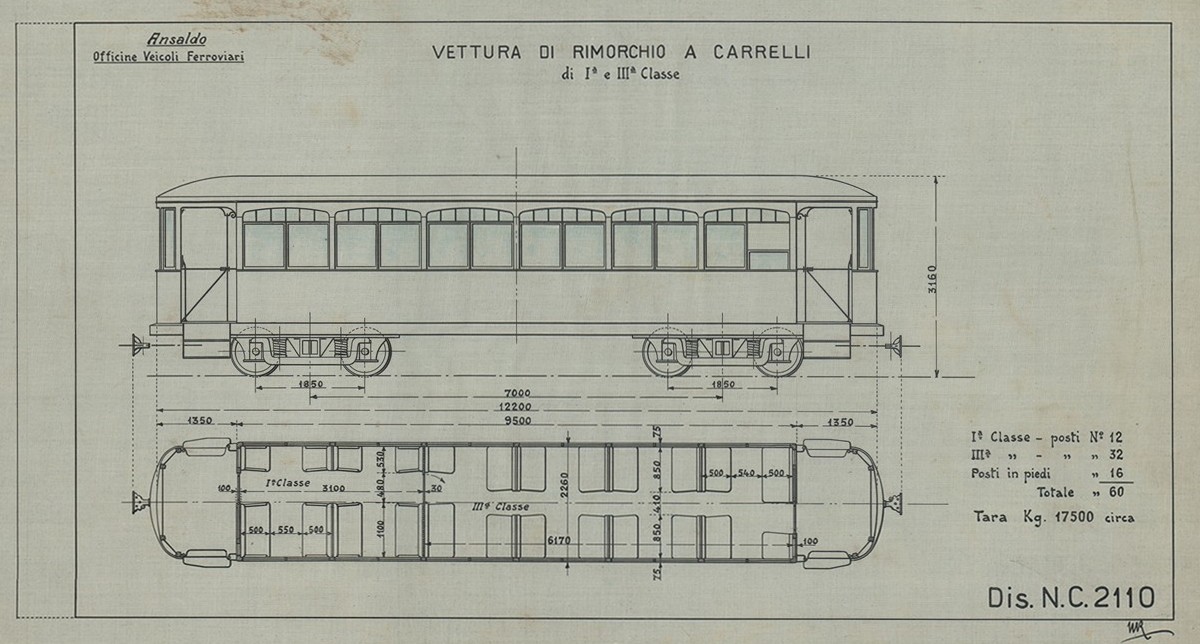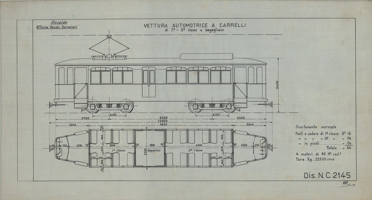 Vettura automotrice a carrelli di prima e seconda classe e bagagliaio