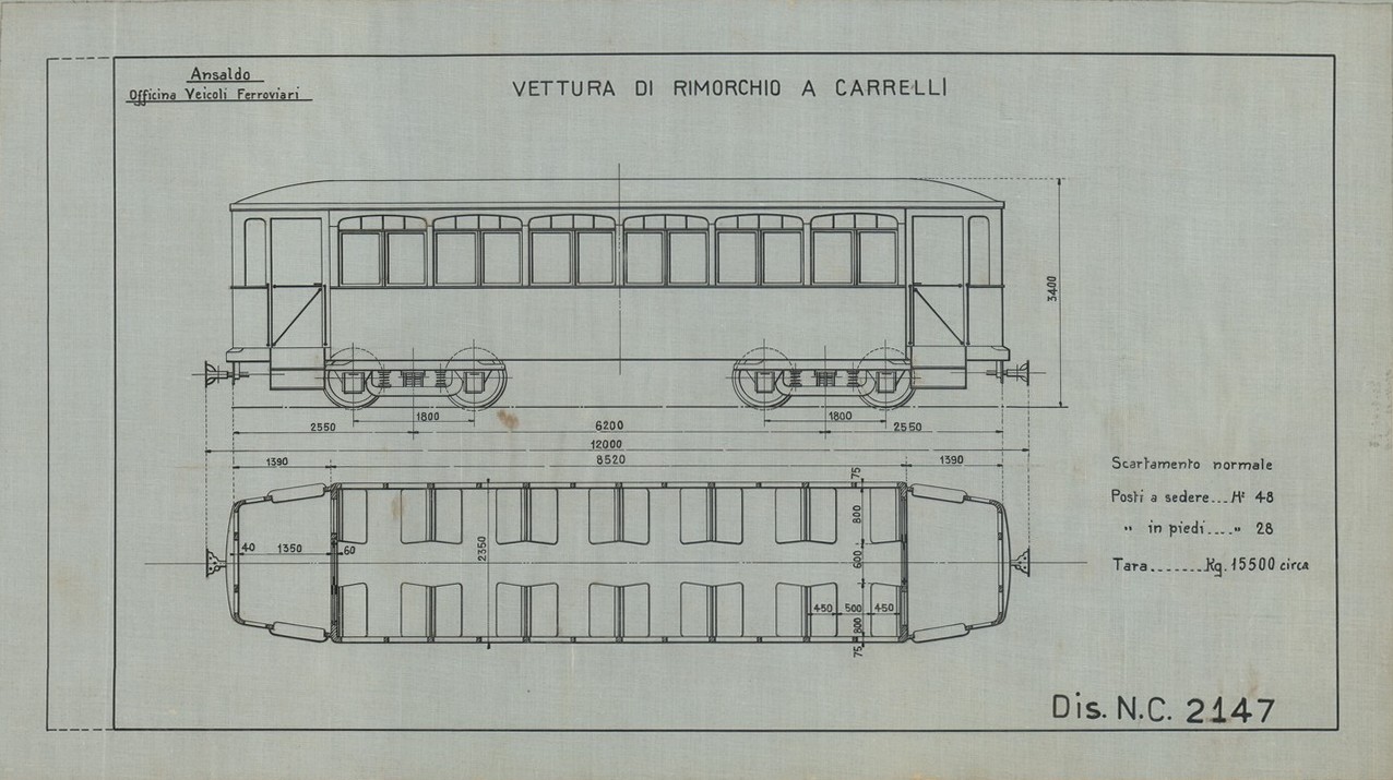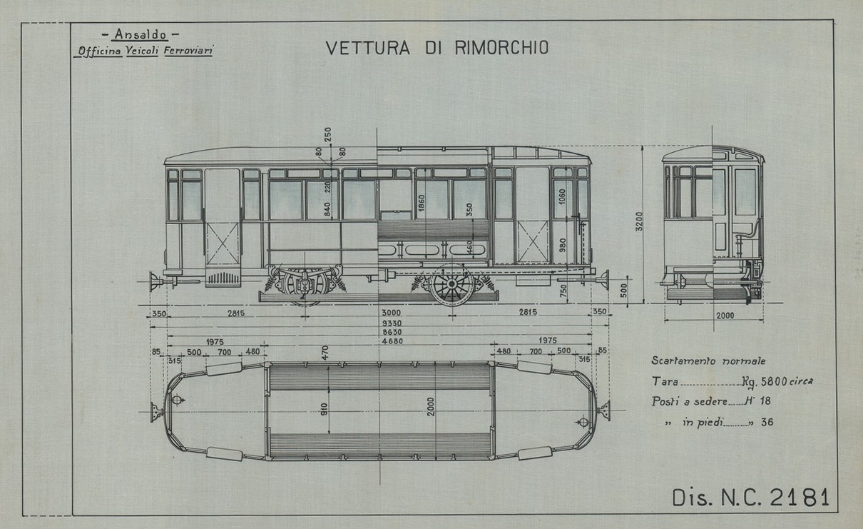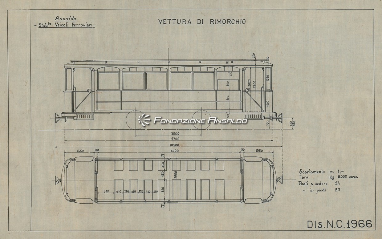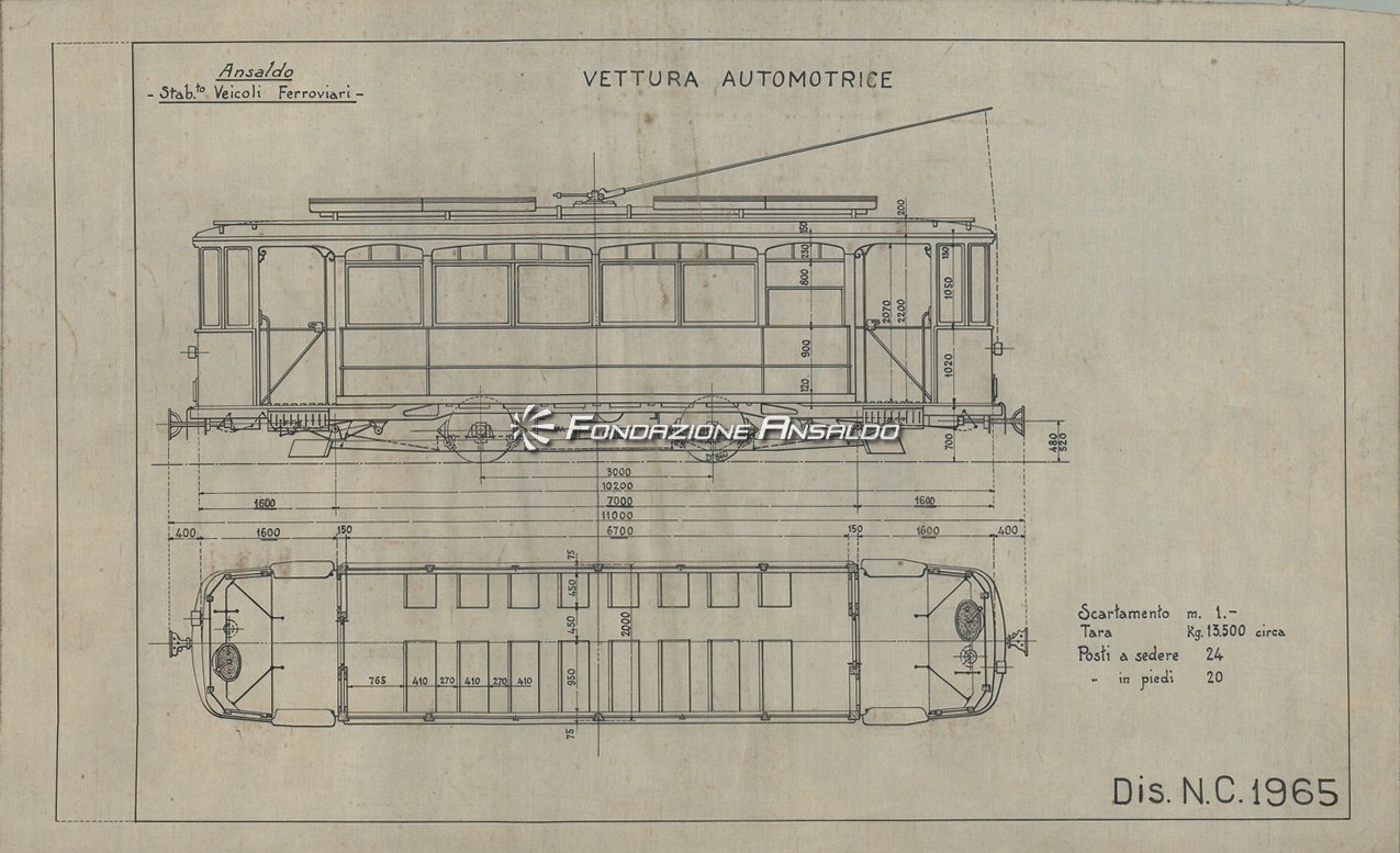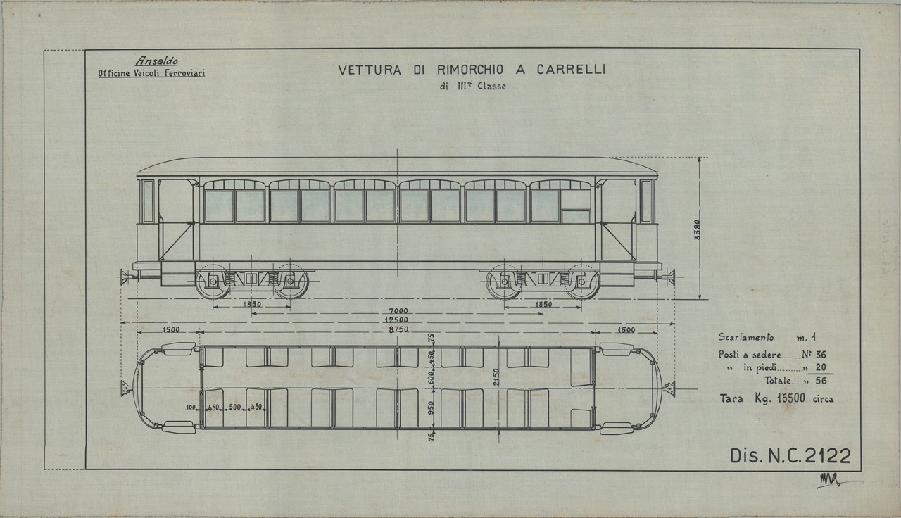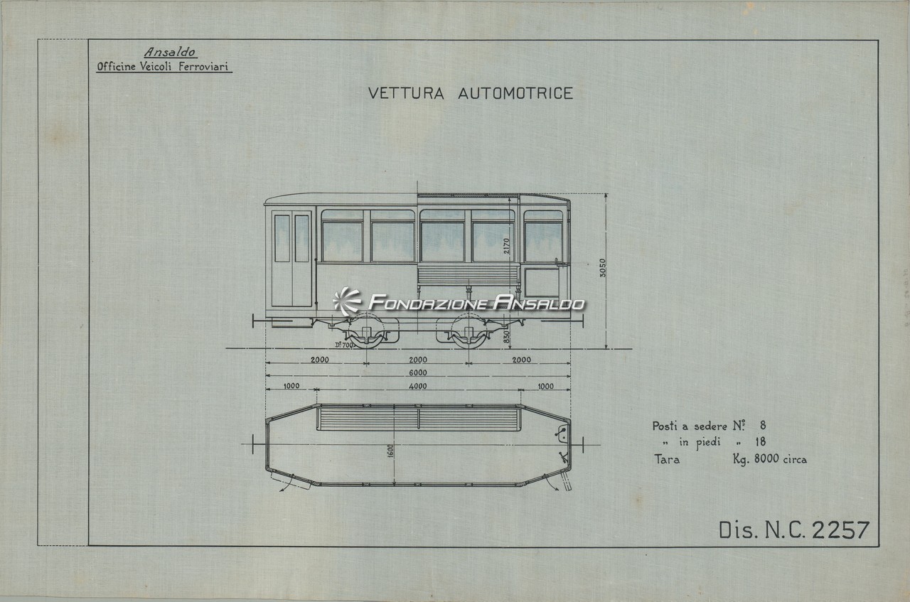 Vettura automotrice a carrelli di prima e seconda classe e bagagliaio