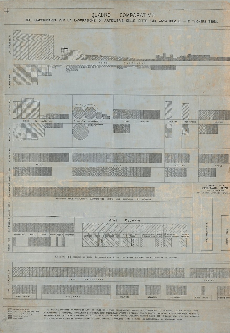 Stabilimento Meccanico di Sampierdarena - officina per la lavorazione delle artiglierie - quadro di comparazione Ansaldo - Vickers